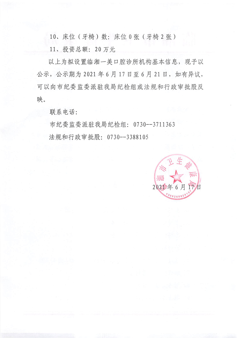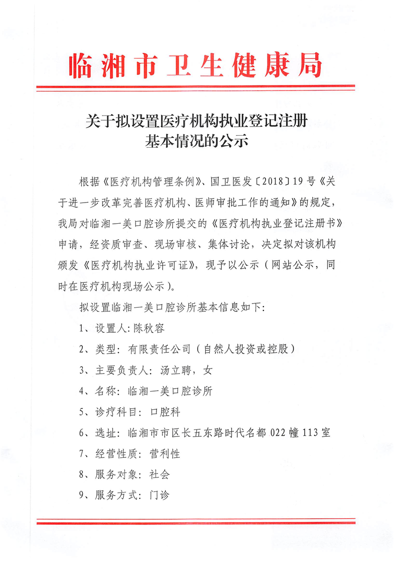 臨湘一美口腔診所執業登記注冊基本情況公示