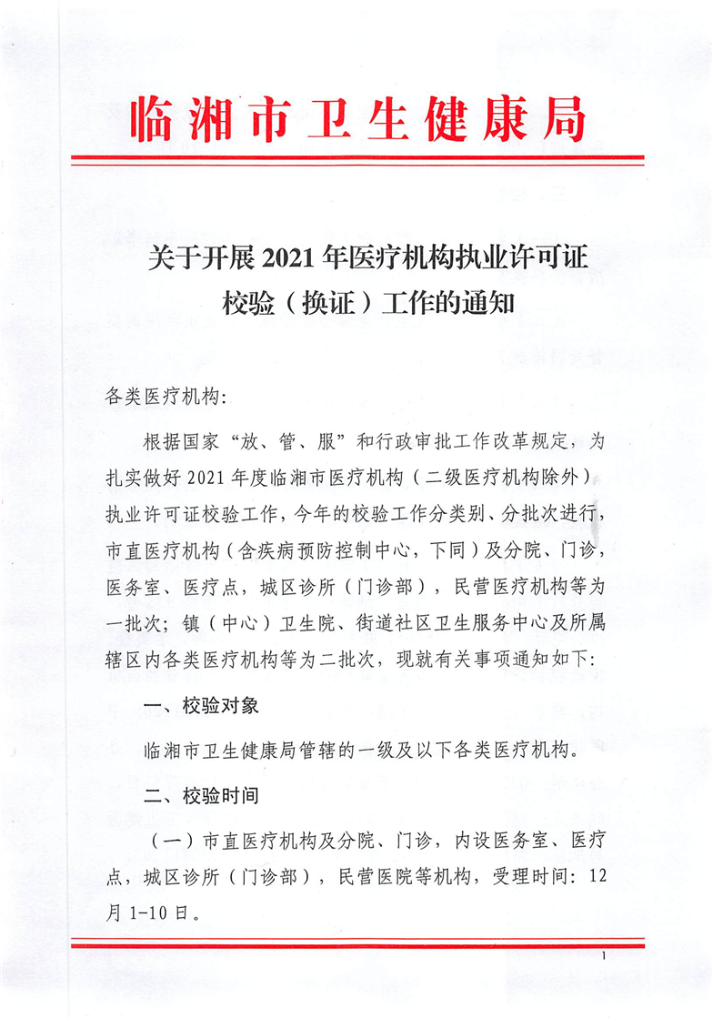 關于開展2021年醫療機構執業許可證校驗(換證)工作的通知