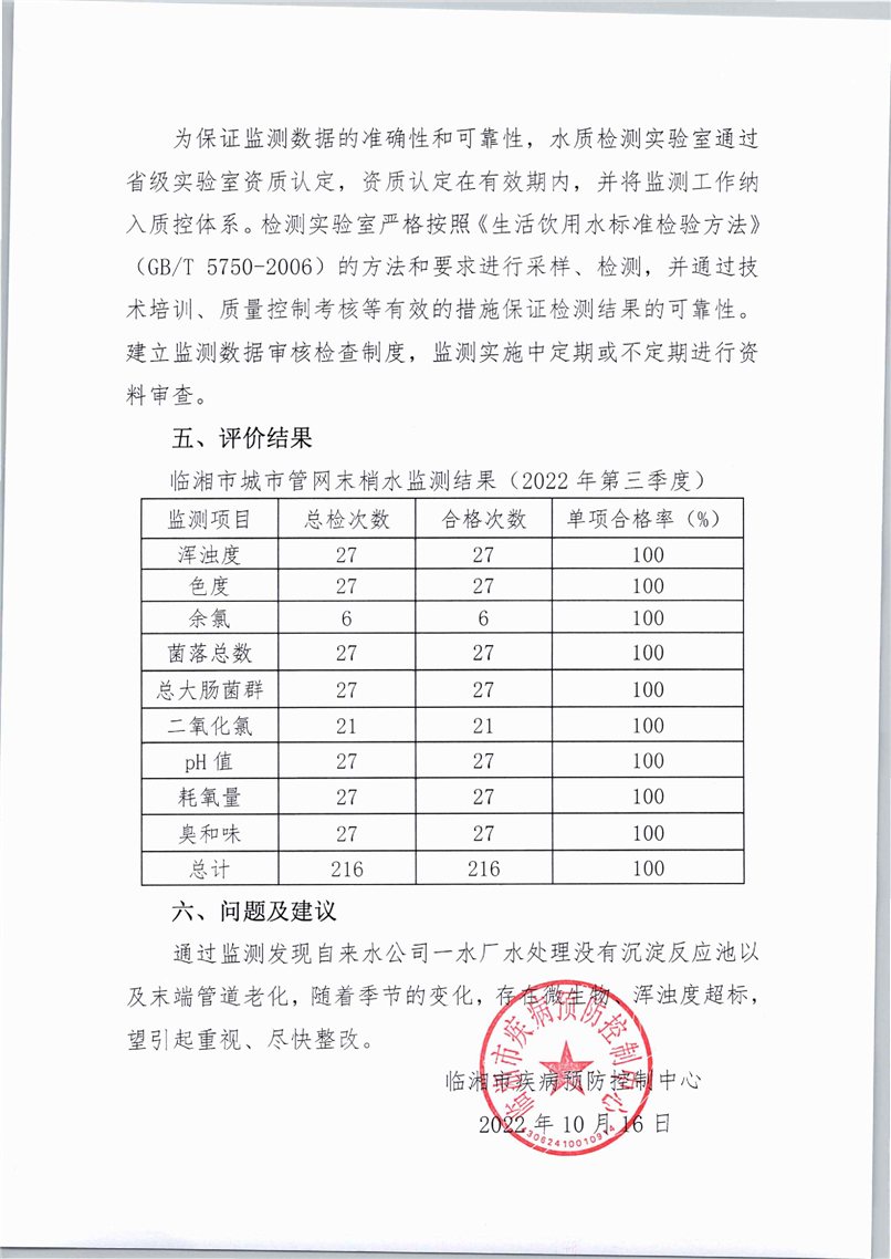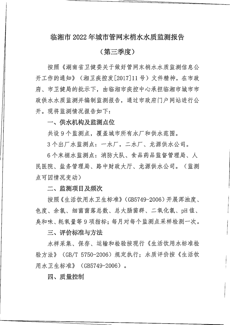 2022年城市管網(wǎng)末梢水水質(zhì)監(jiān)測報告(第三季度)