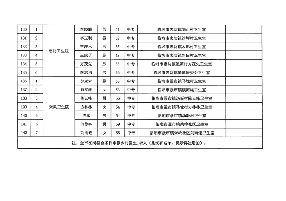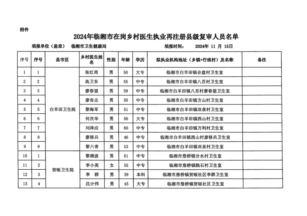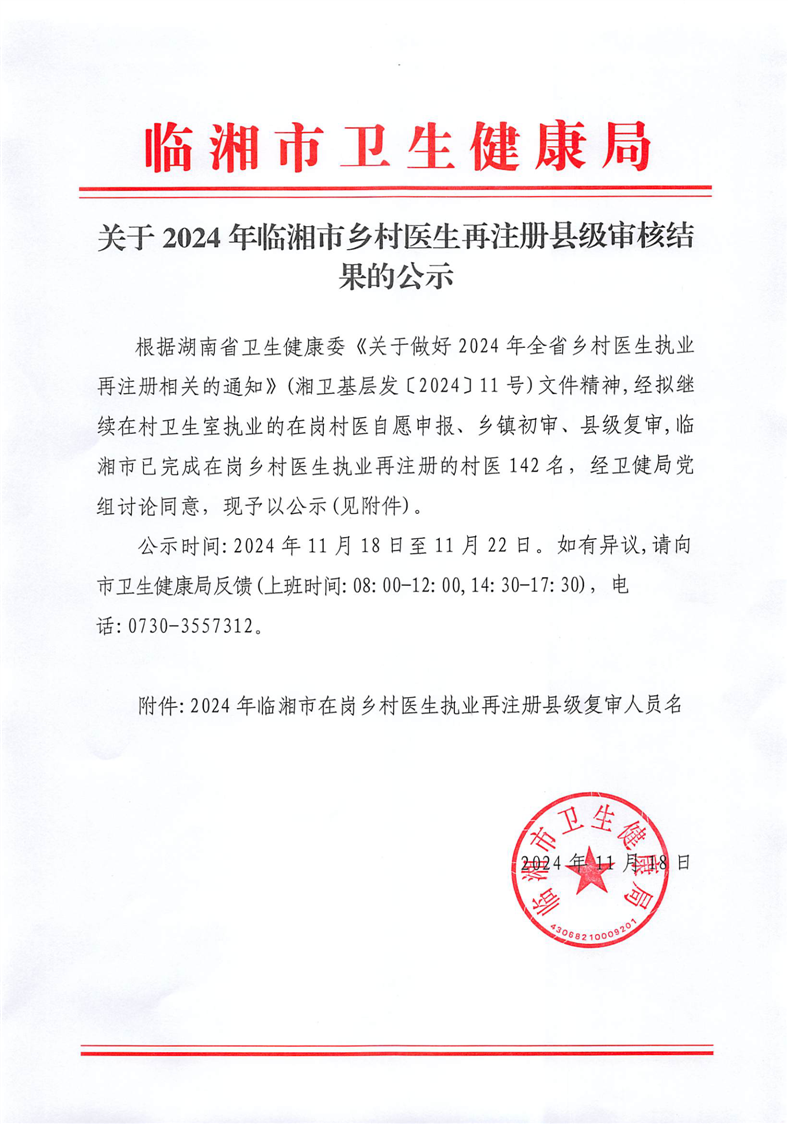 2024年臨湘市鄉村醫生再注冊縣級審核結果的公示