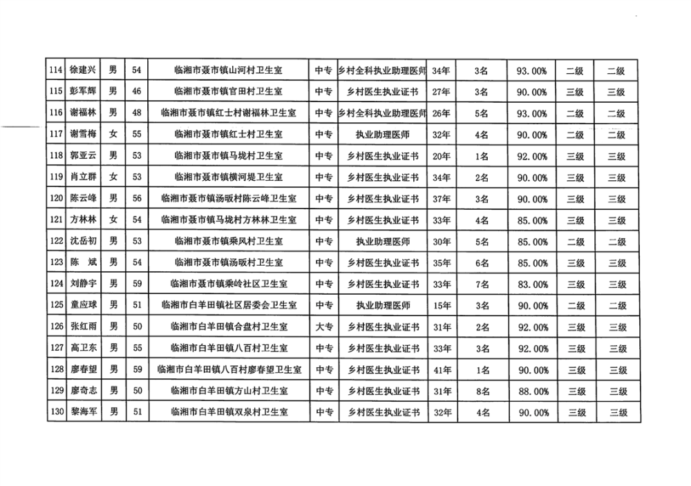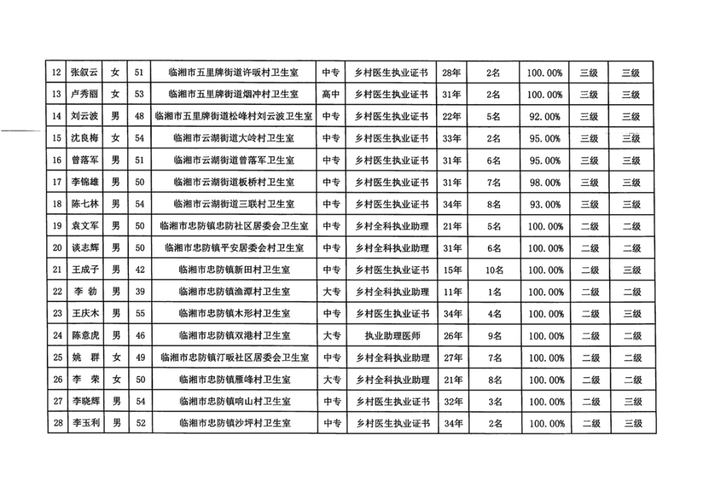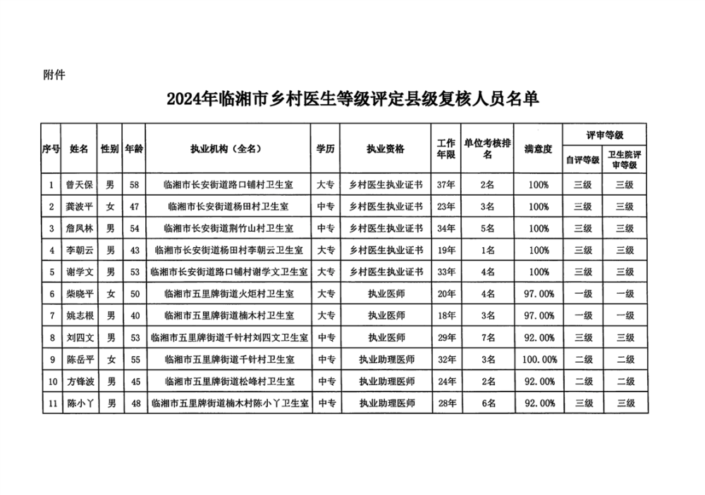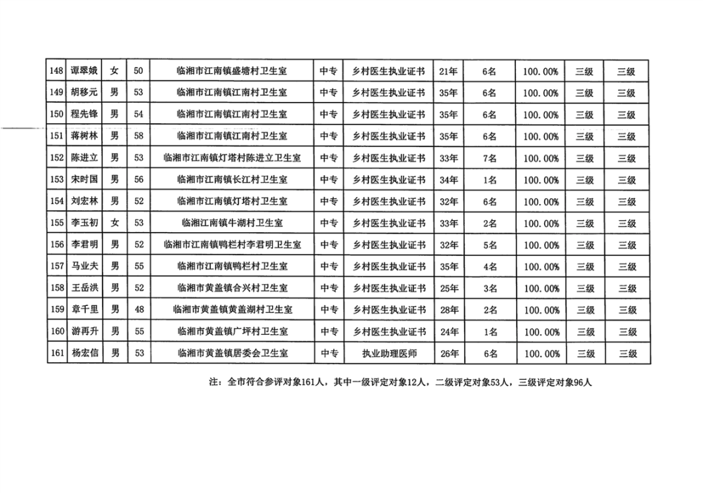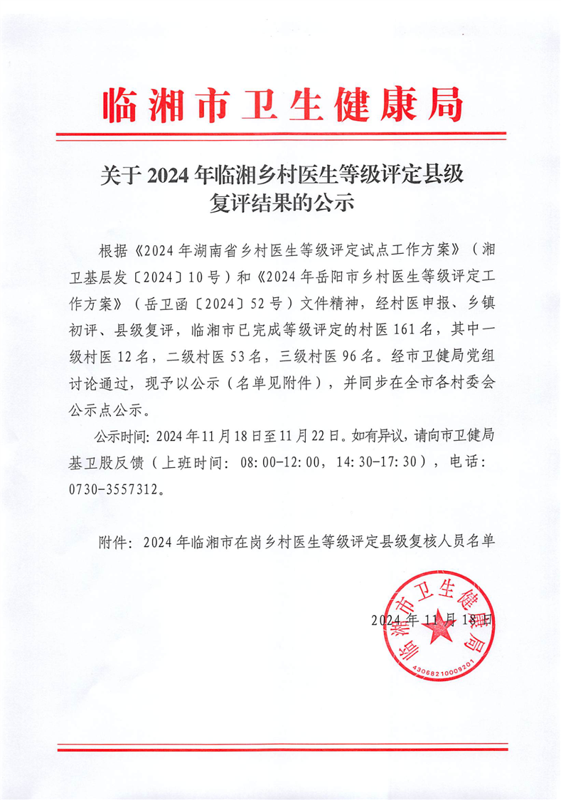 關于2024年臨湘鄉村醫生等級評定縣級復評結果的公示