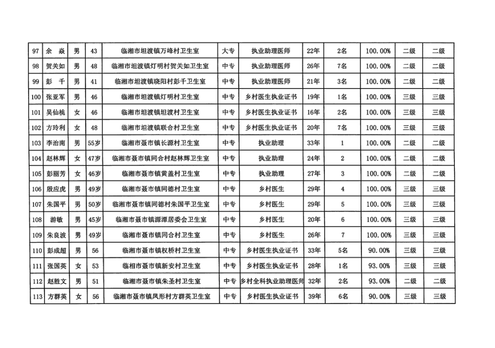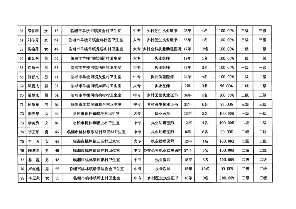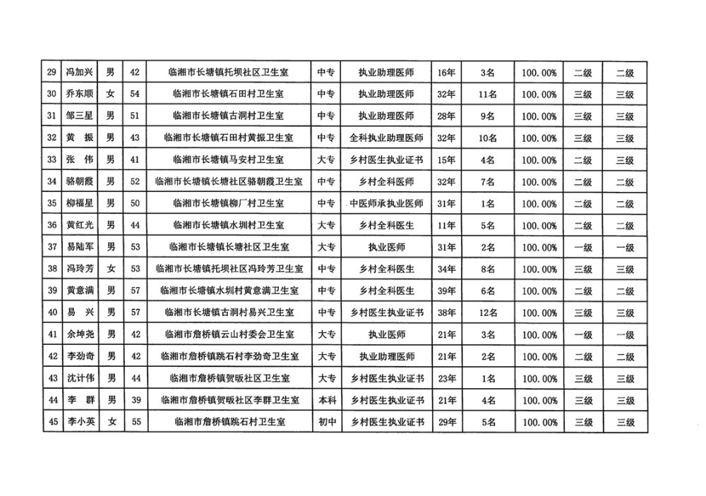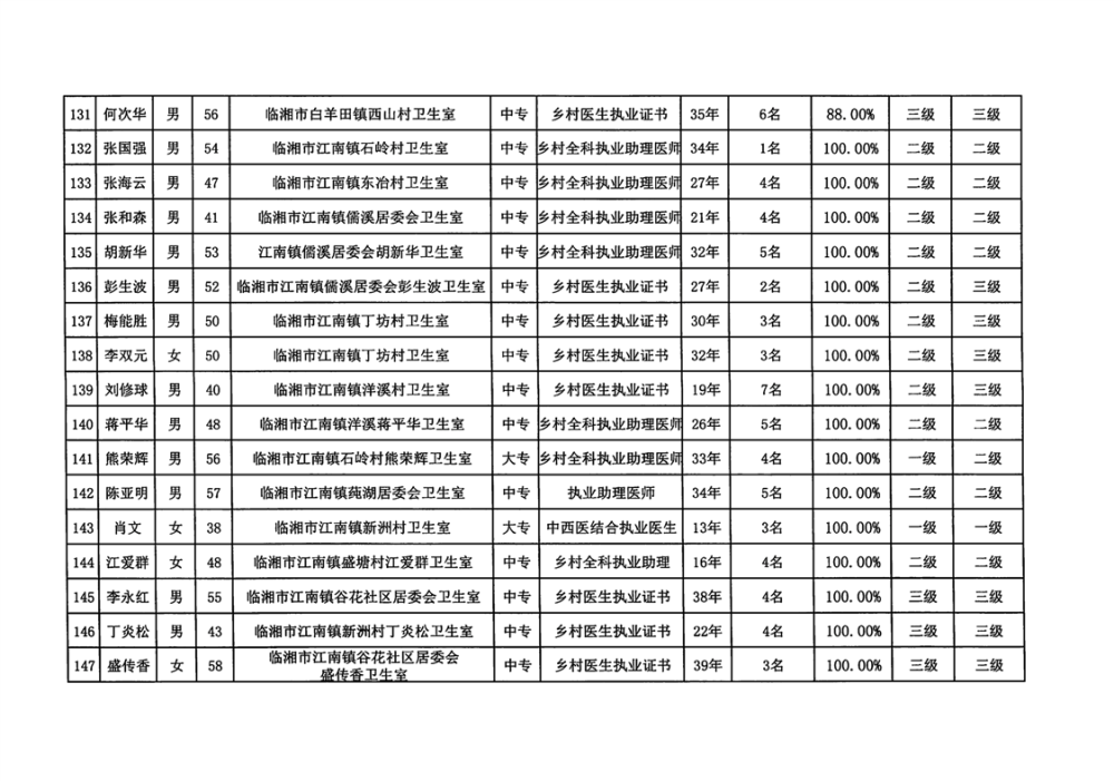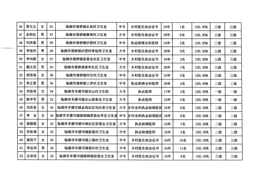 關于2024年臨湘鄉村醫生等級評定縣級復評結果的公示