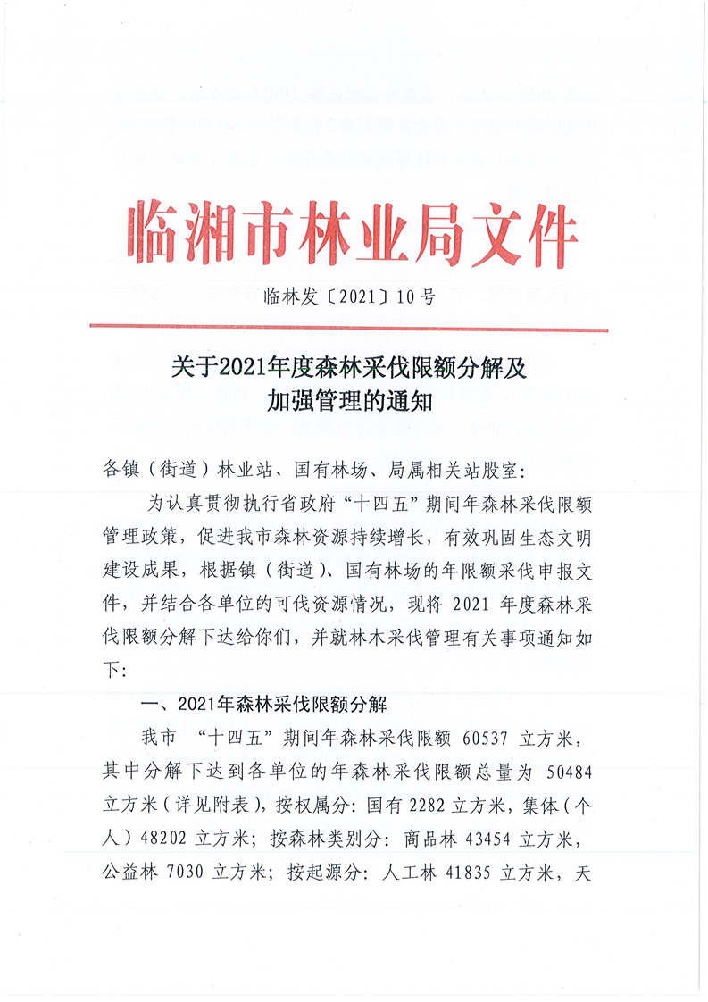 2021年度森林采伐限額分解及加強(qiáng)管理的通知