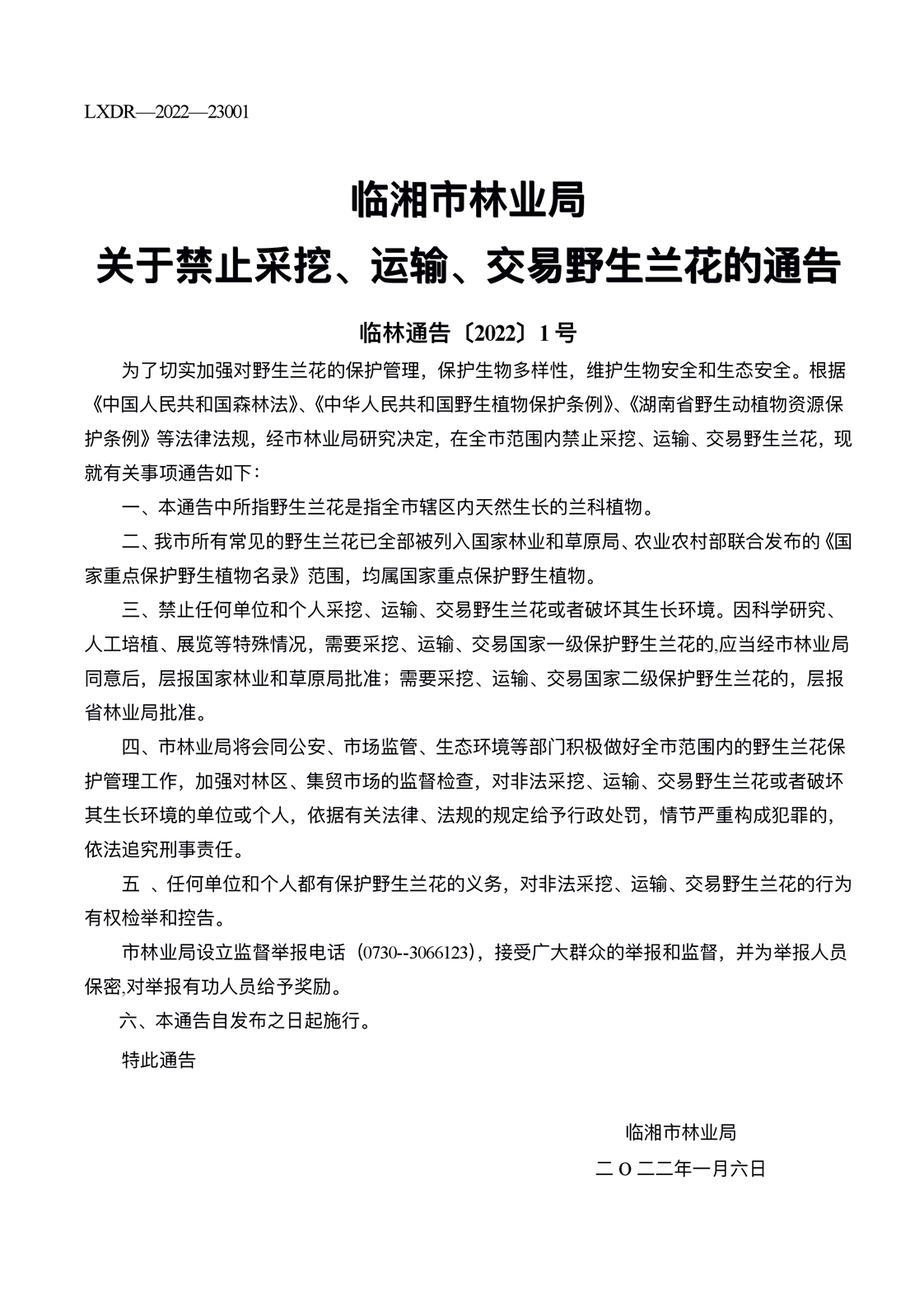 關于禁止采挖、運輸、交易野生蘭花的通告