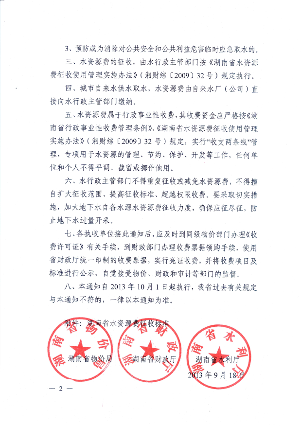 關(guān)于調(diào)整水資源費征收標(biāo)準(zhǔn)的通知(湘價費[2013]104號)
