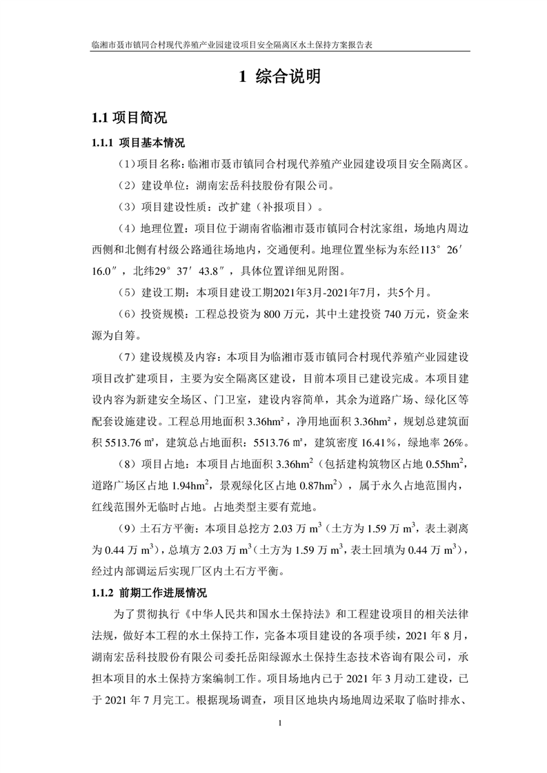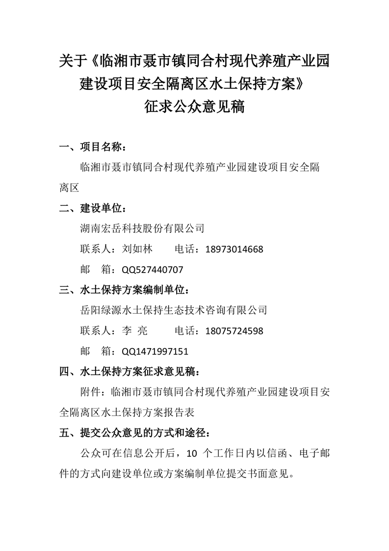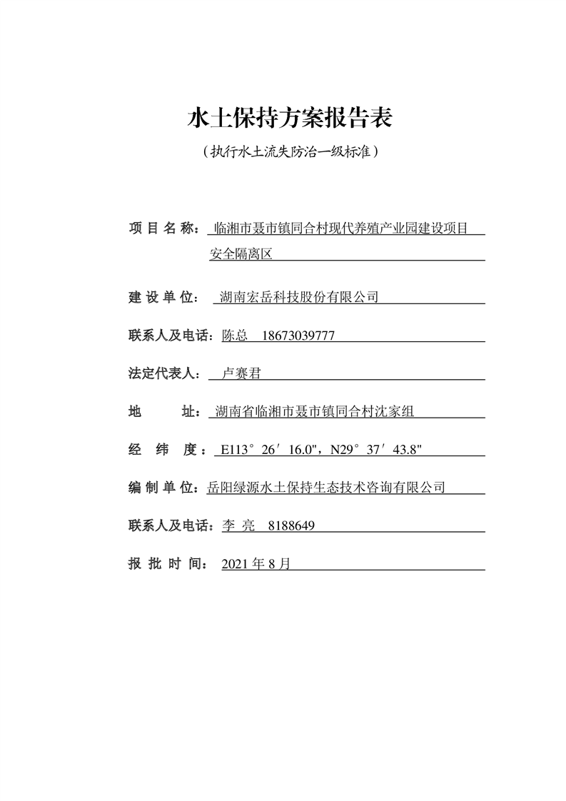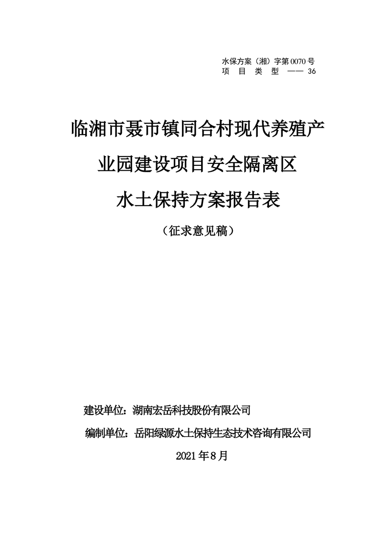 臨湘市聶市鎮同合村現代養殖產業園水土保持報告表(征求公眾意見稿)