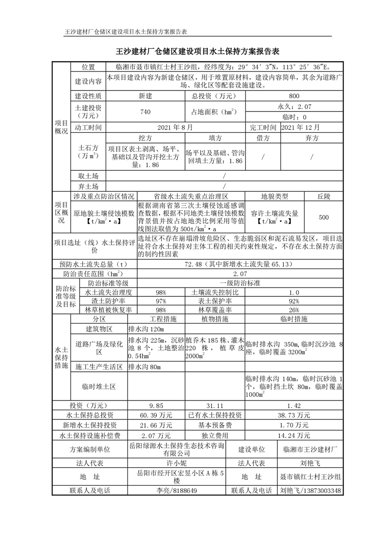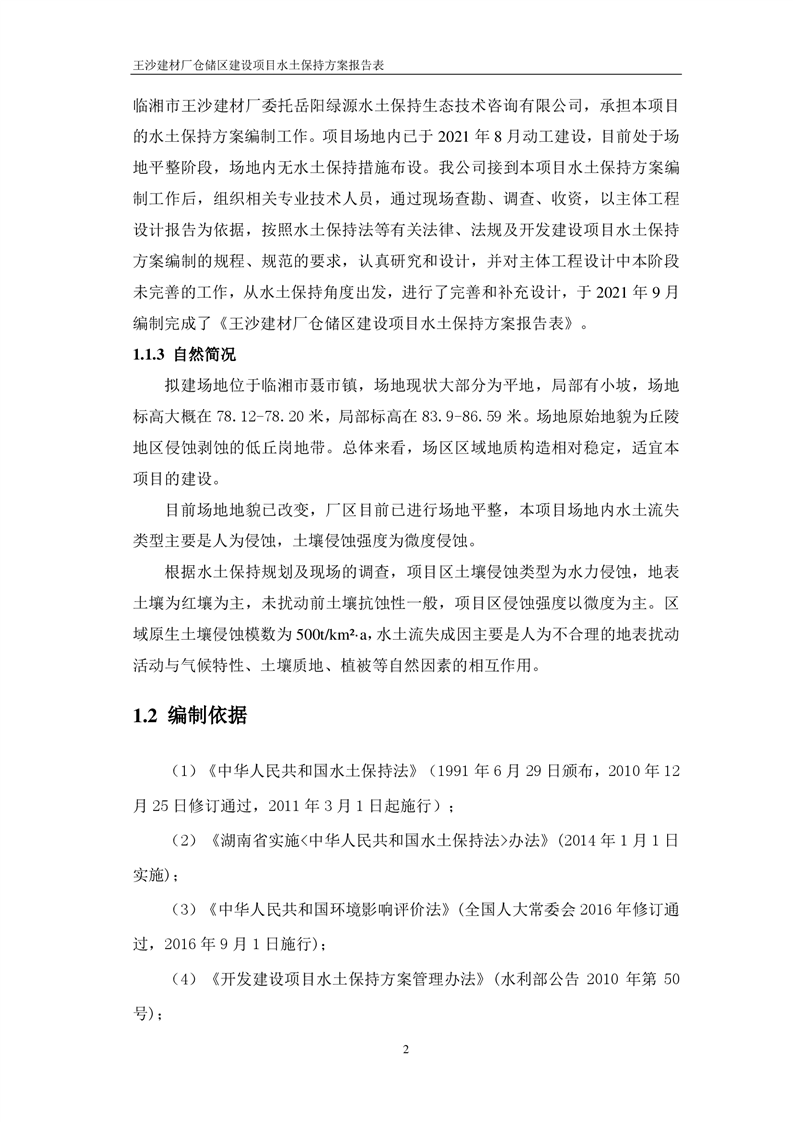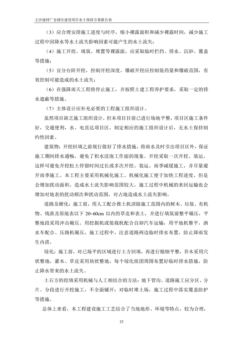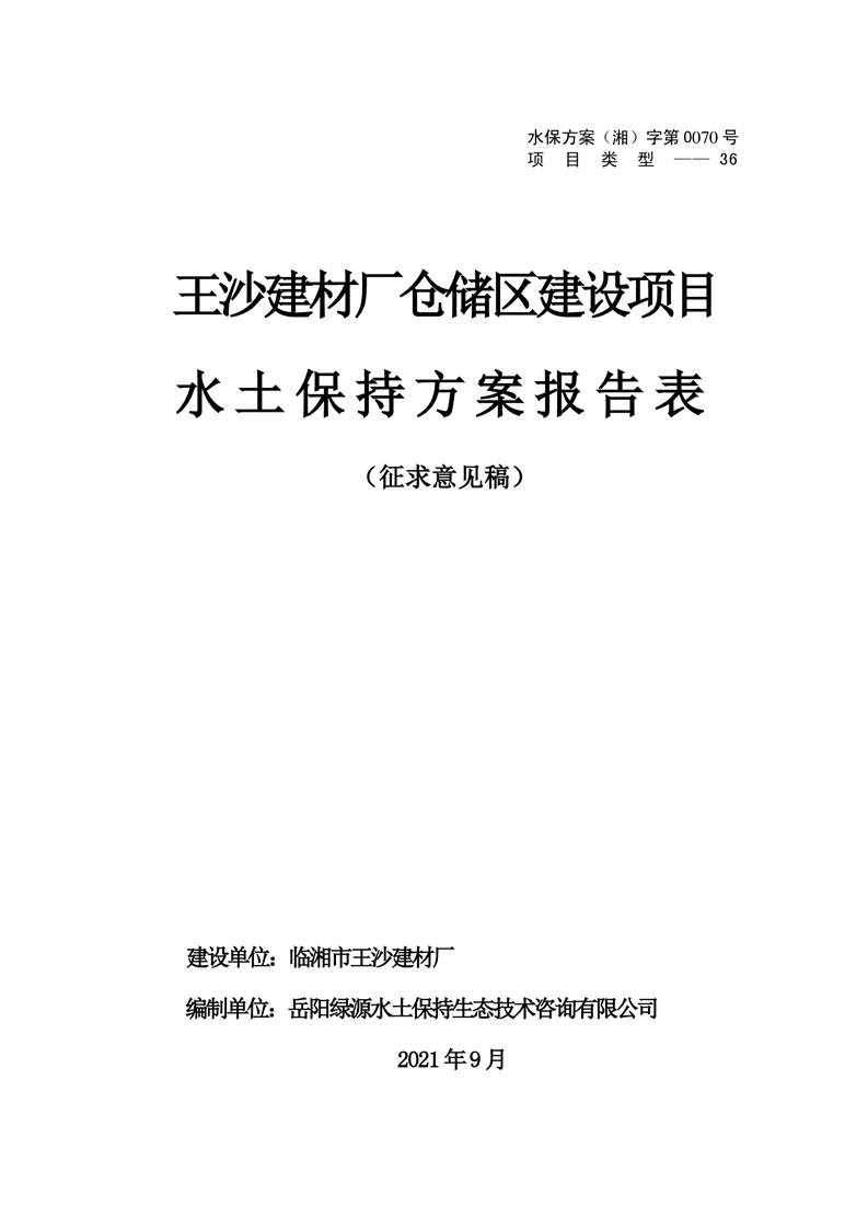 關于《王沙建材廠倉儲區建設項目水土保持方案》征求公眾意見稿