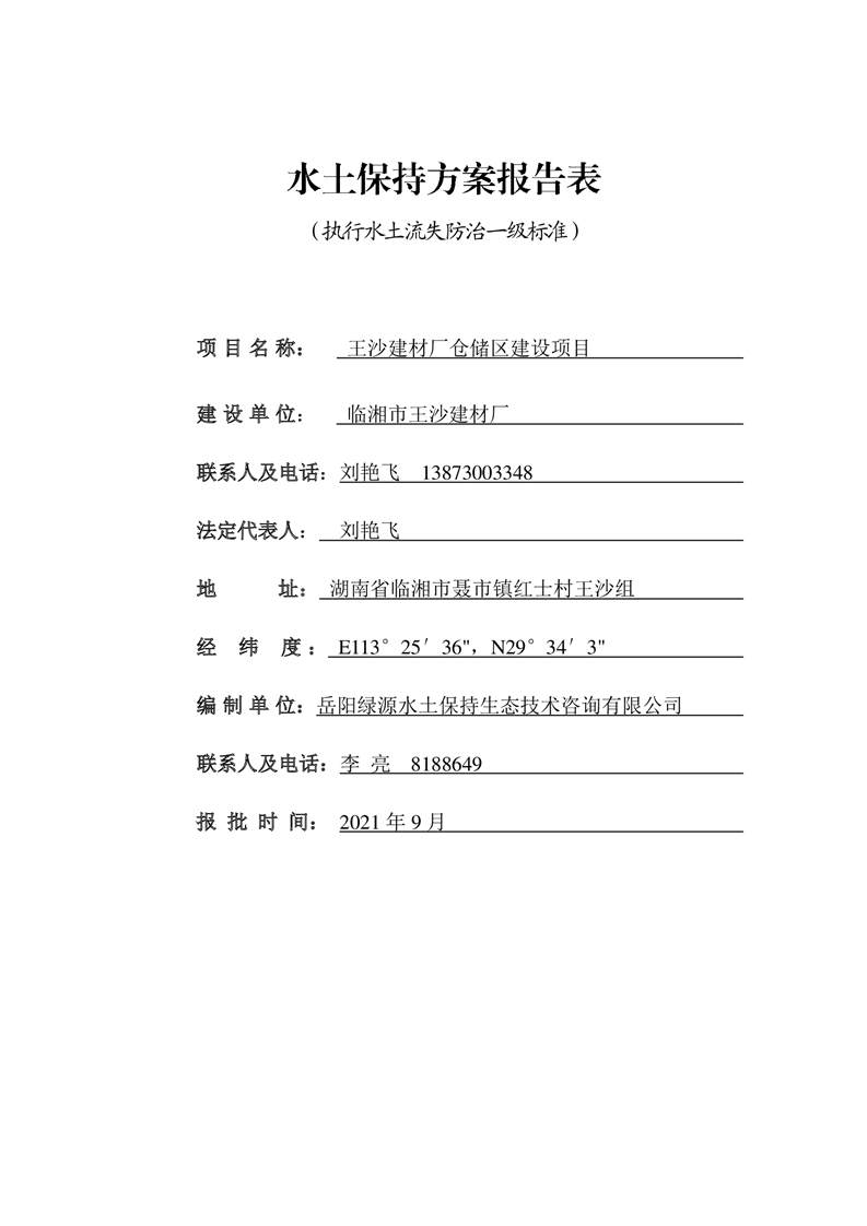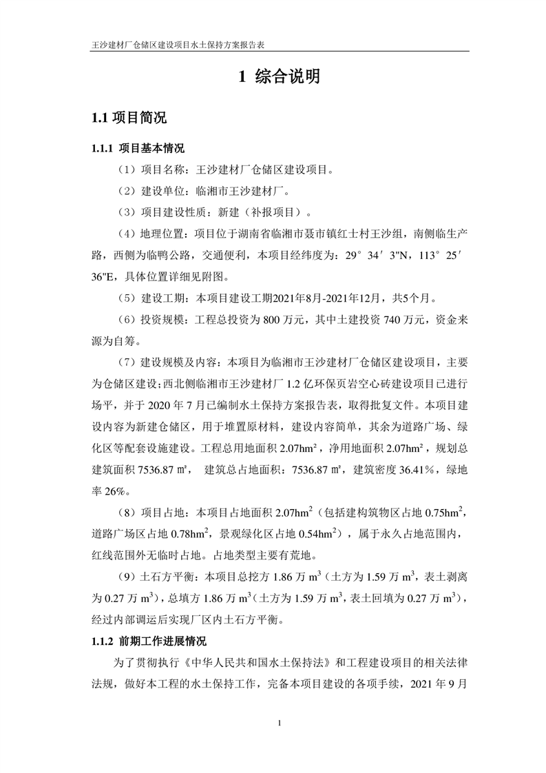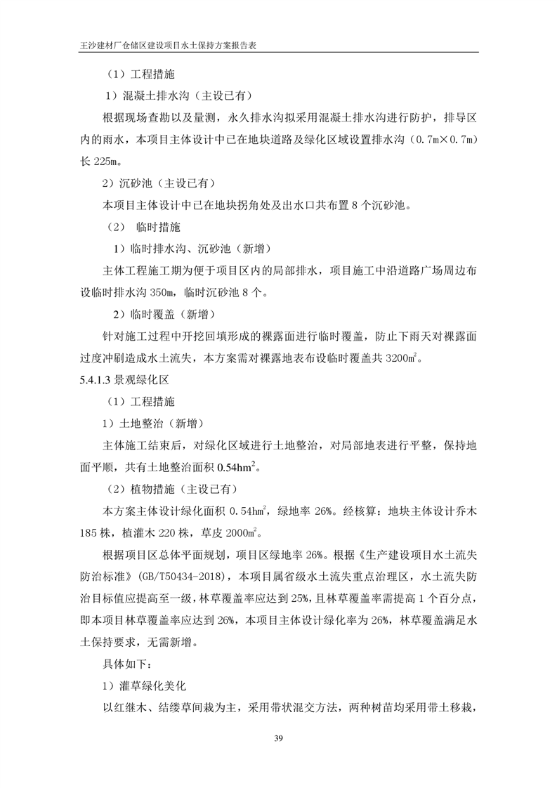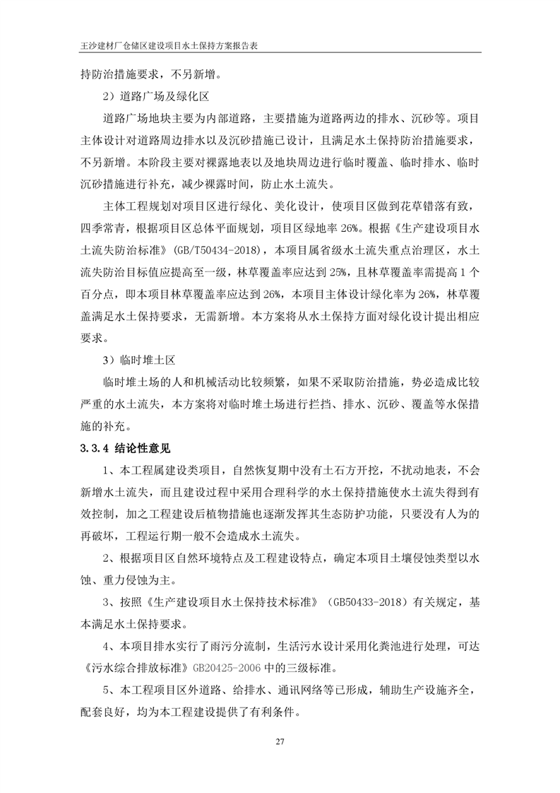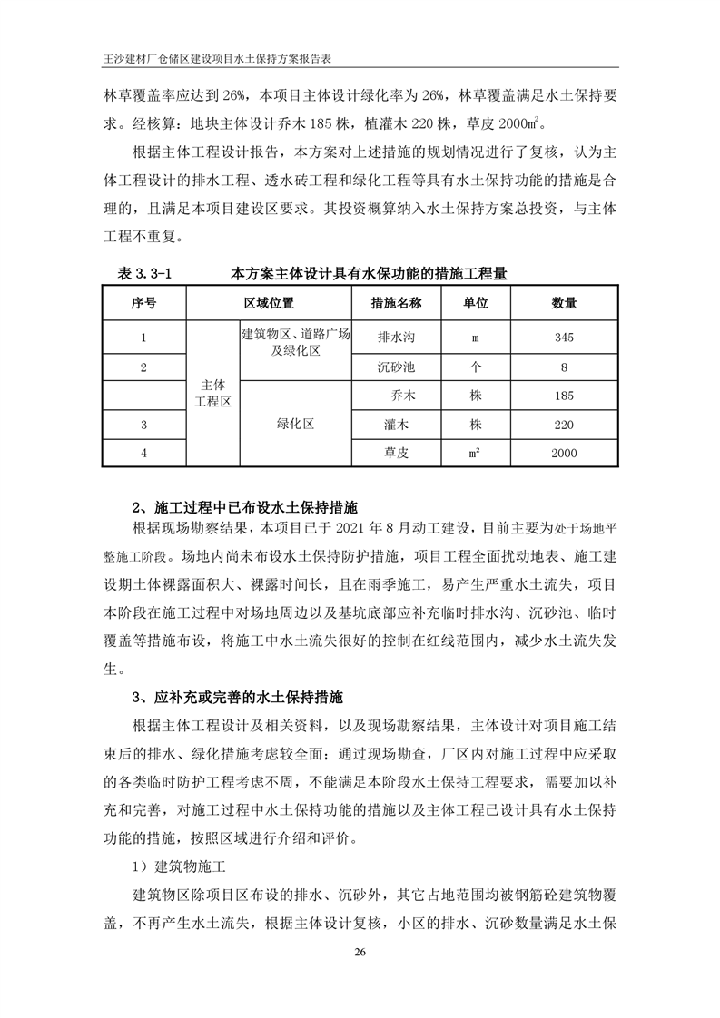 關于《王沙建材廠倉儲區建設項目水土保持方案》征求公眾意見稿