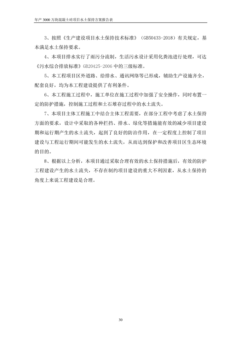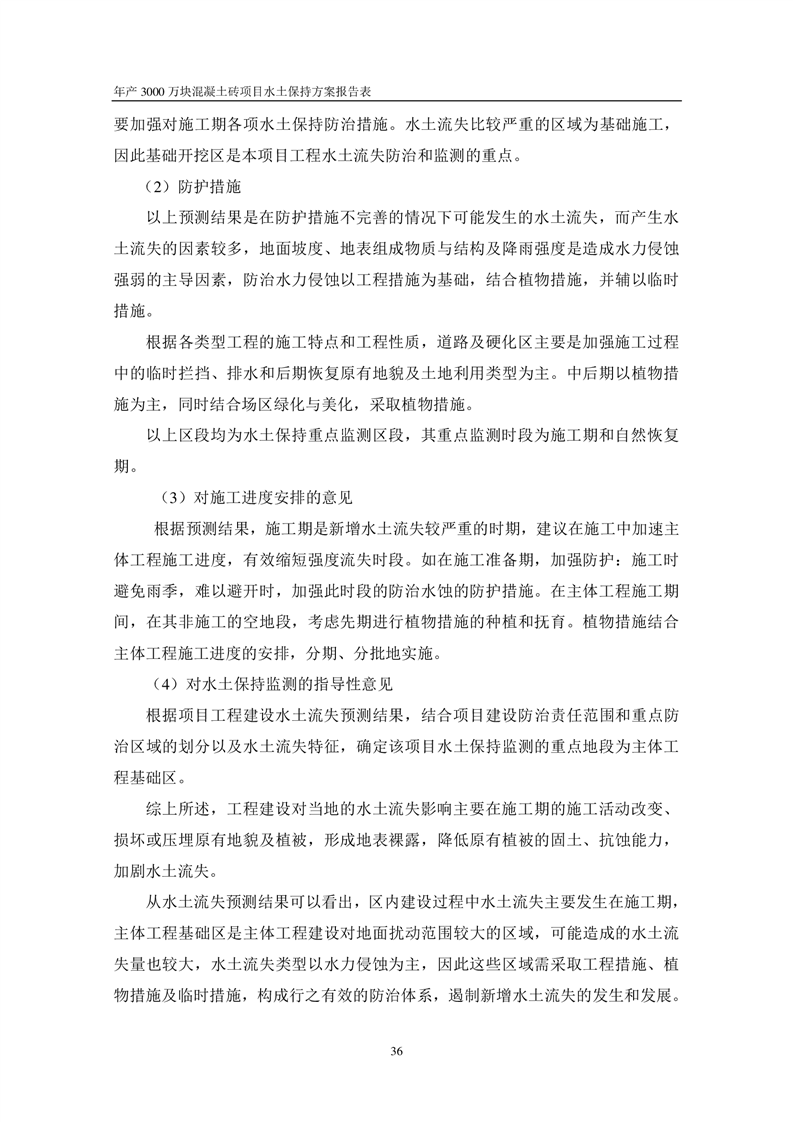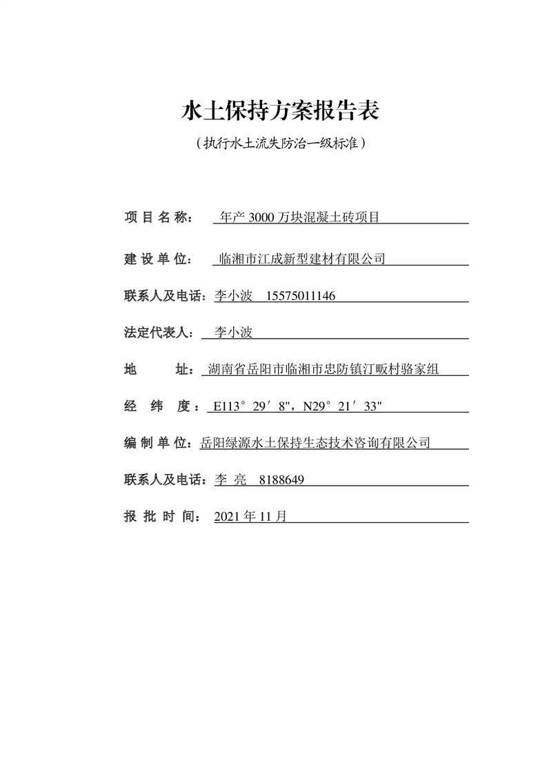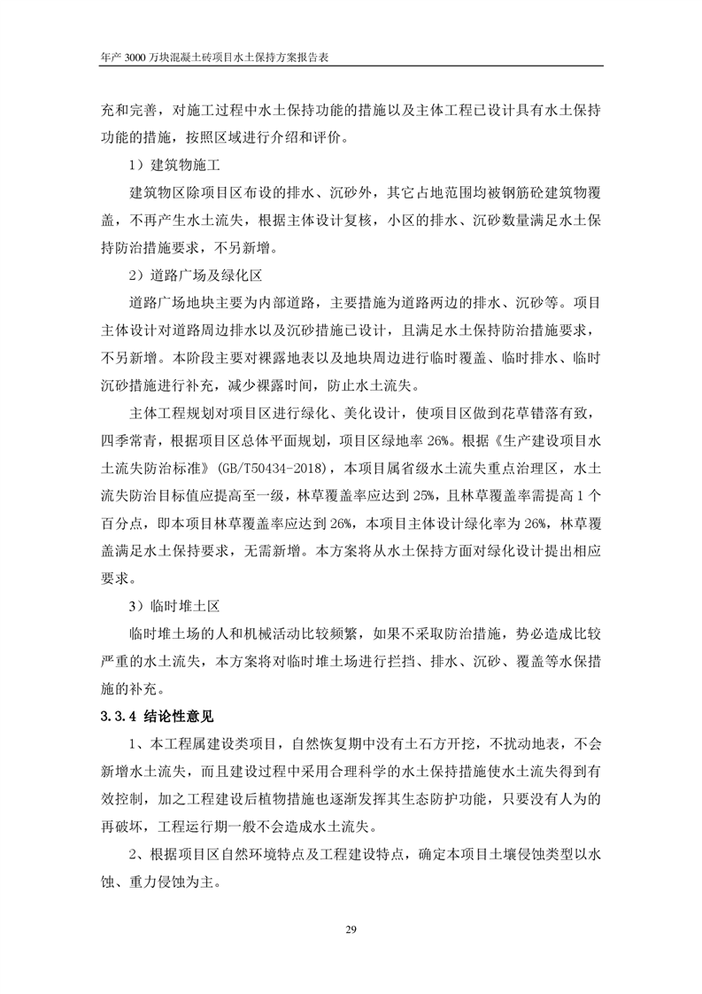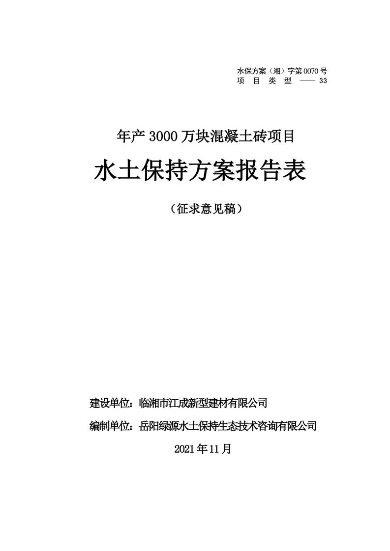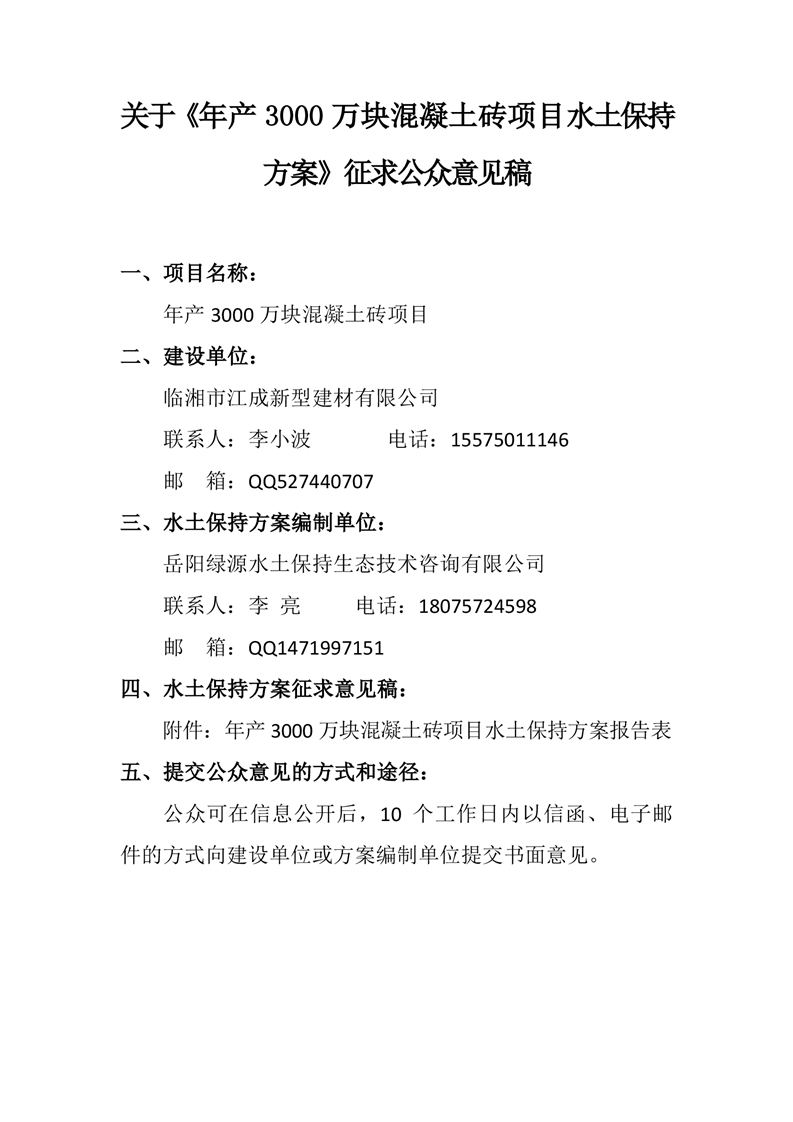 關于《年產 3000 萬塊混凝土磚項目水土保持方案》征求公眾意見稿