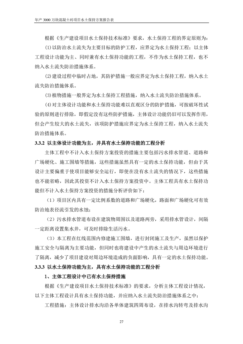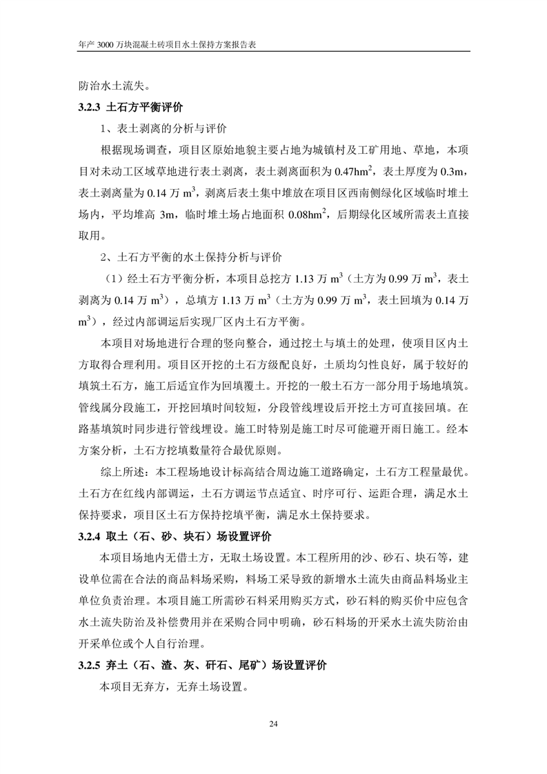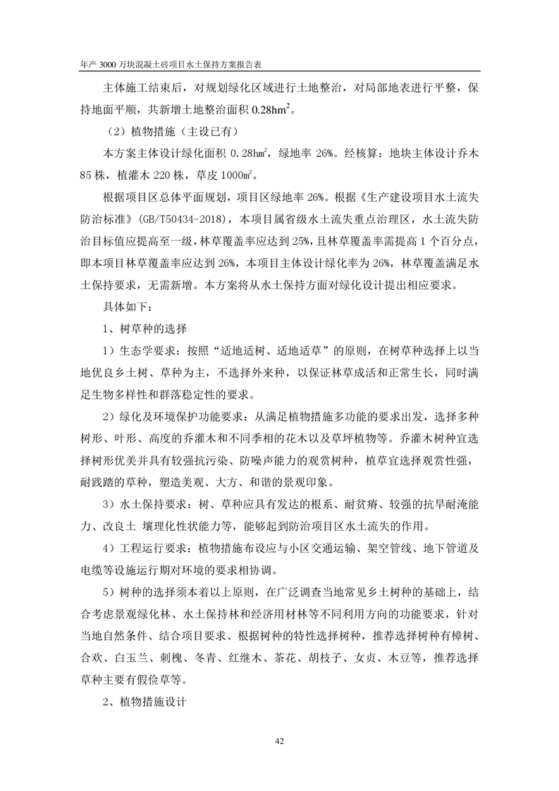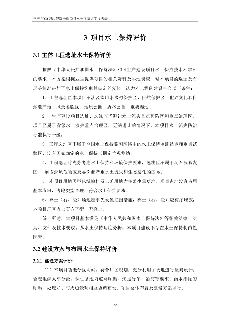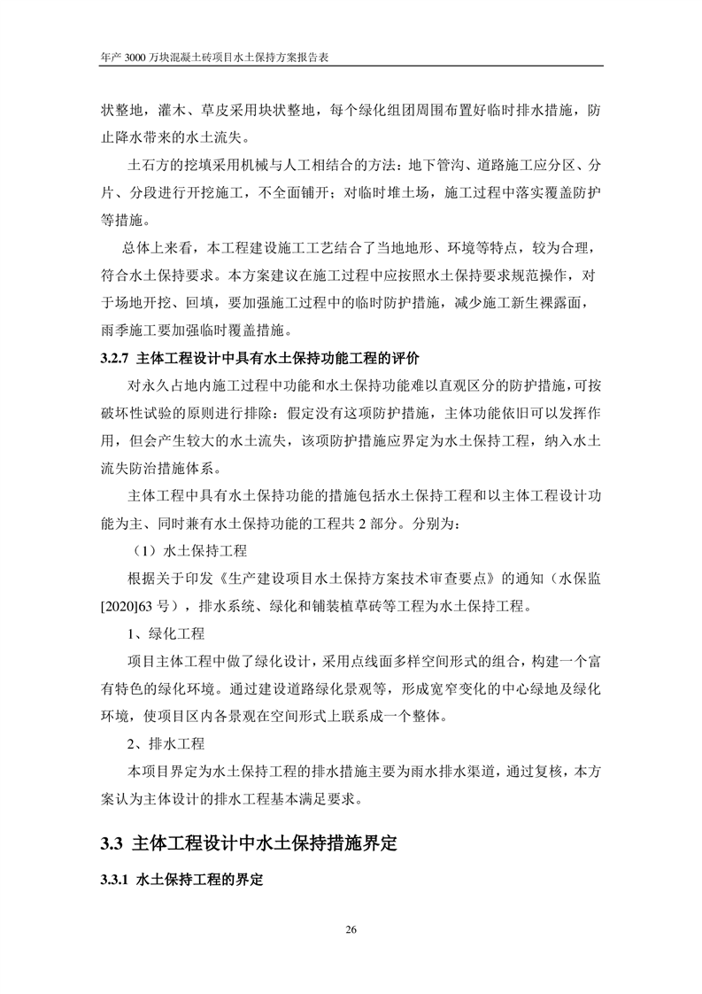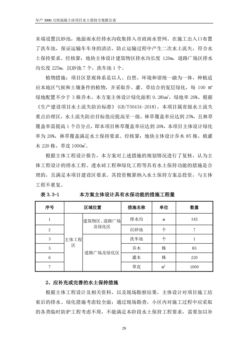 關于《年產 3000 萬塊混凝土磚項目水土保持方案》征求公眾意見稿