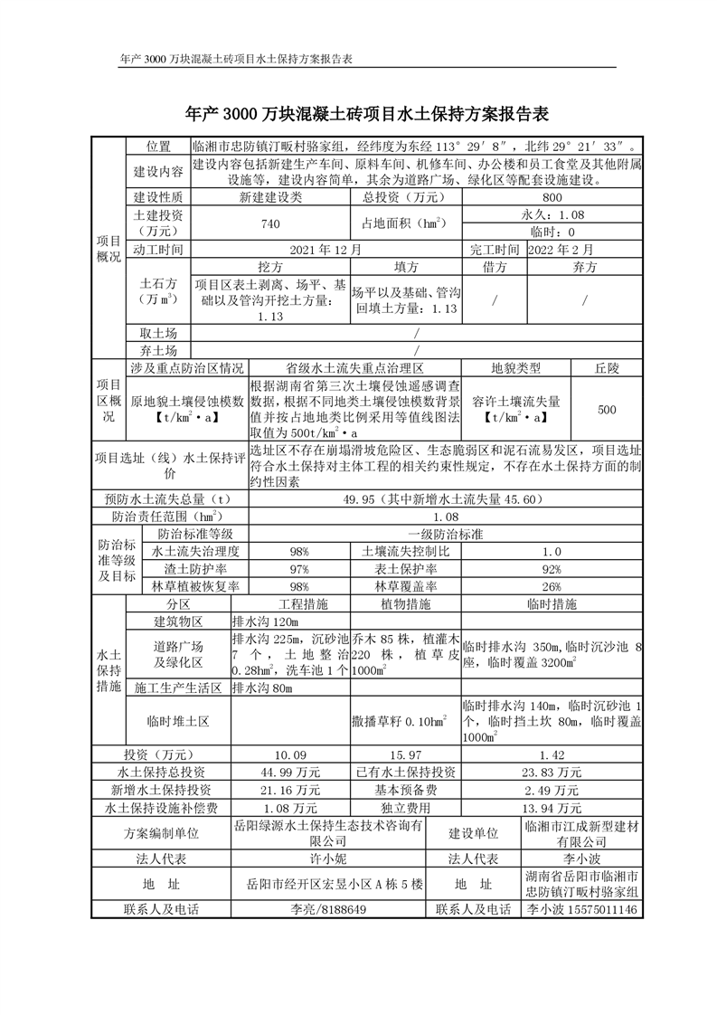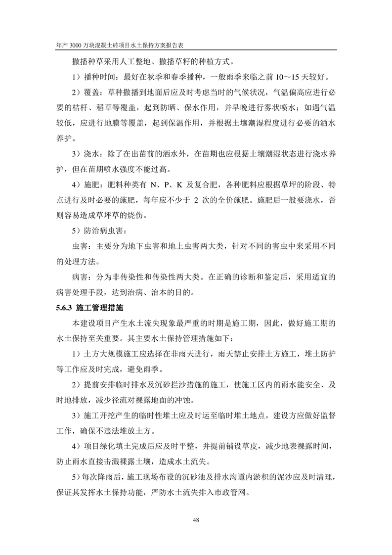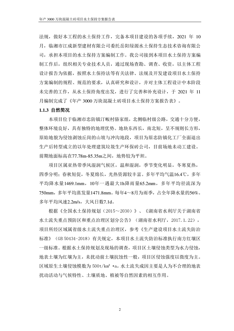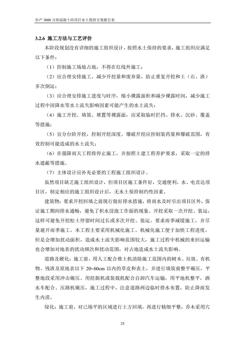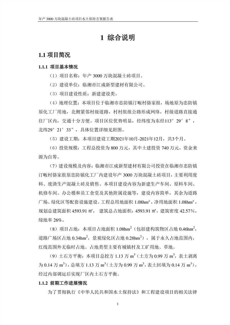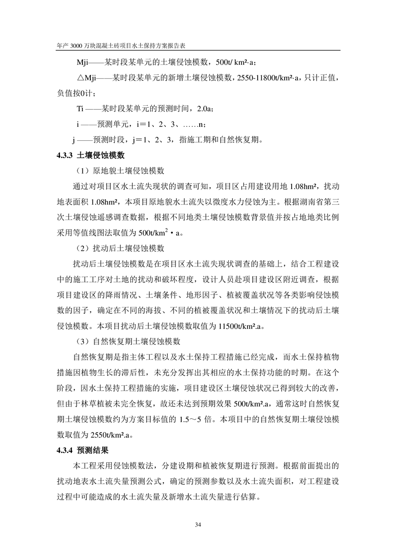 關于《年產 3000 萬塊混凝土磚項目水土保持方案》征求公眾意見稿
