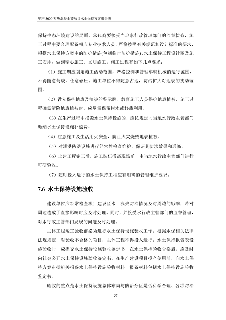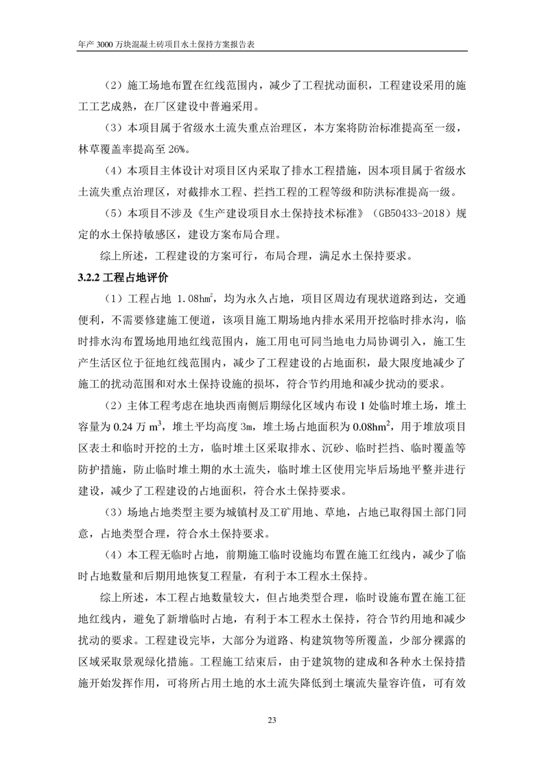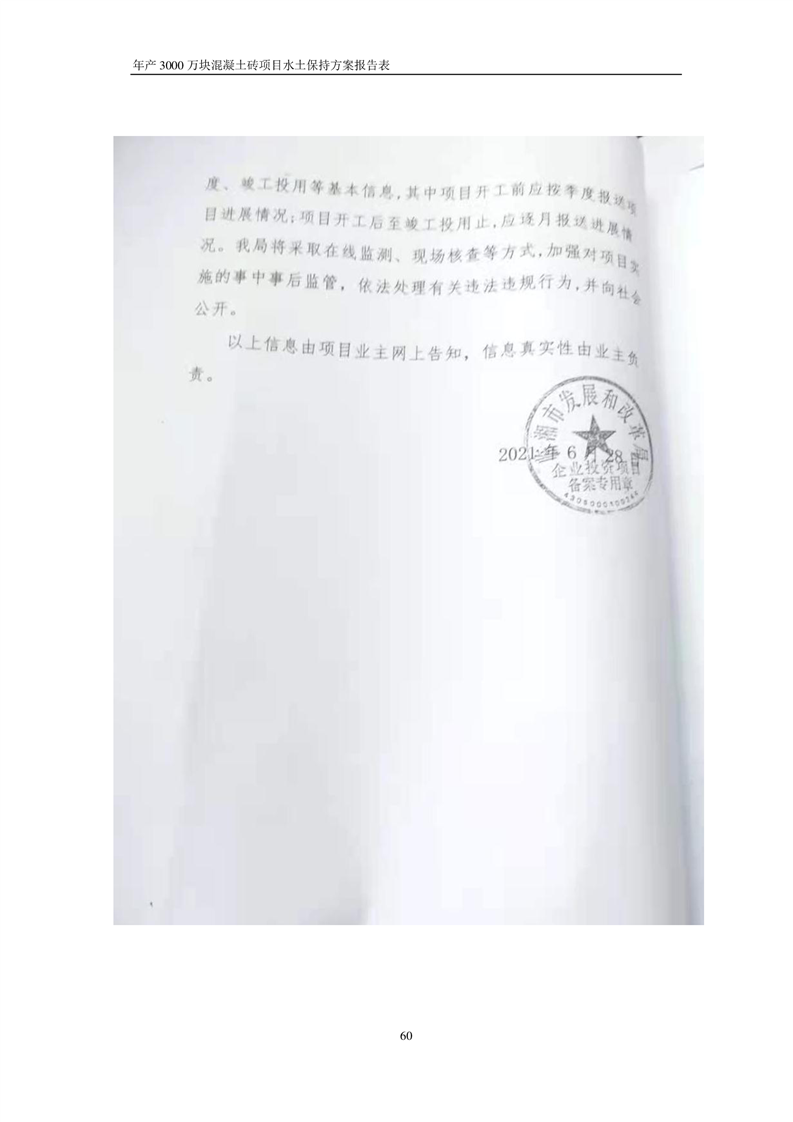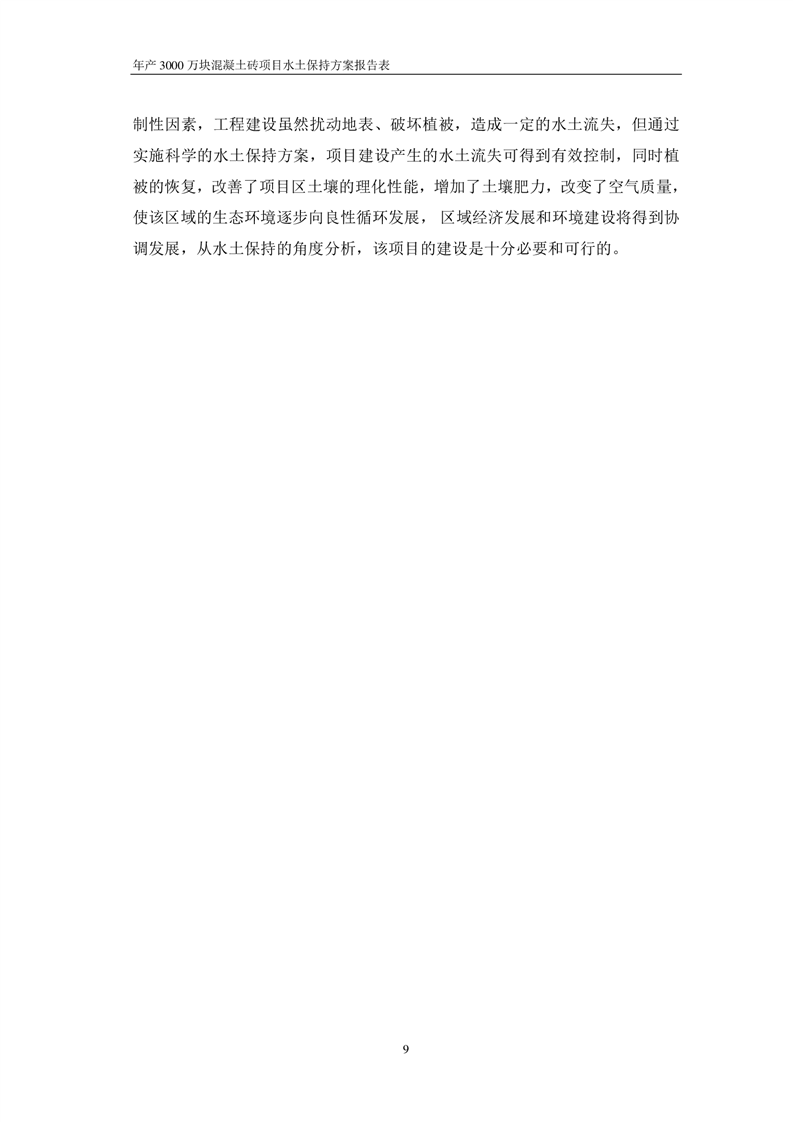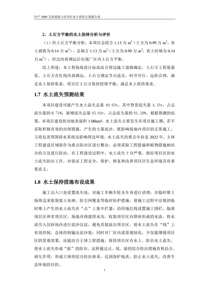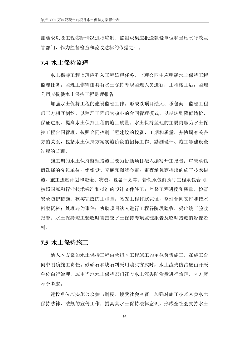 關于《年產 3000 萬塊混凝土磚項目水土保持方案》征求公眾意見稿