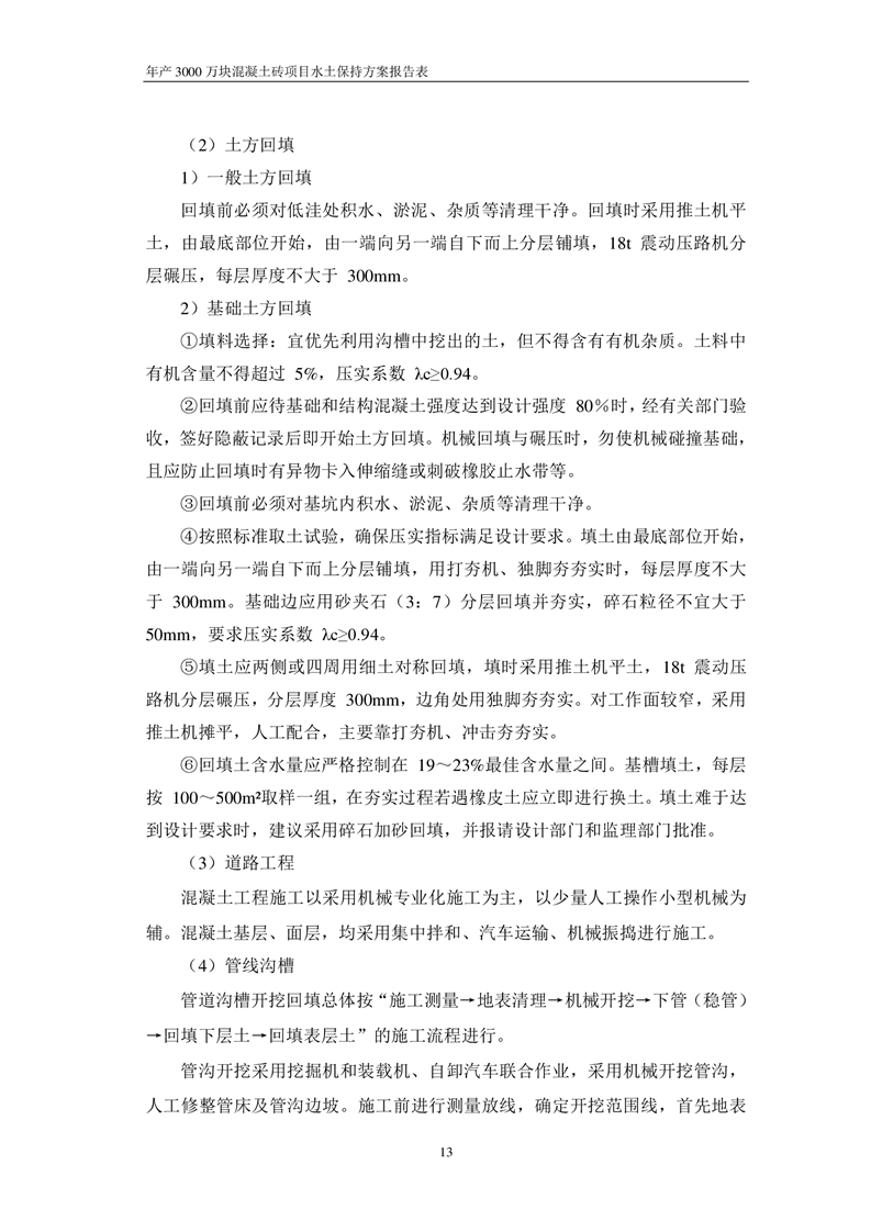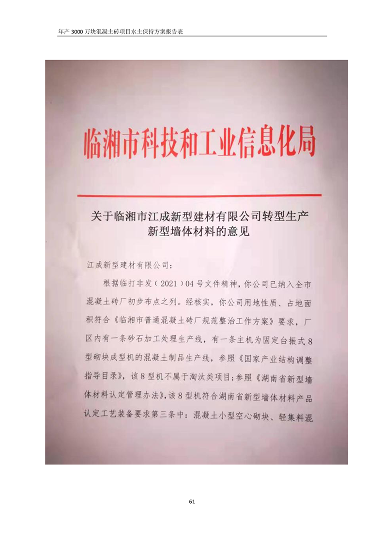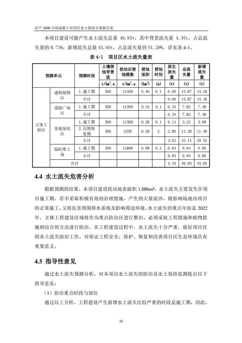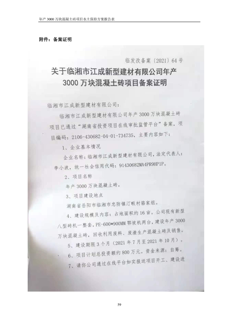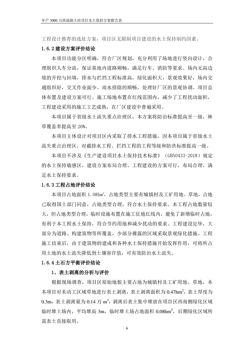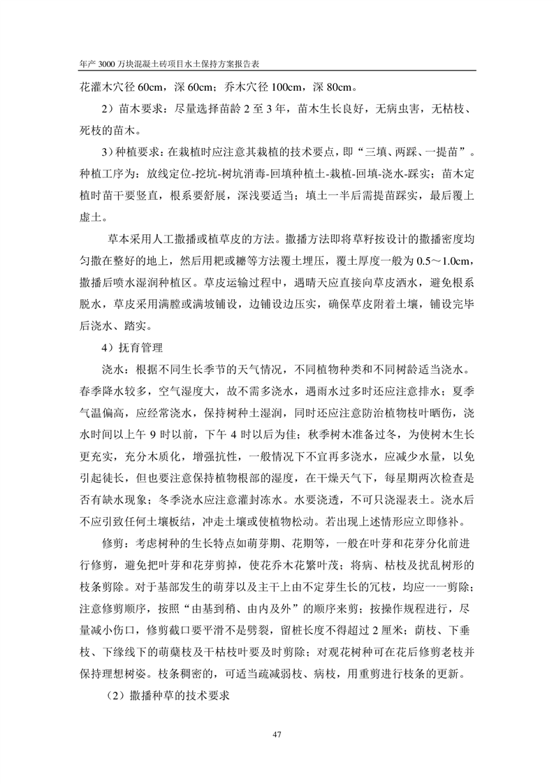 關于《年產 3000 萬塊混凝土磚項目水土保持方案》征求公眾意見稿