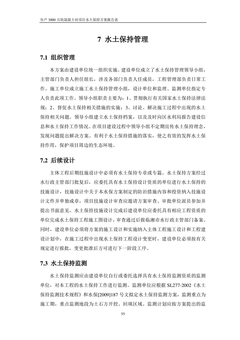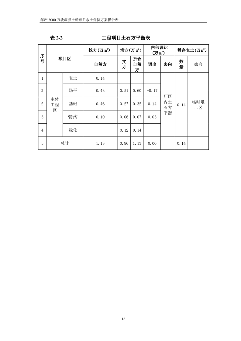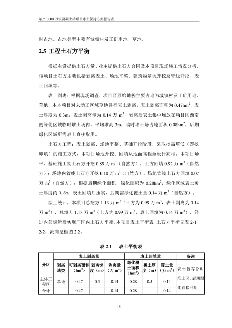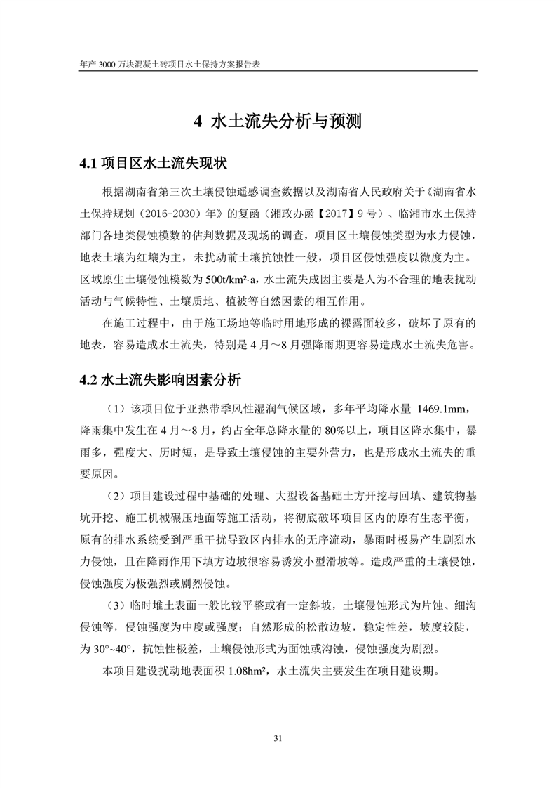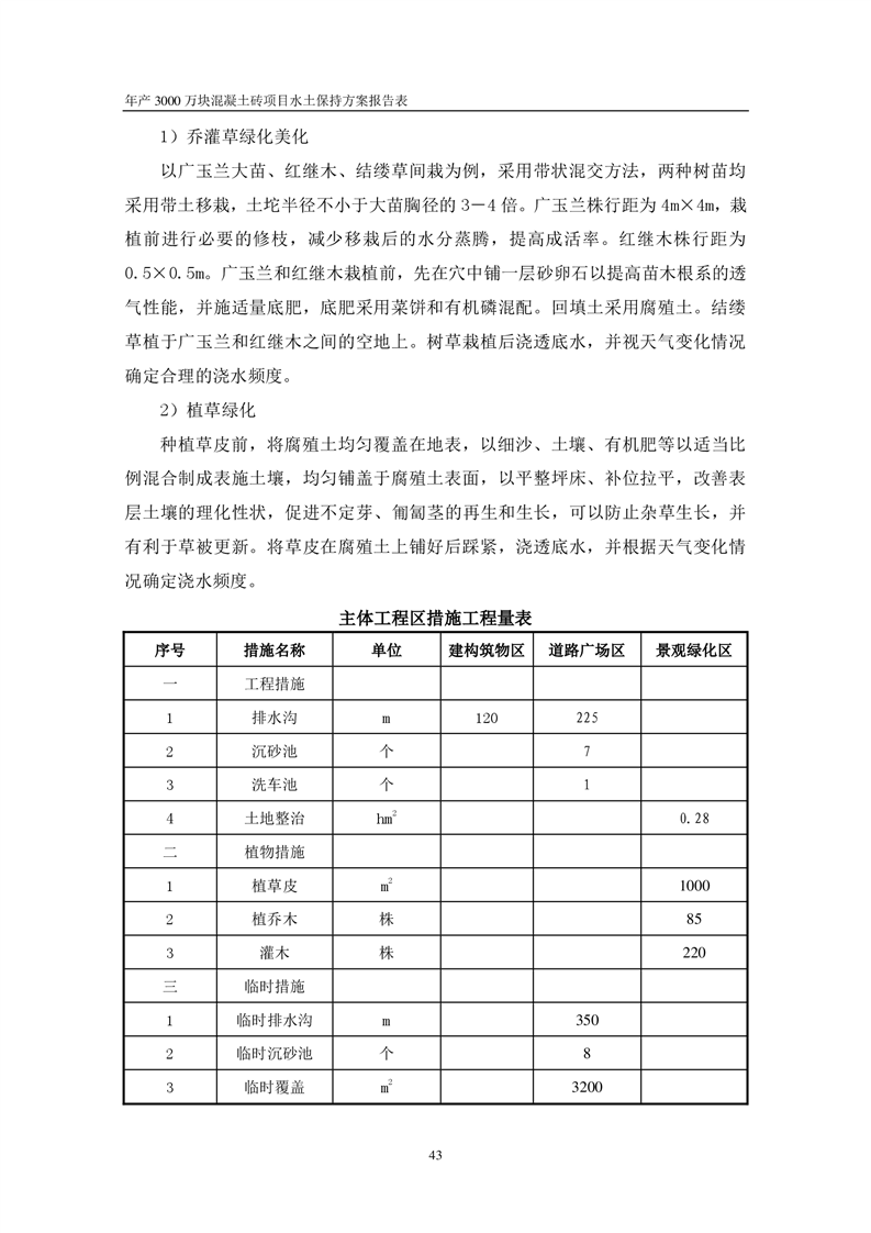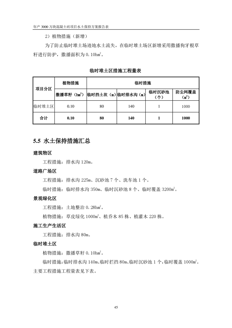 關于《年產 3000 萬塊混凝土磚項目水土保持方案》征求公眾意見稿