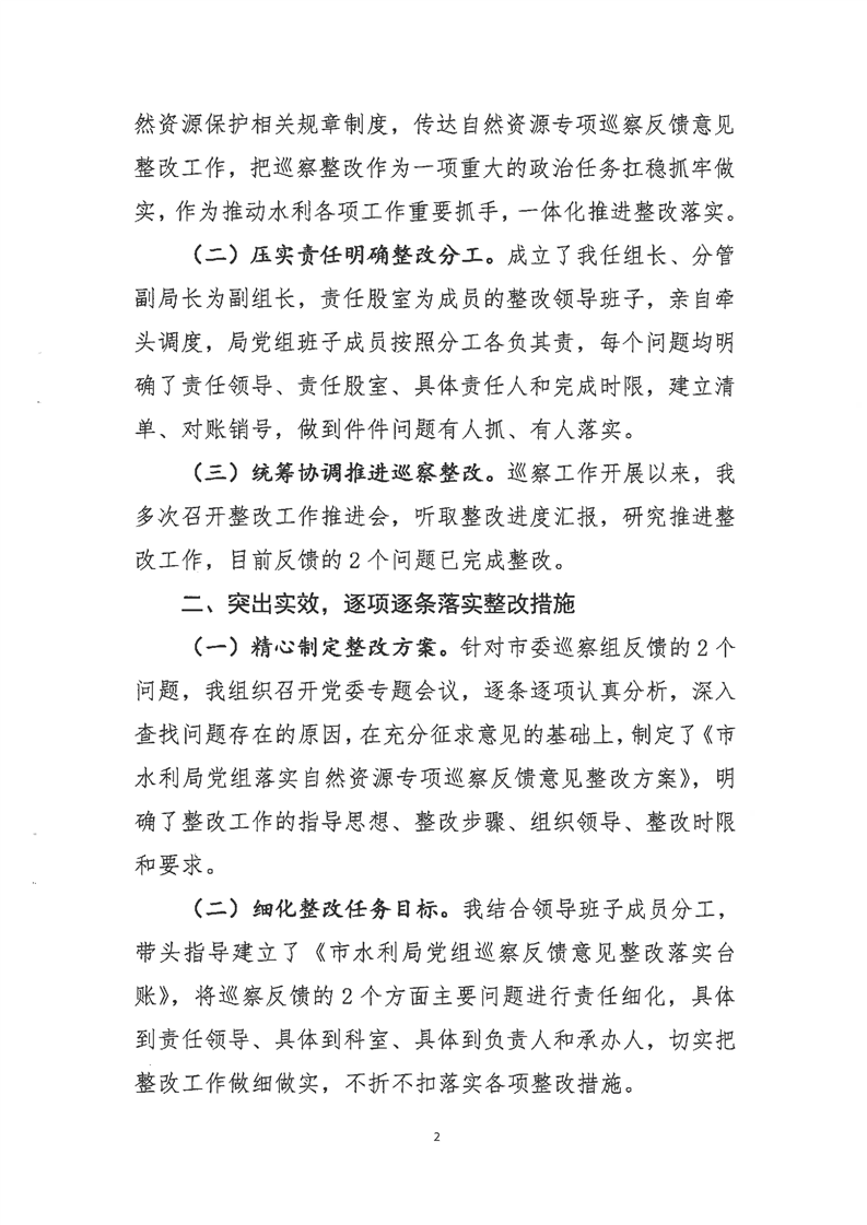 市水利局黨組書記落實自然資源專項巡察整改情況報告