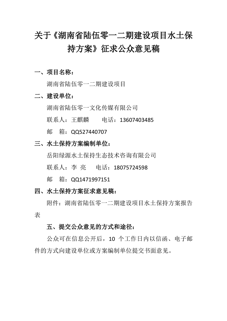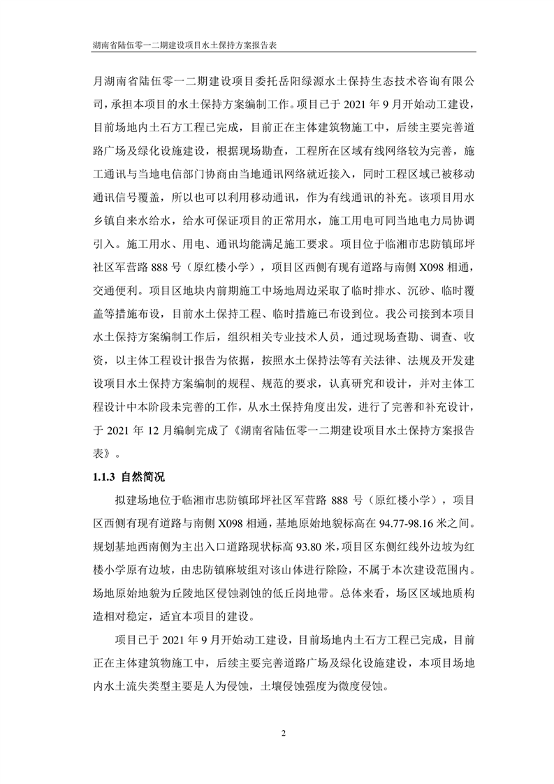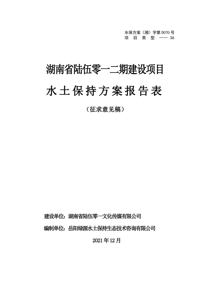 湖南省陸伍零一二期建設項目水土保持方案報告表(征求公眾意見稿)