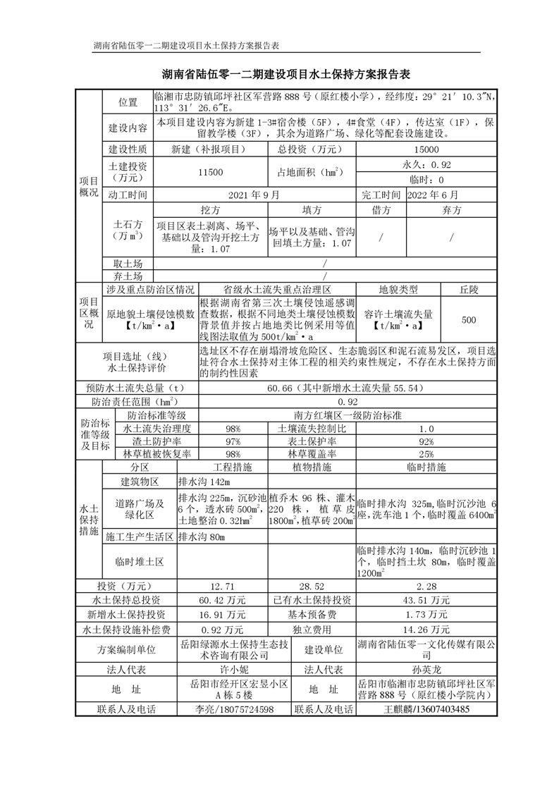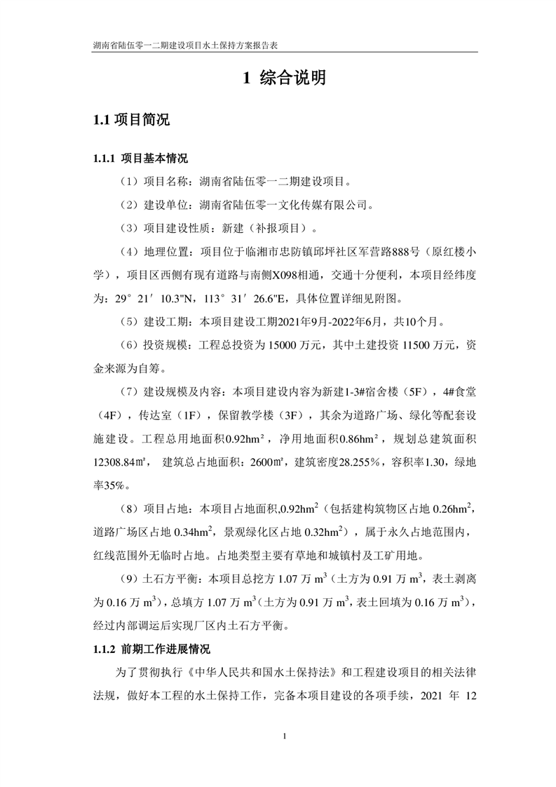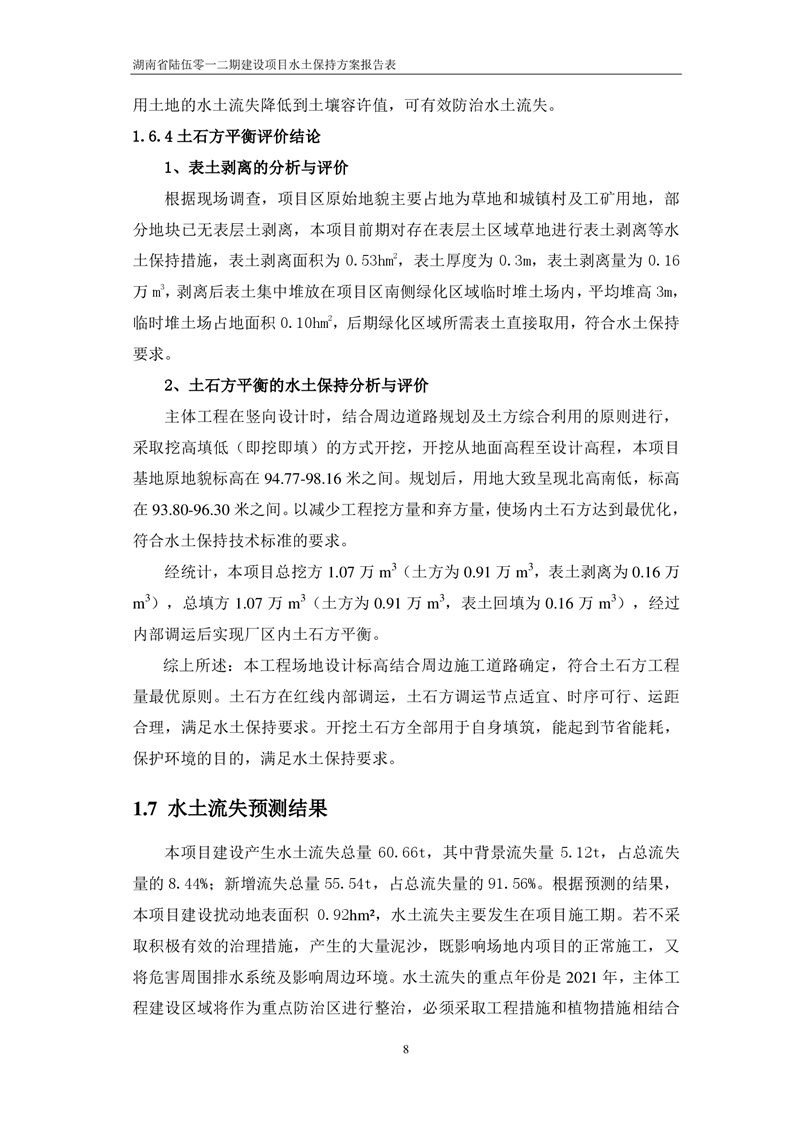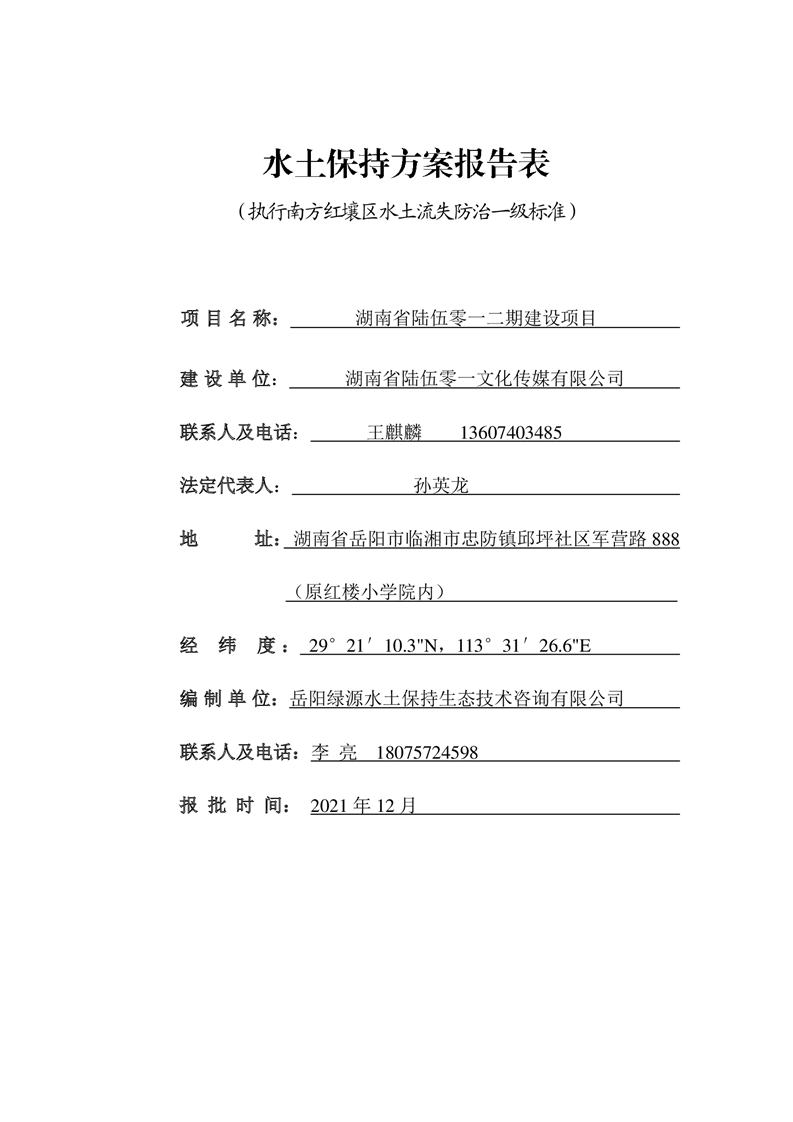 湖南省陸伍零一二期建設項目水土保持方案報告表(征求公眾意見稿)