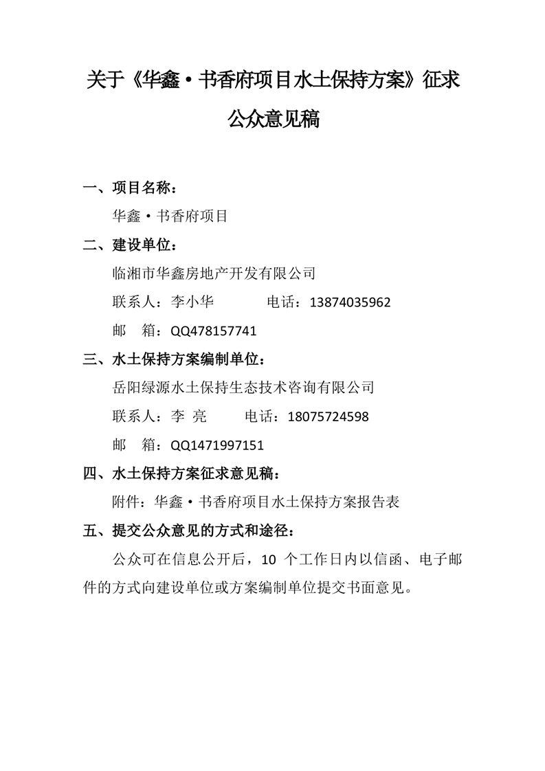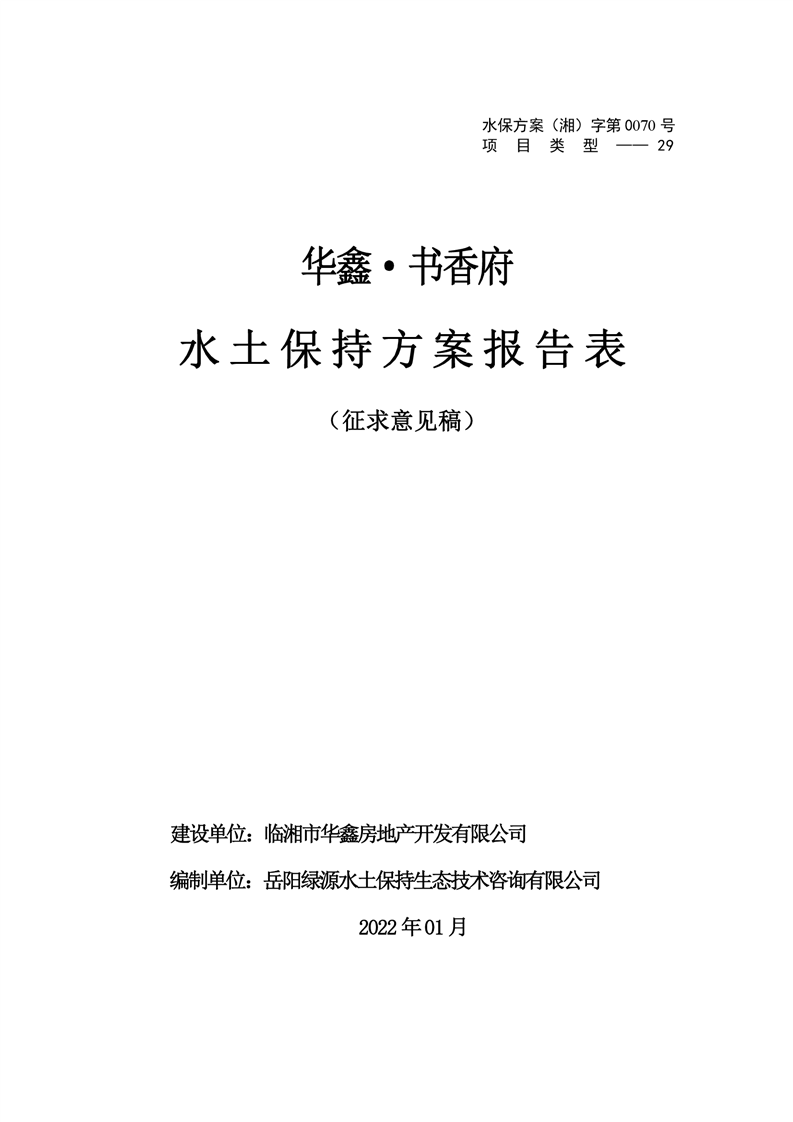 關(guān)于《華鑫·書(shū)香府項(xiàng)目水土保持方案》征求公眾意見(jiàn)稿