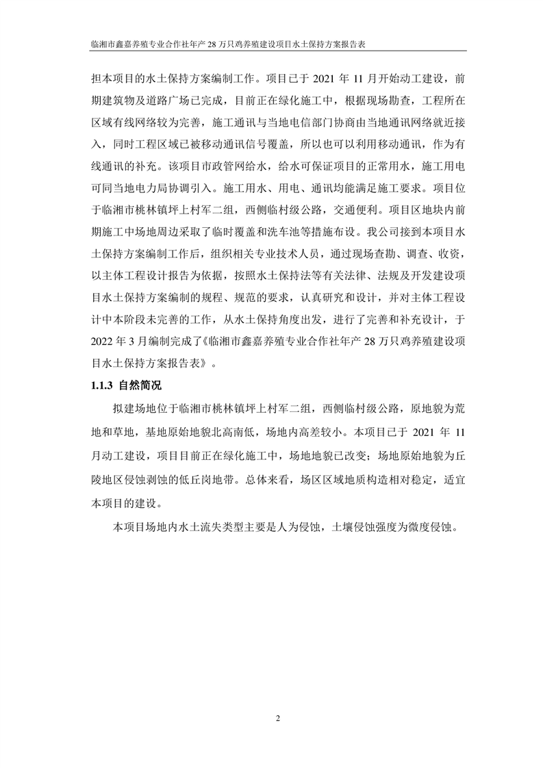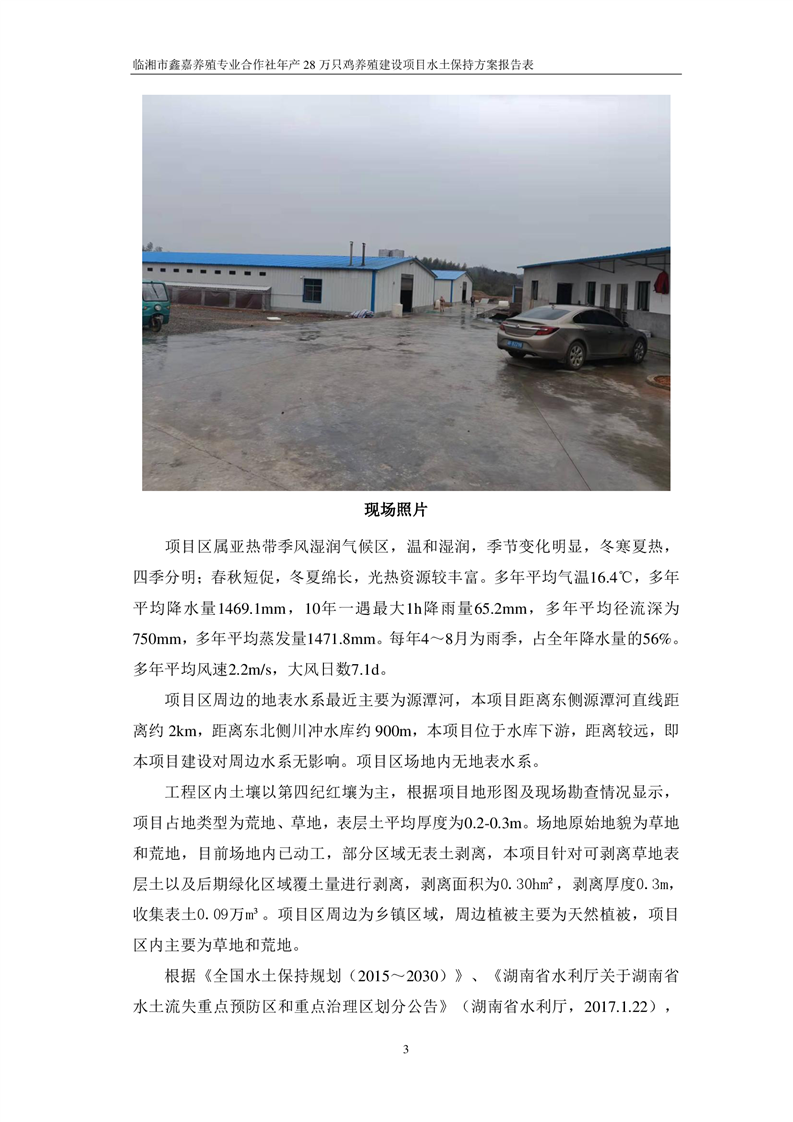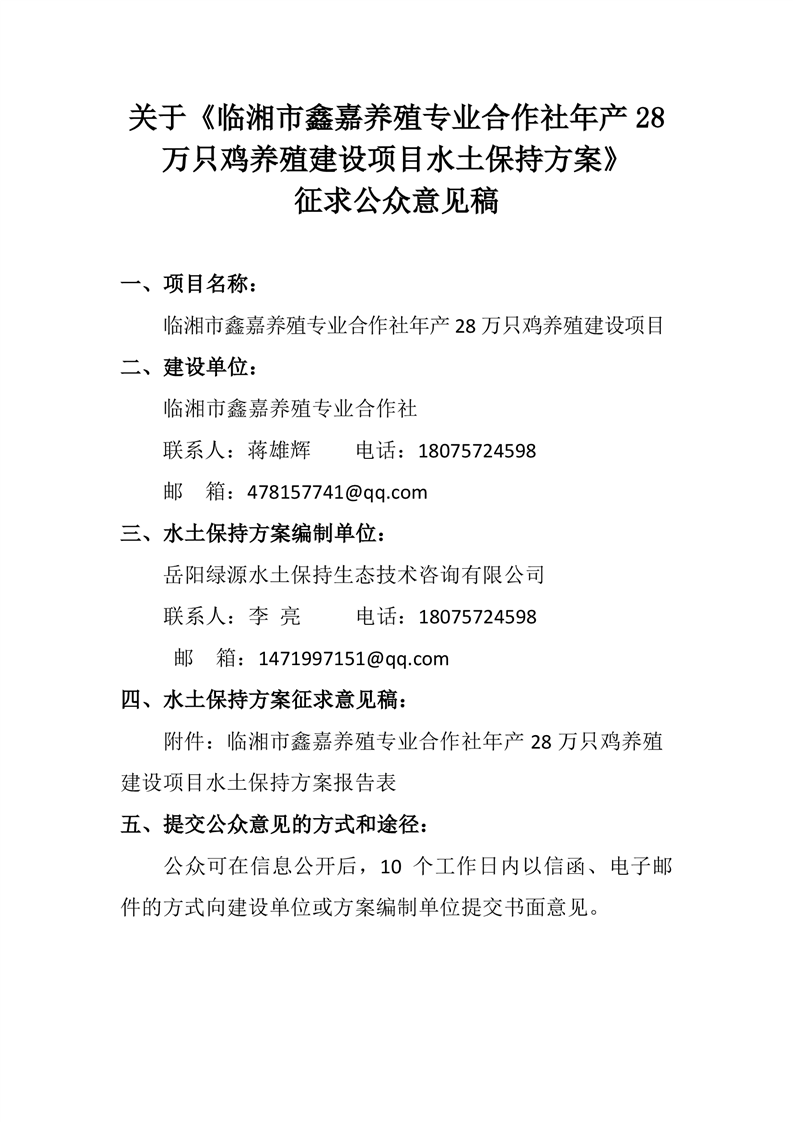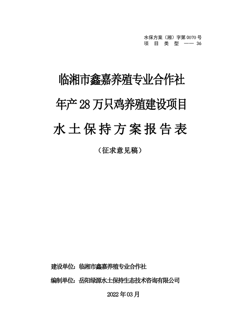 關于《臨湘市鑫嘉養殖專業合作社年產 28萬只雞養殖建設項目水土保持方案》征求公眾意見稿