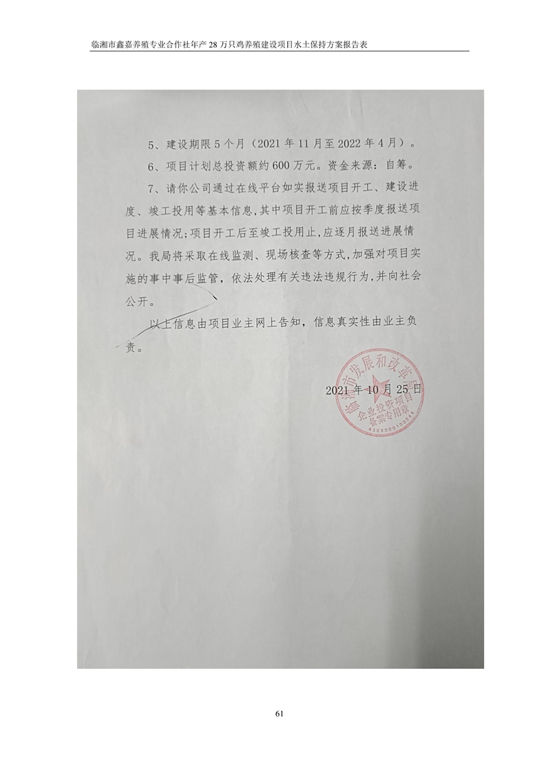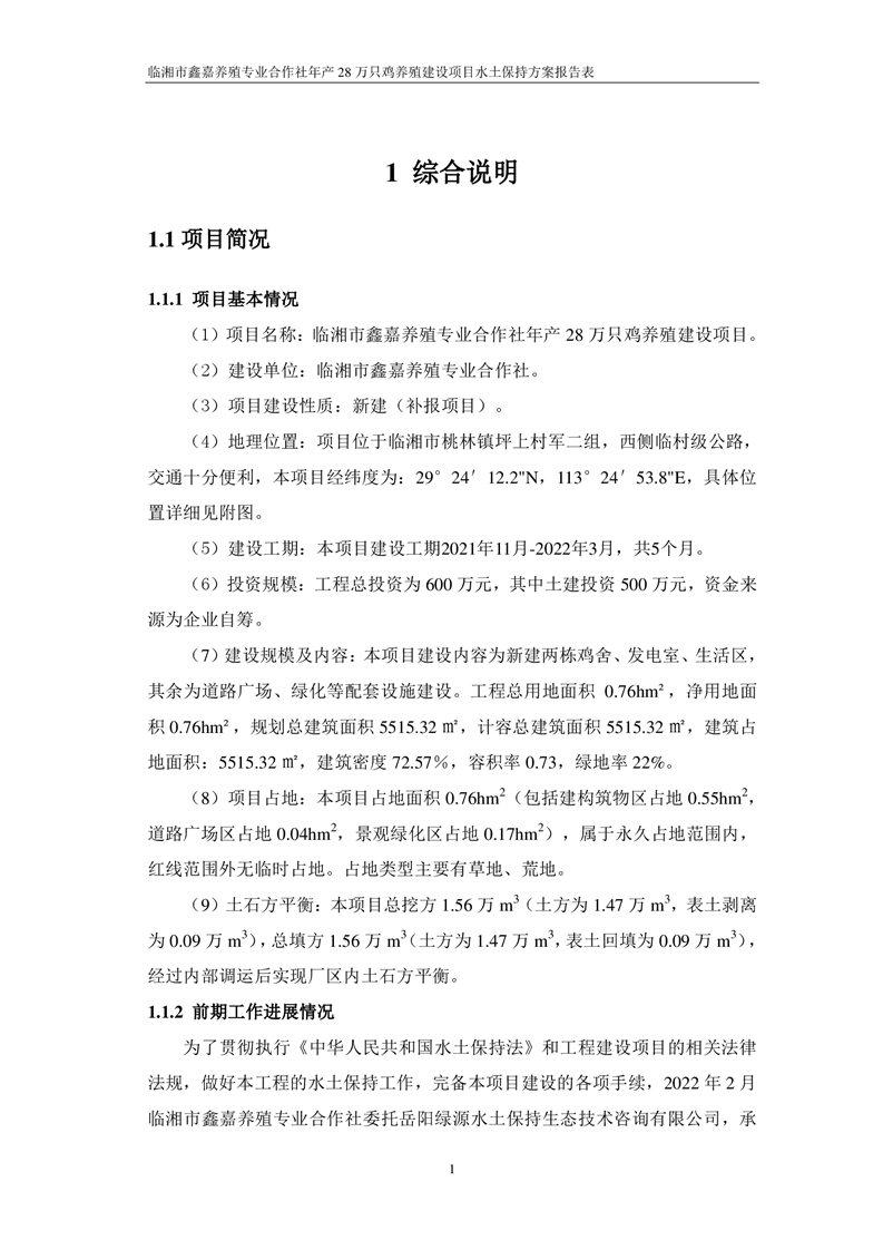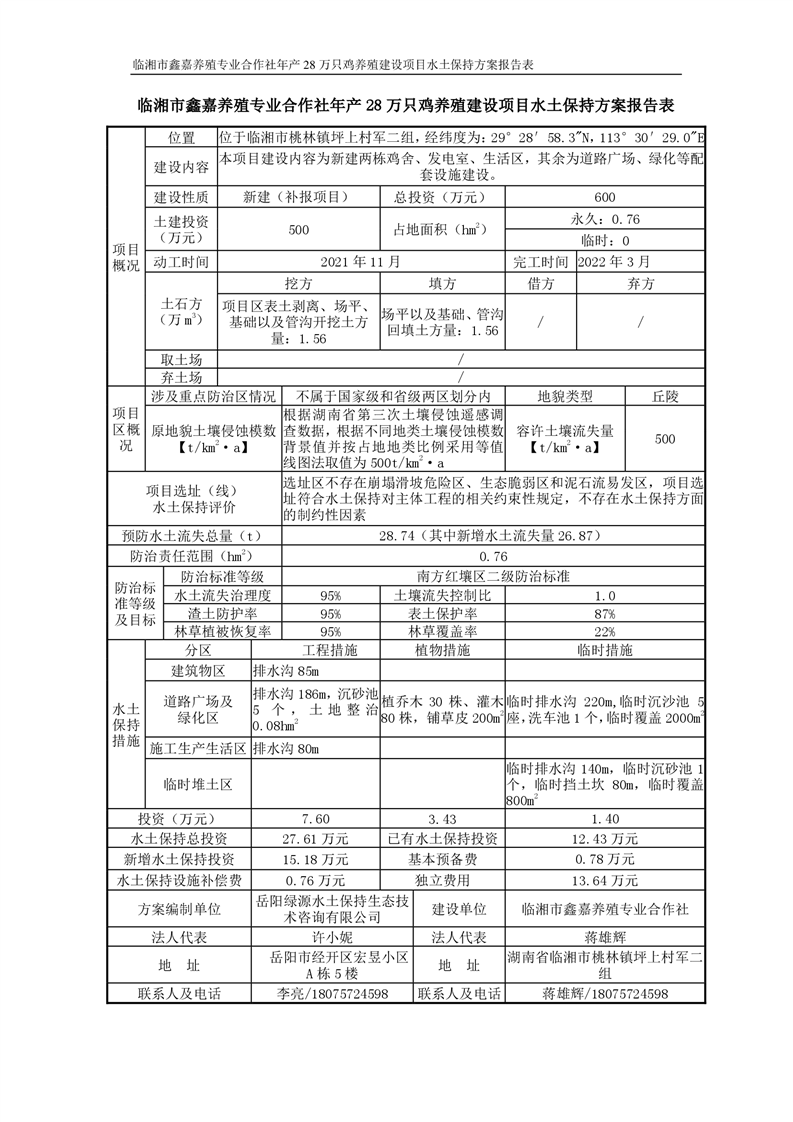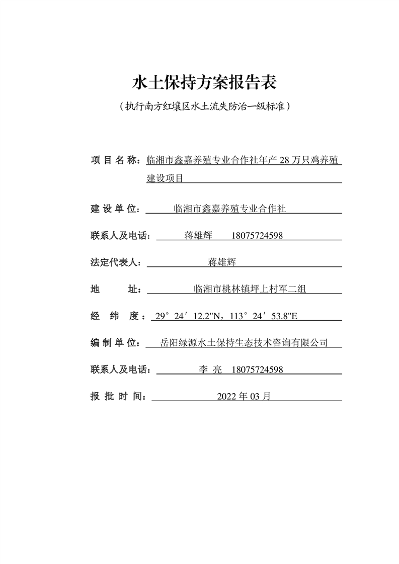 關于《臨湘市鑫嘉養殖專業合作社年產 28萬只雞養殖建設項目水土保持方案》征求公眾意見稿