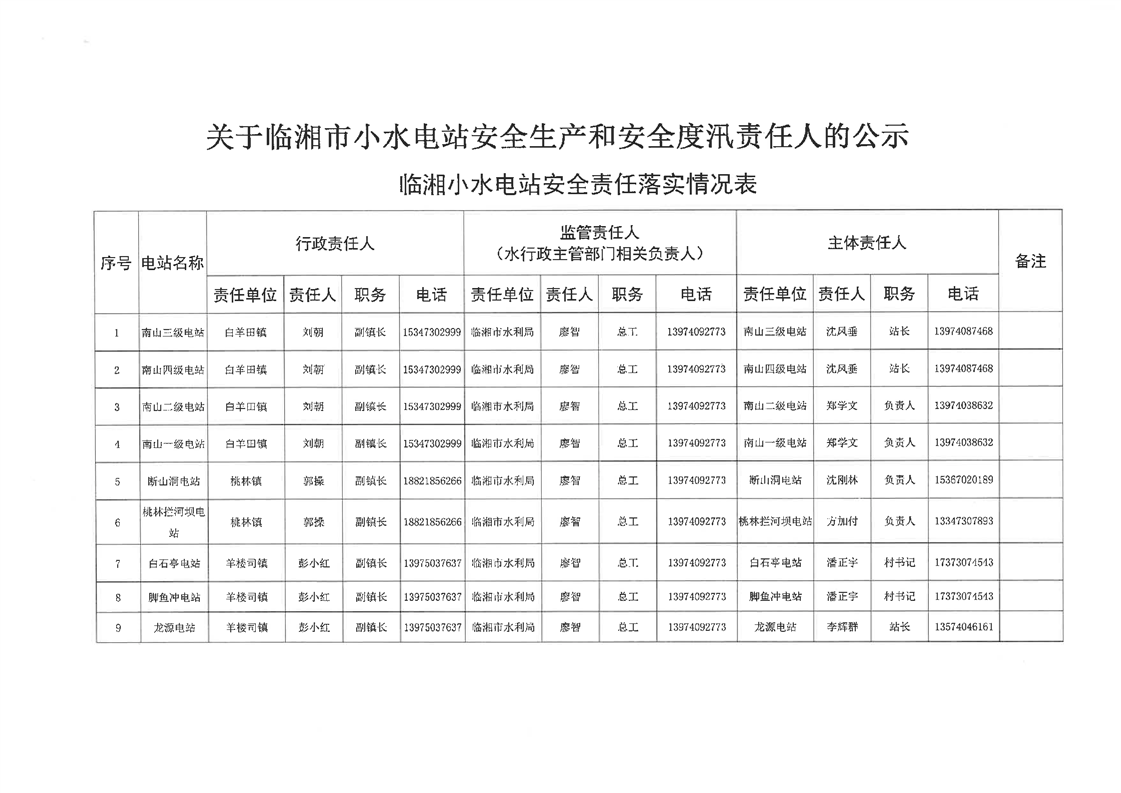 關于臨湘市小水電站安全生產和安全度汛責任人的公示