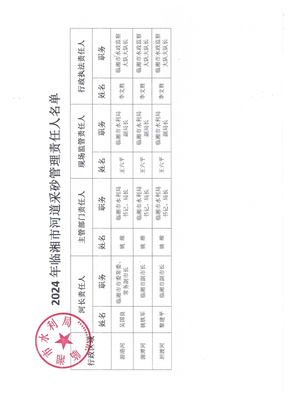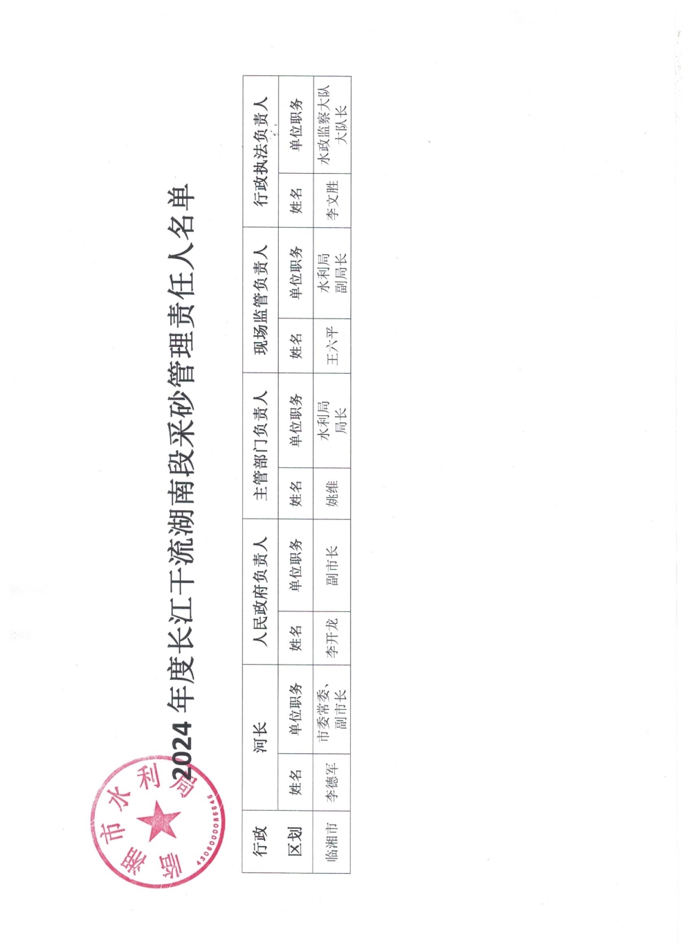 關于2024年臨湘市河道采砂、長江干流湖南段采砂管理責任人名單的公示