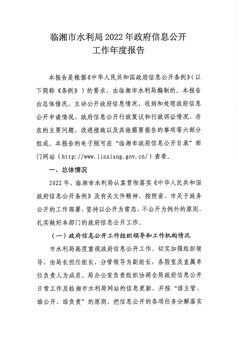 臨湘市水利局2022年政府信息公開工作年度報(bào)告