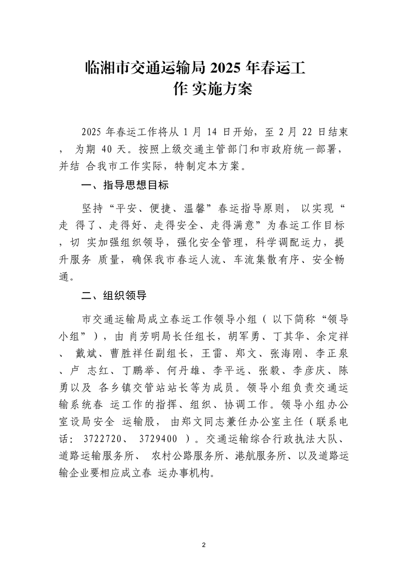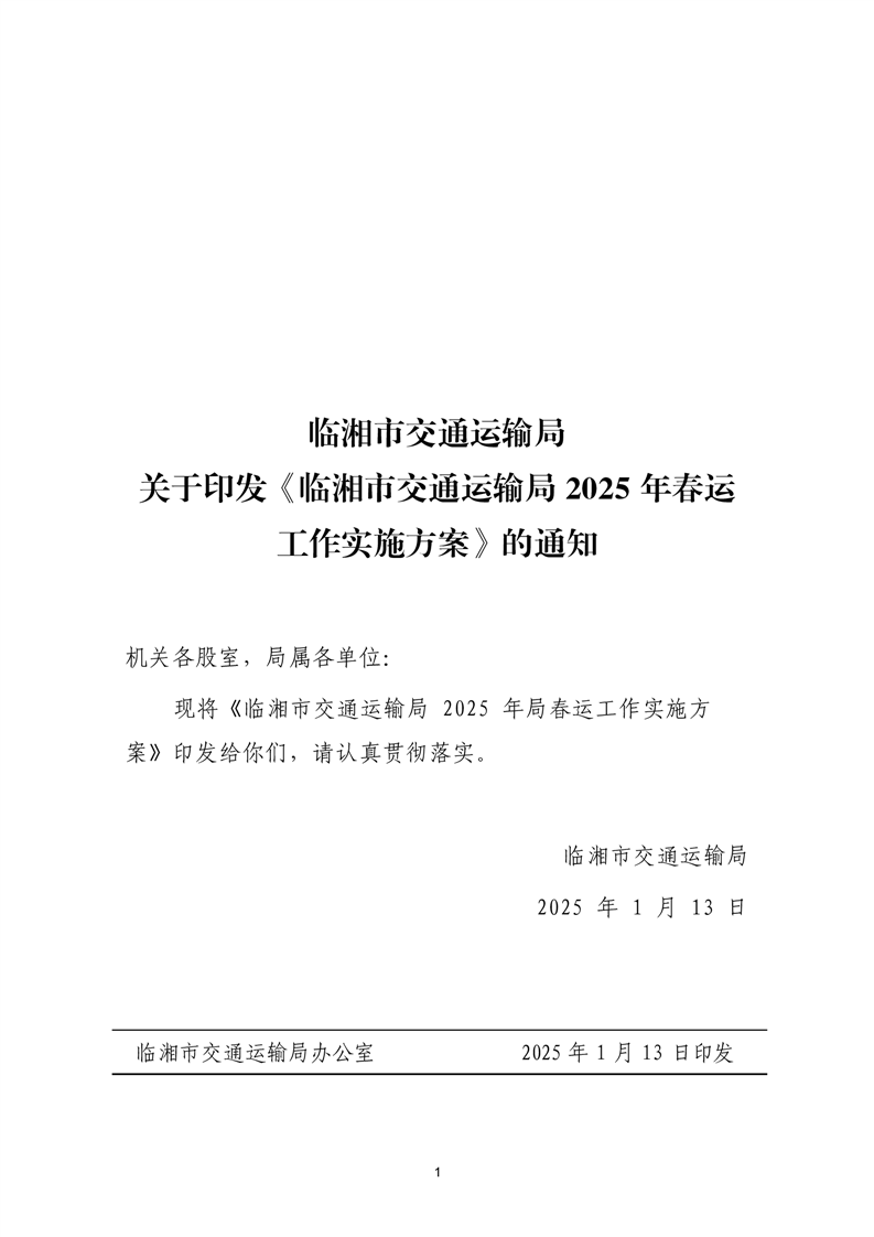 關于印發《2025年臨湘市交通運輸局春運工作實施方案》的通知