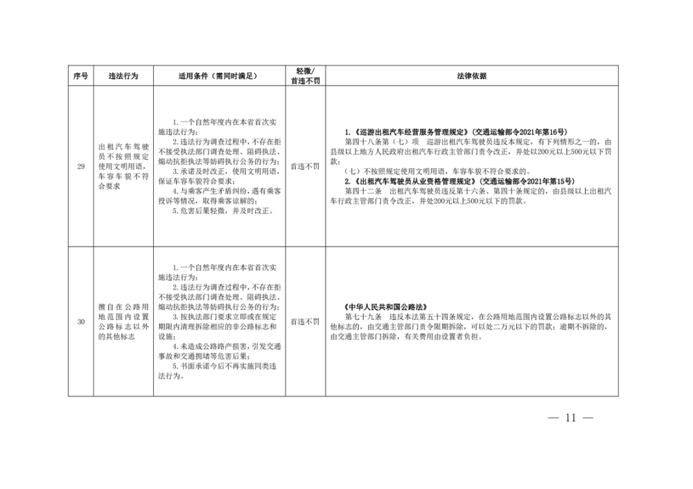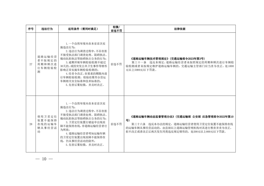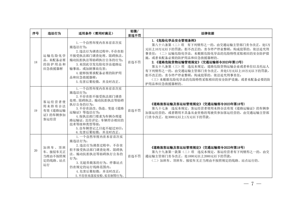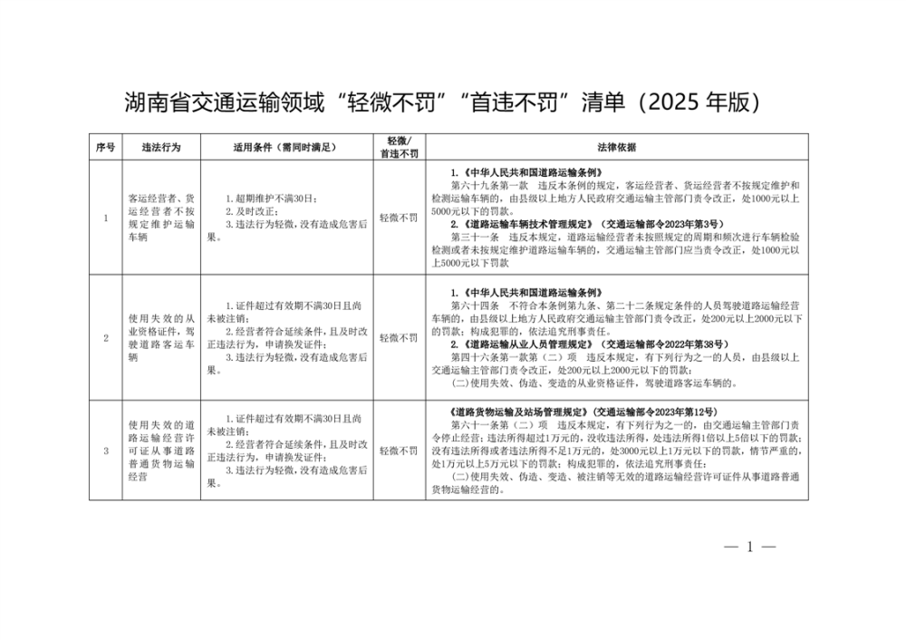 湖南省交通運輸領域“輕微不罰”“首違不罰”清單 2025年版
