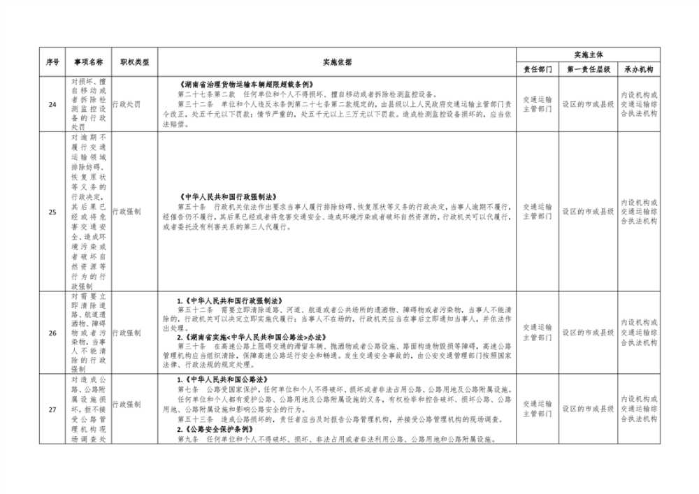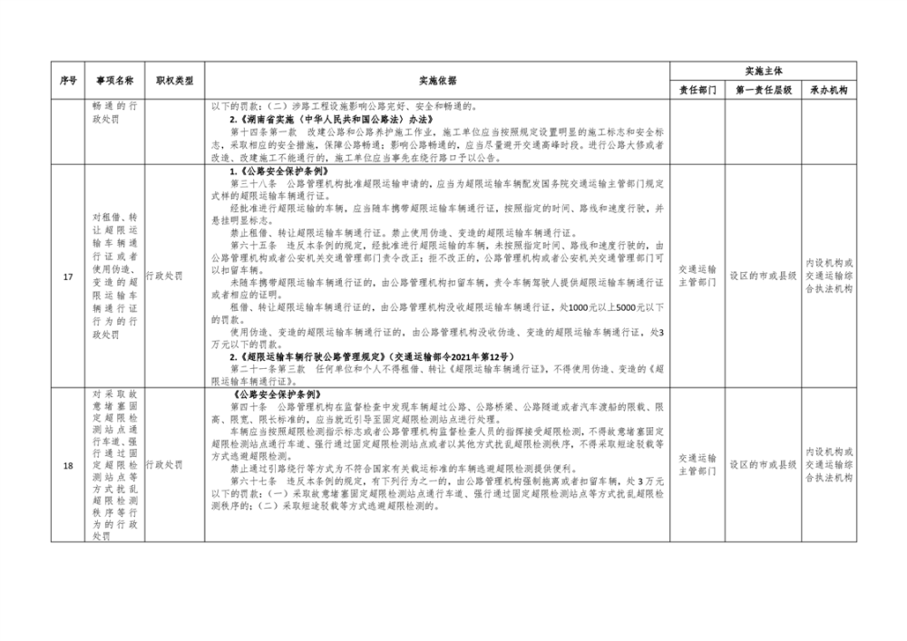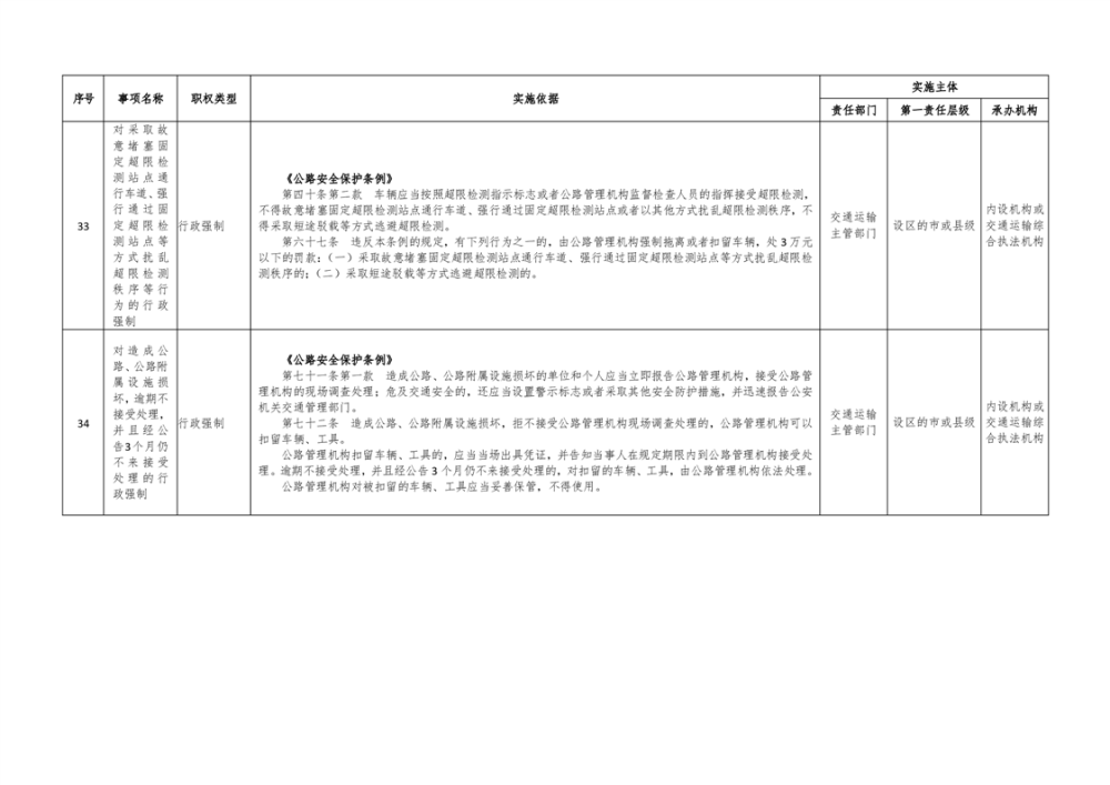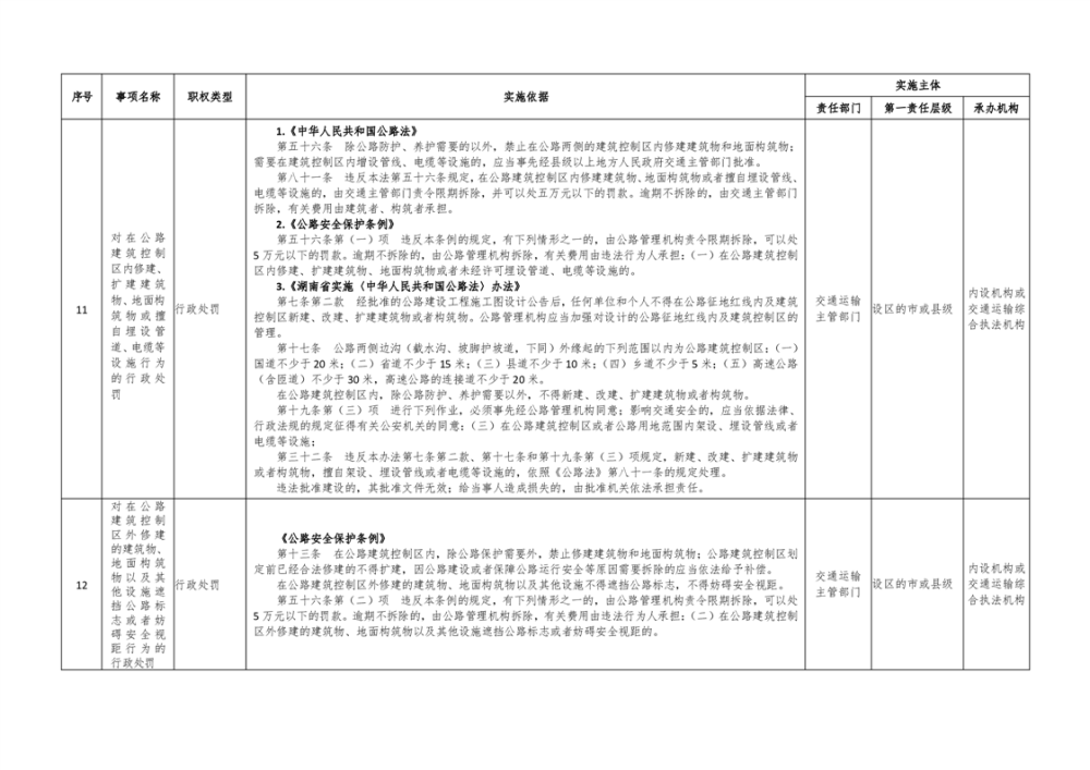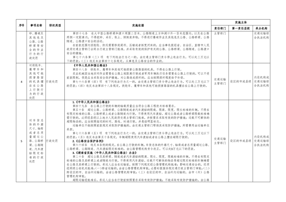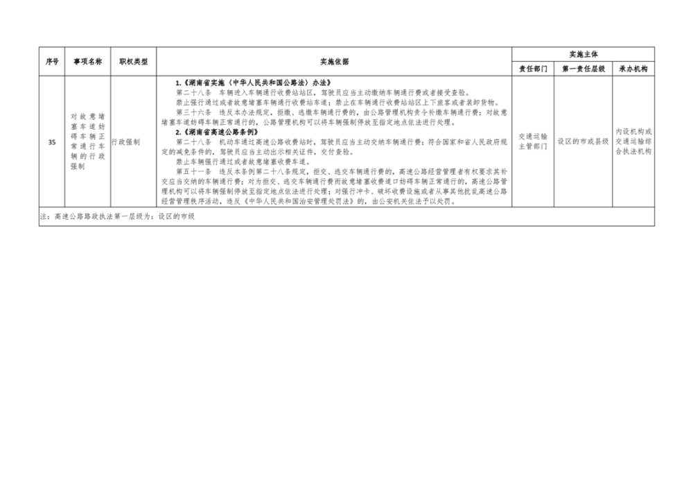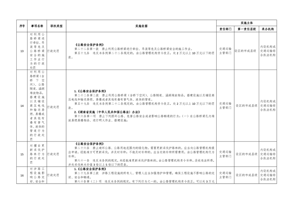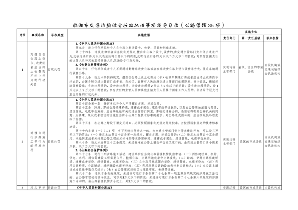 臨湘市交通運輸綜合行政執法事項指導目錄 公路管理35項