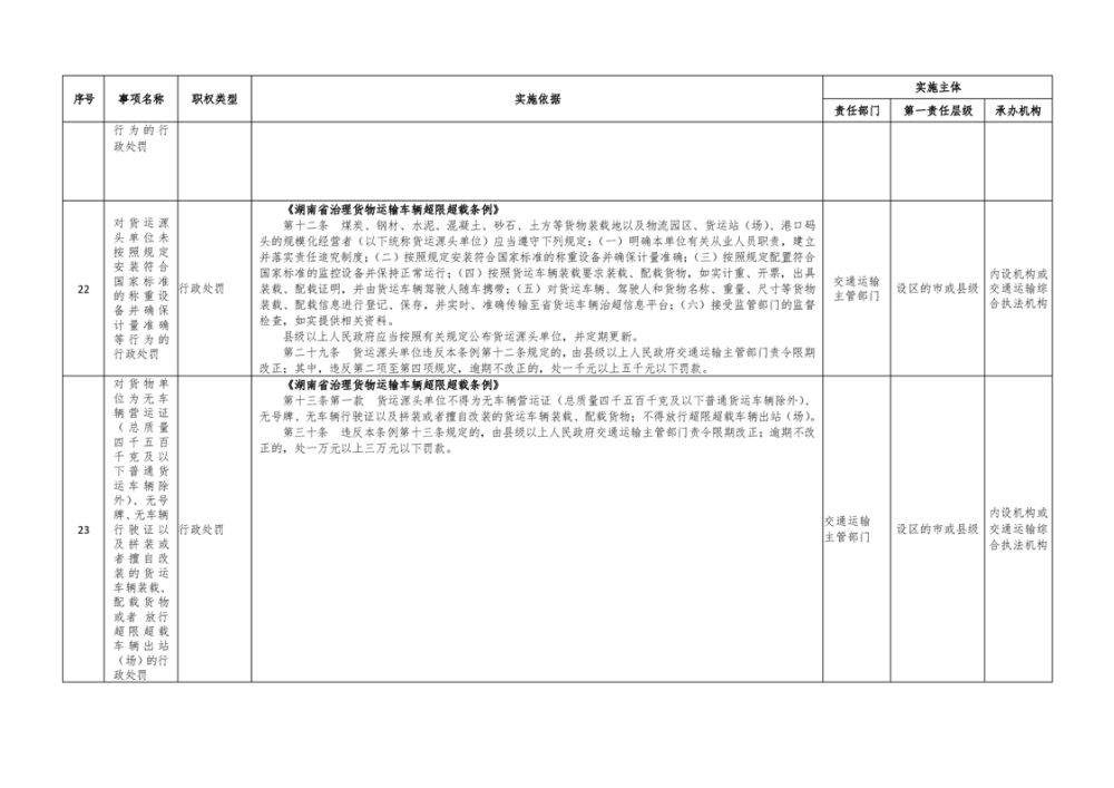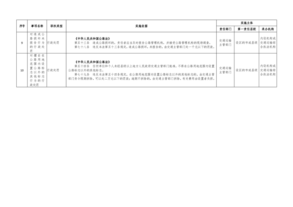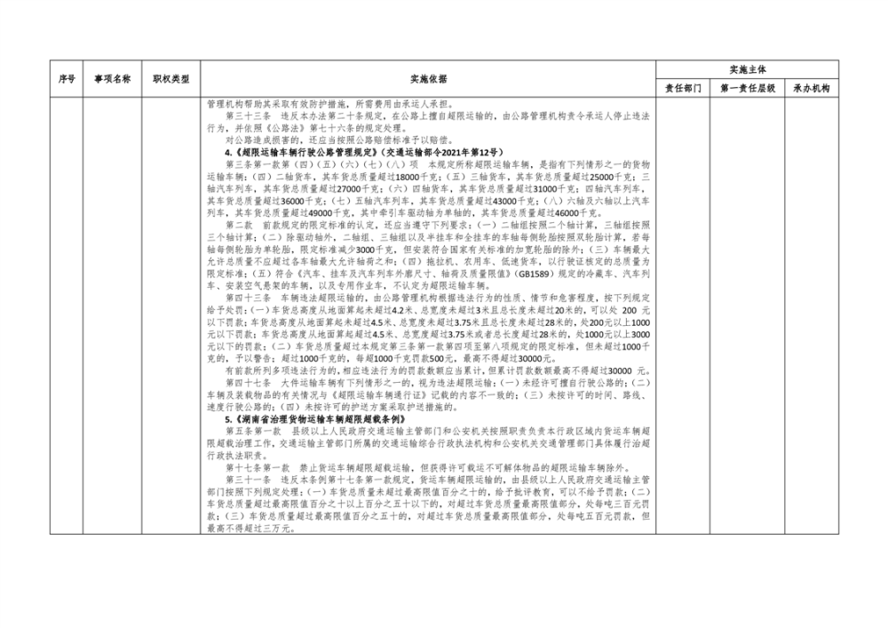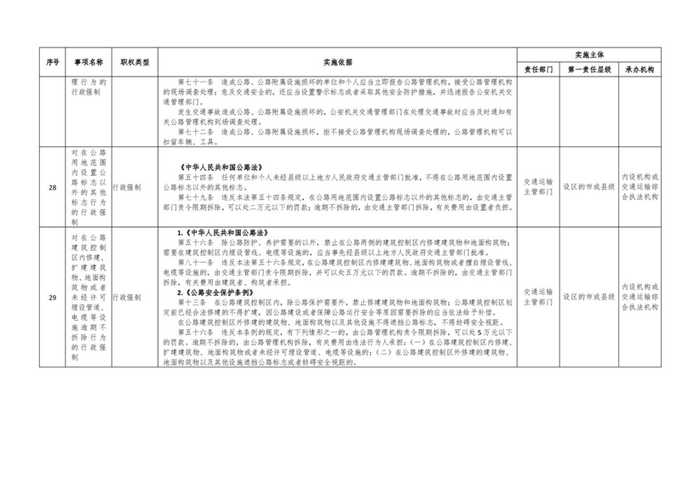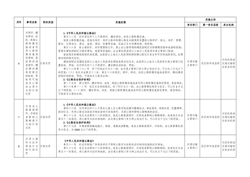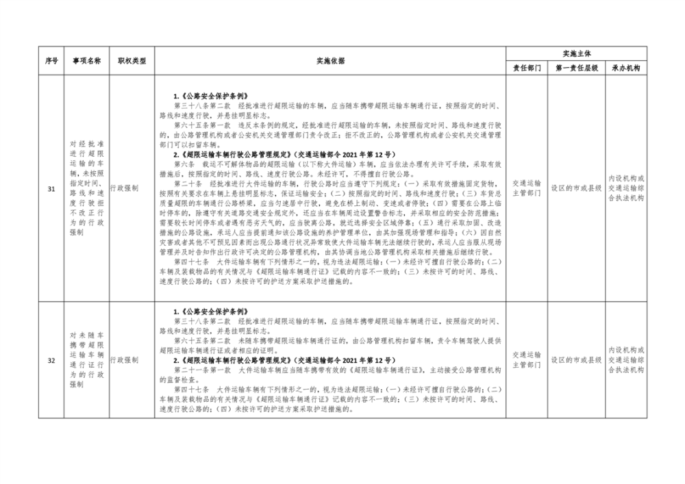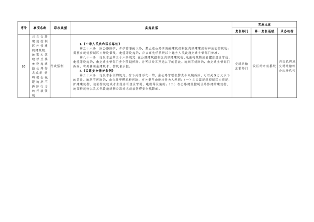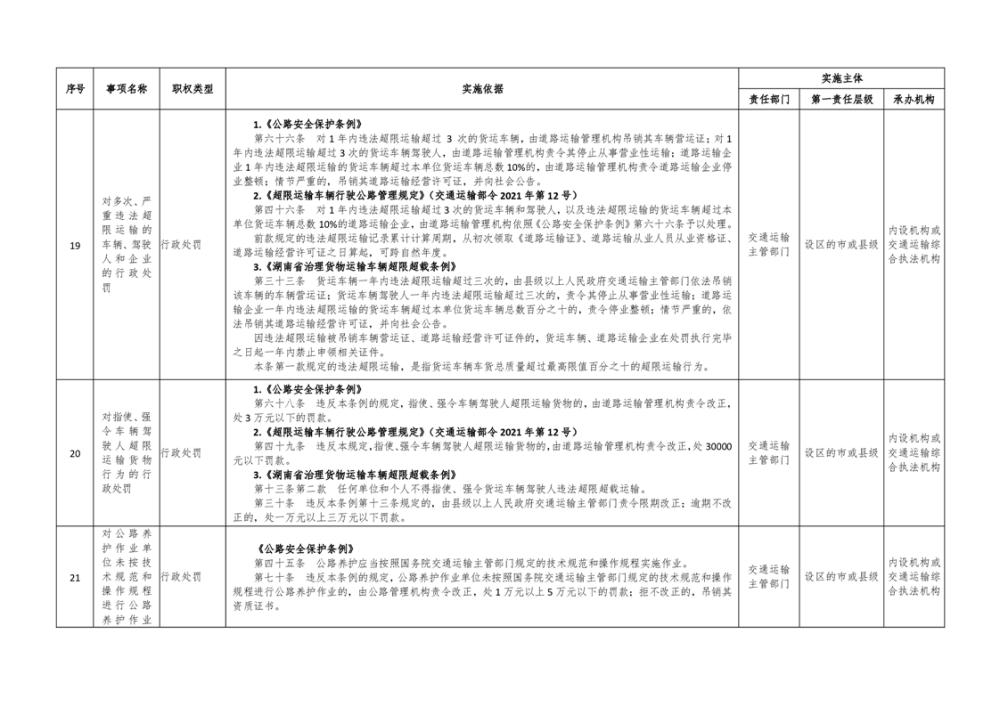 臨湘市交通運輸綜合行政執法事項指導目錄 公路管理35項