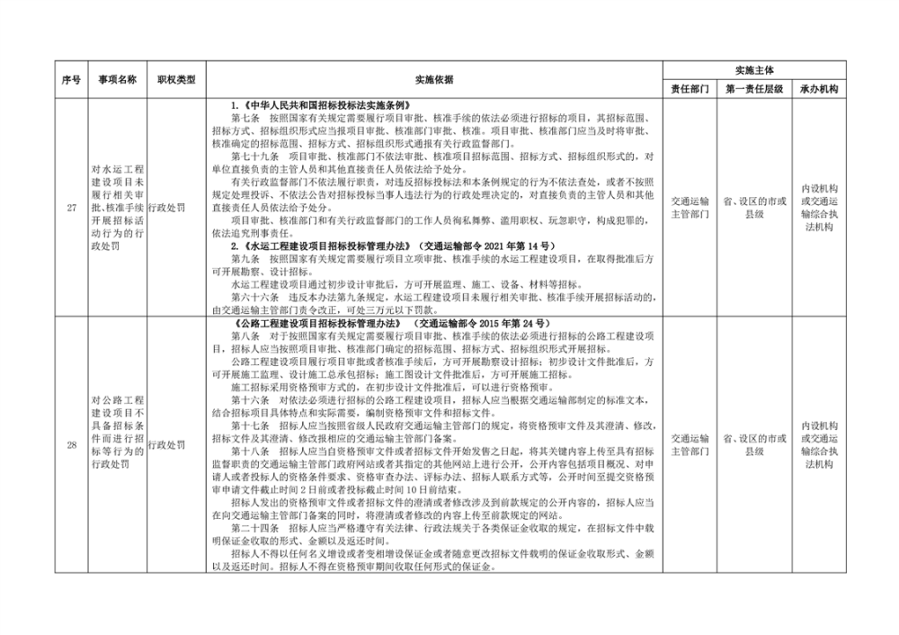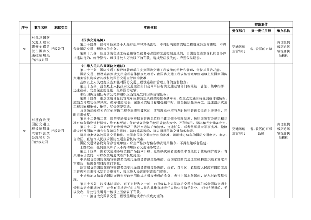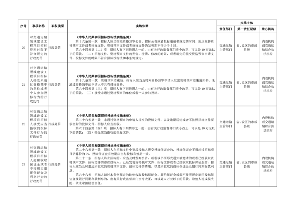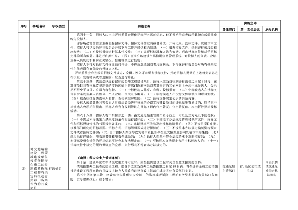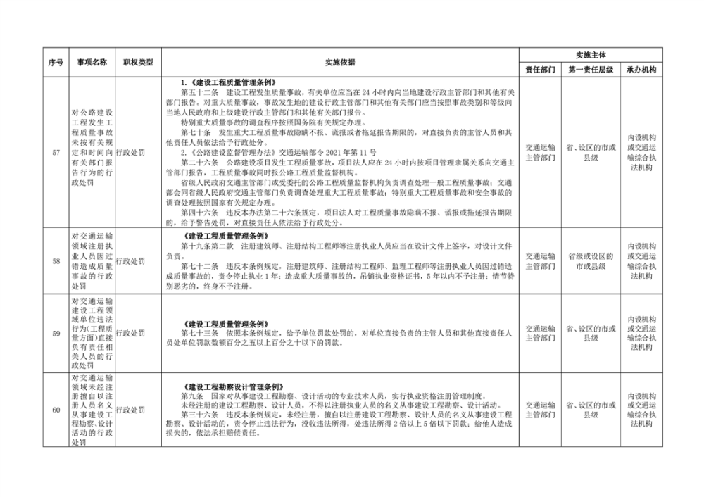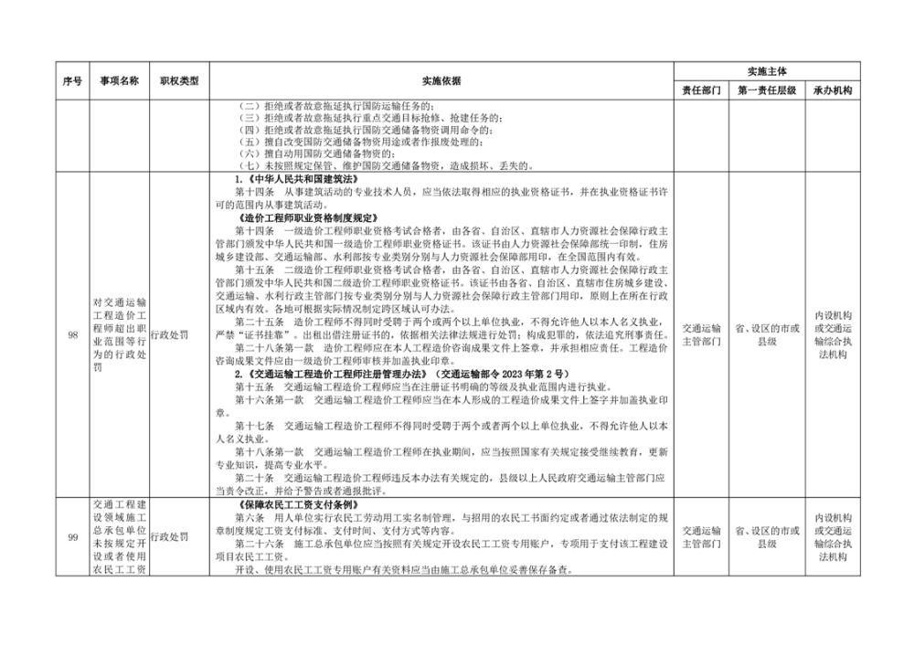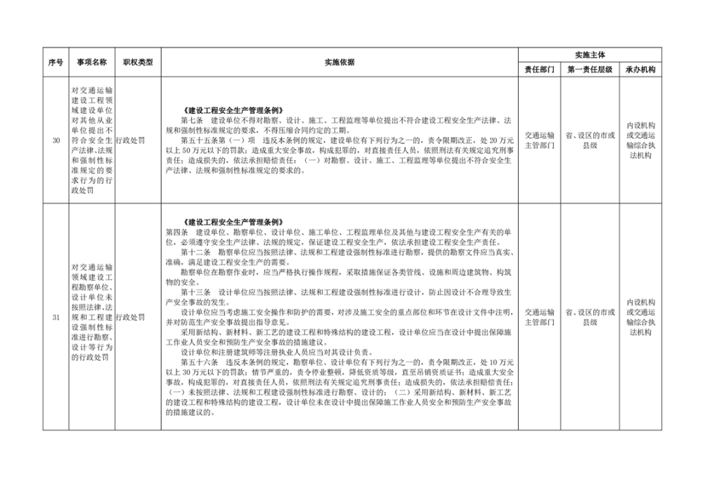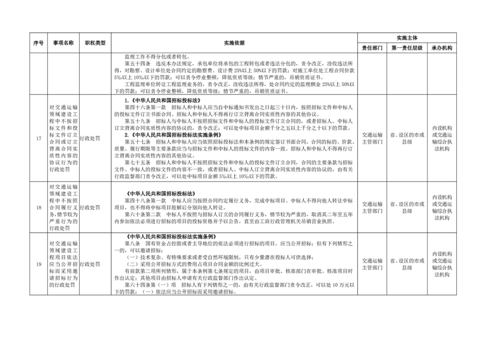 臨湘市交通運輸綜合行政執法事項指導目錄 交通建設工程質量安全監督102項