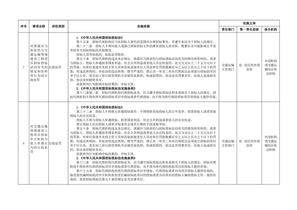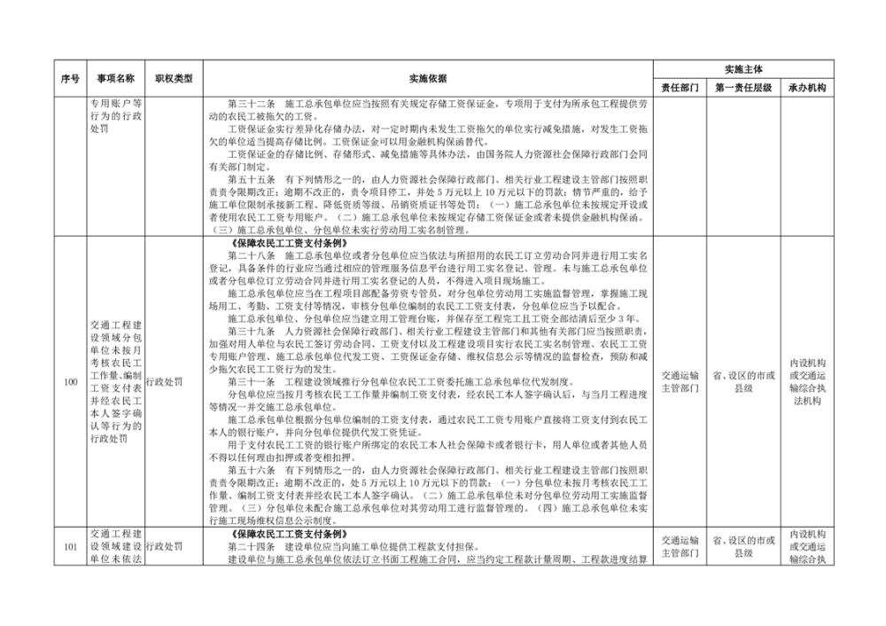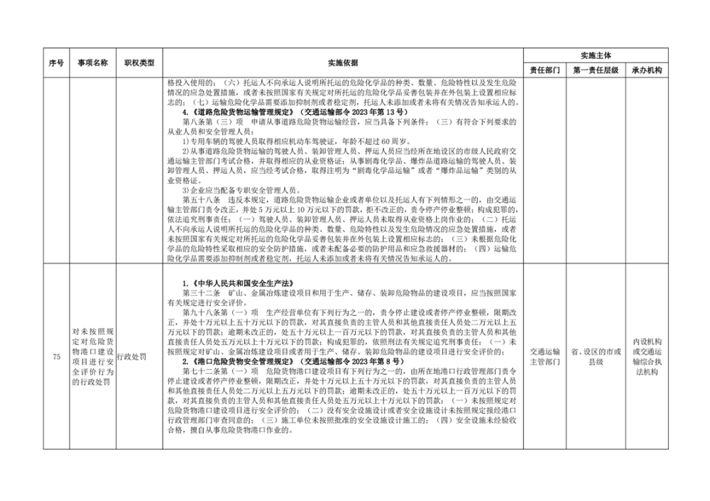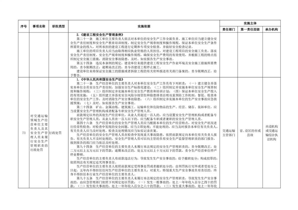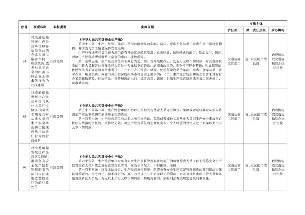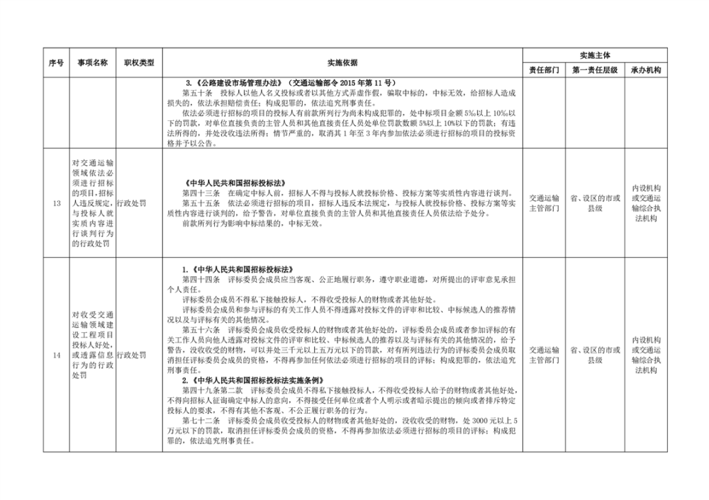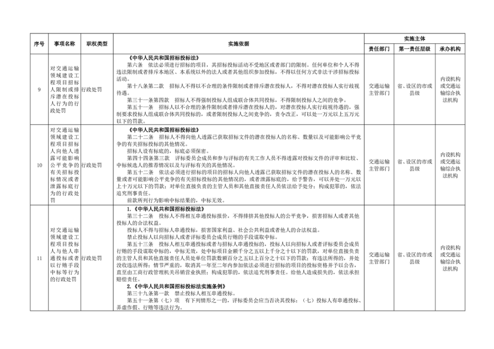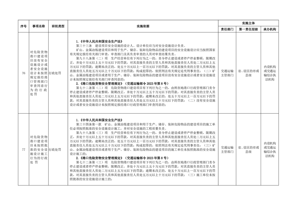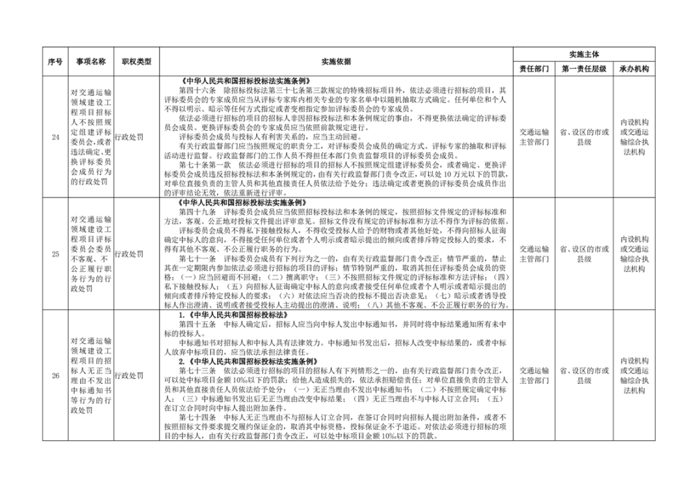 臨湘市交通運輸綜合行政執法事項指導目錄 交通建設工程質量安全監督102項