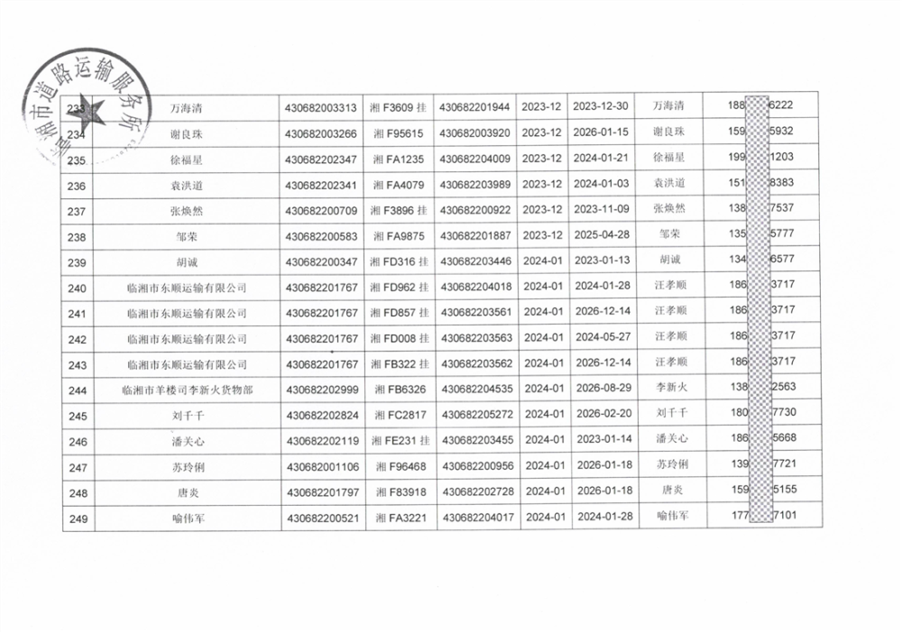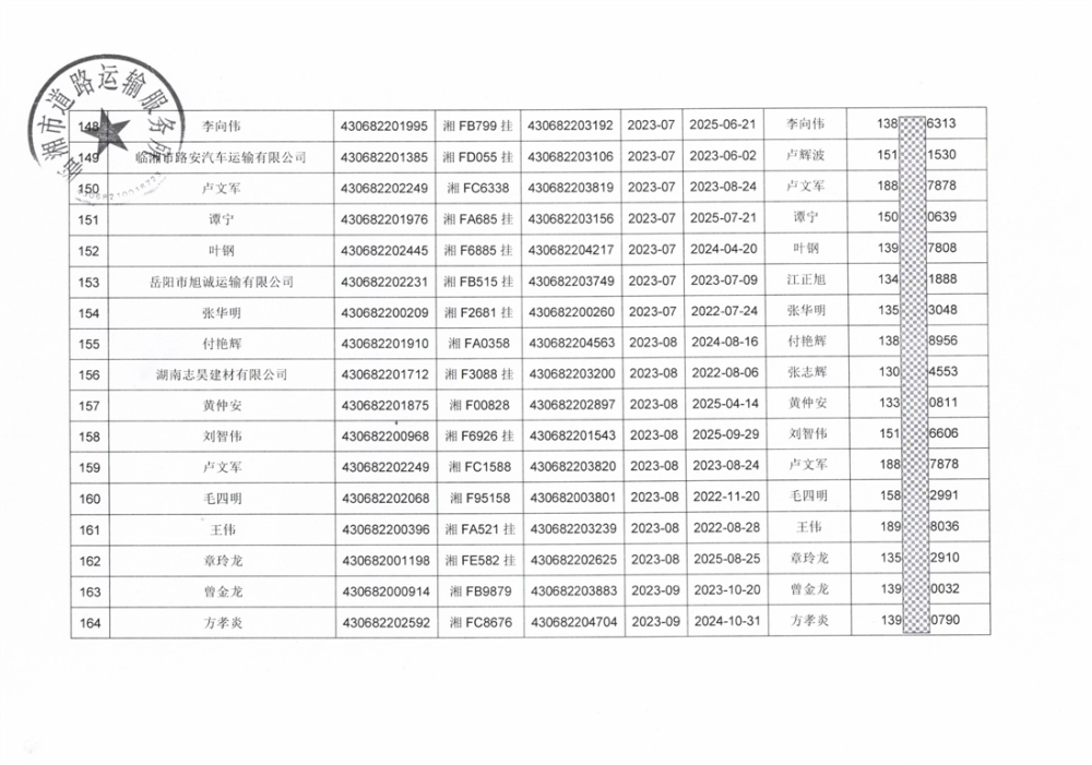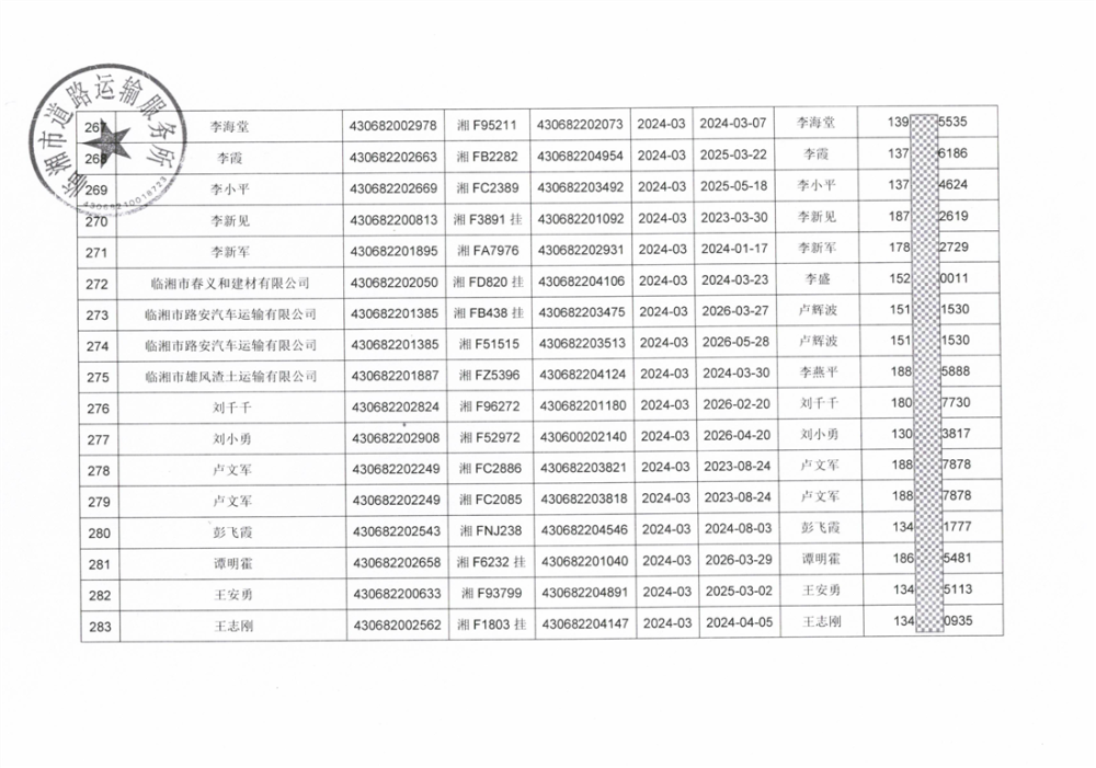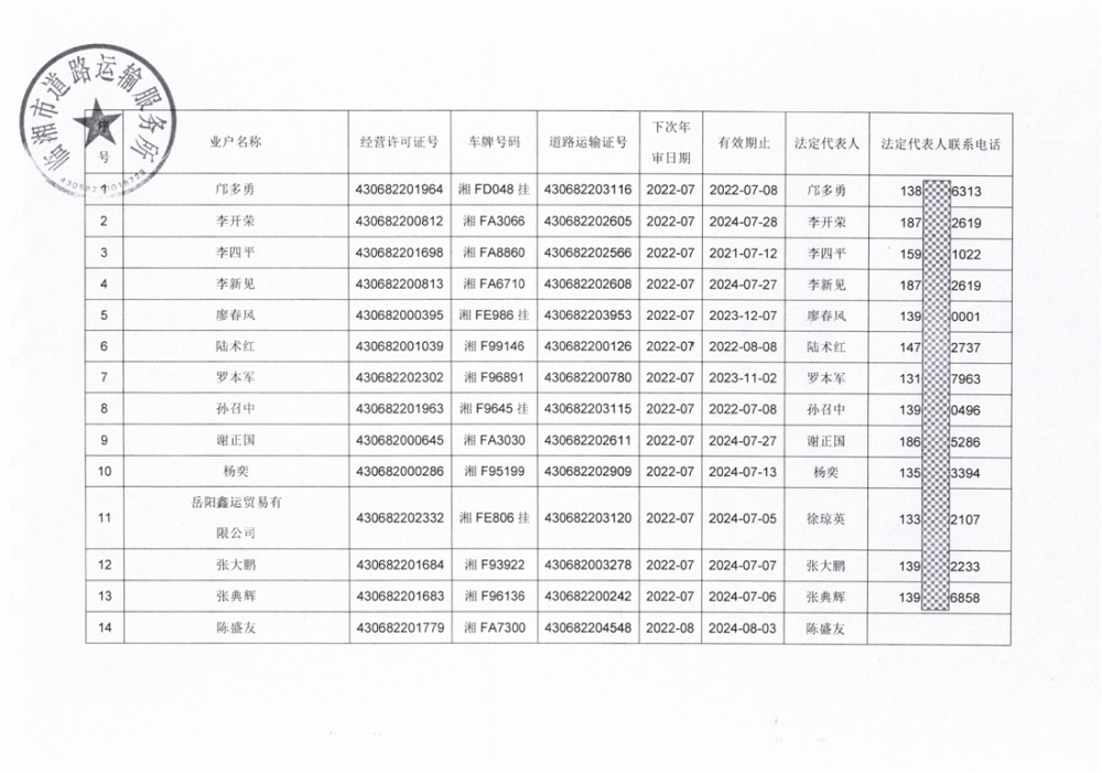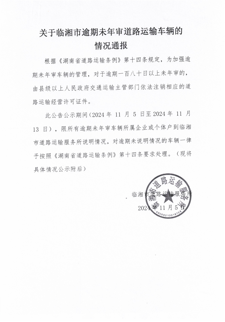 關于臨湘市逾期未年審道路運輸車輛的情況通報(2)