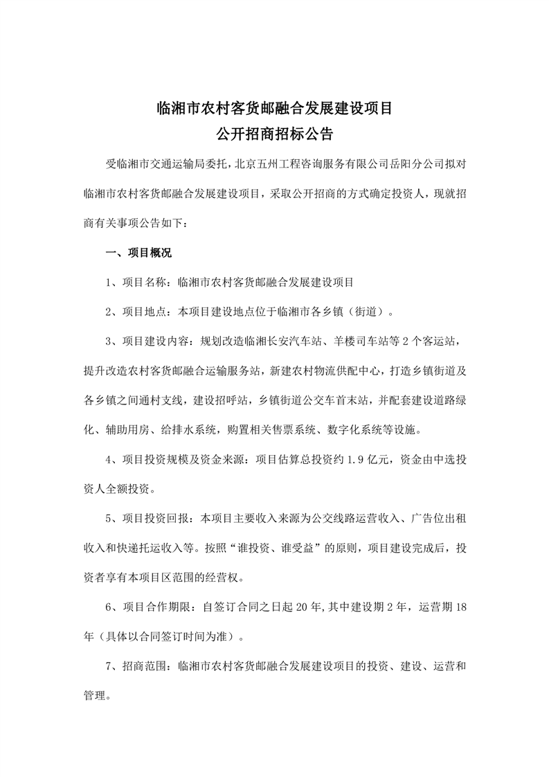 臨湘市農(nóng)村客貨郵融合發(fā)展建設(shè)項目公開招商招標(biāo)公告