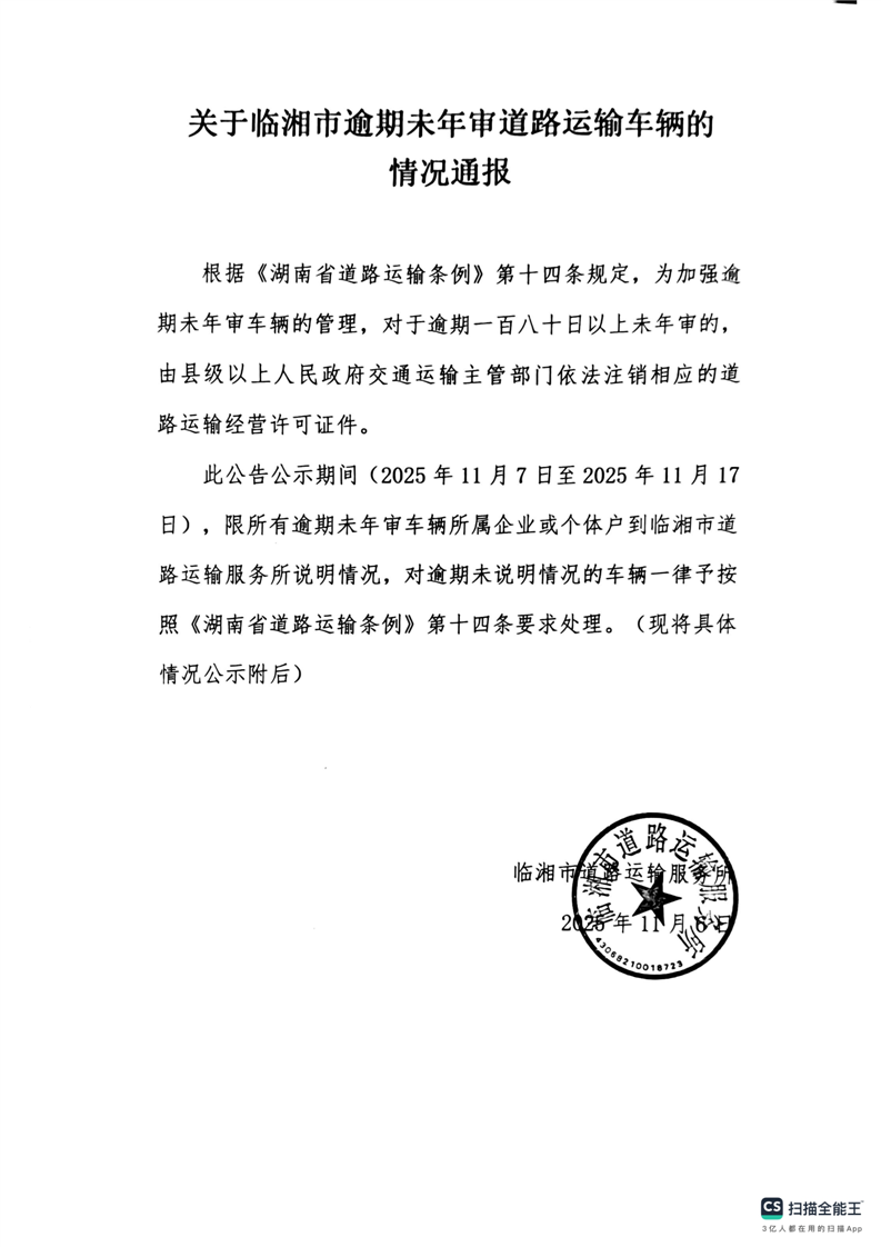 關于臨湘市逾期未年審道路運輸車輛的情況通報(15)