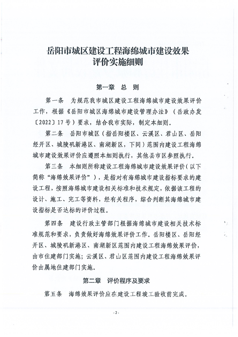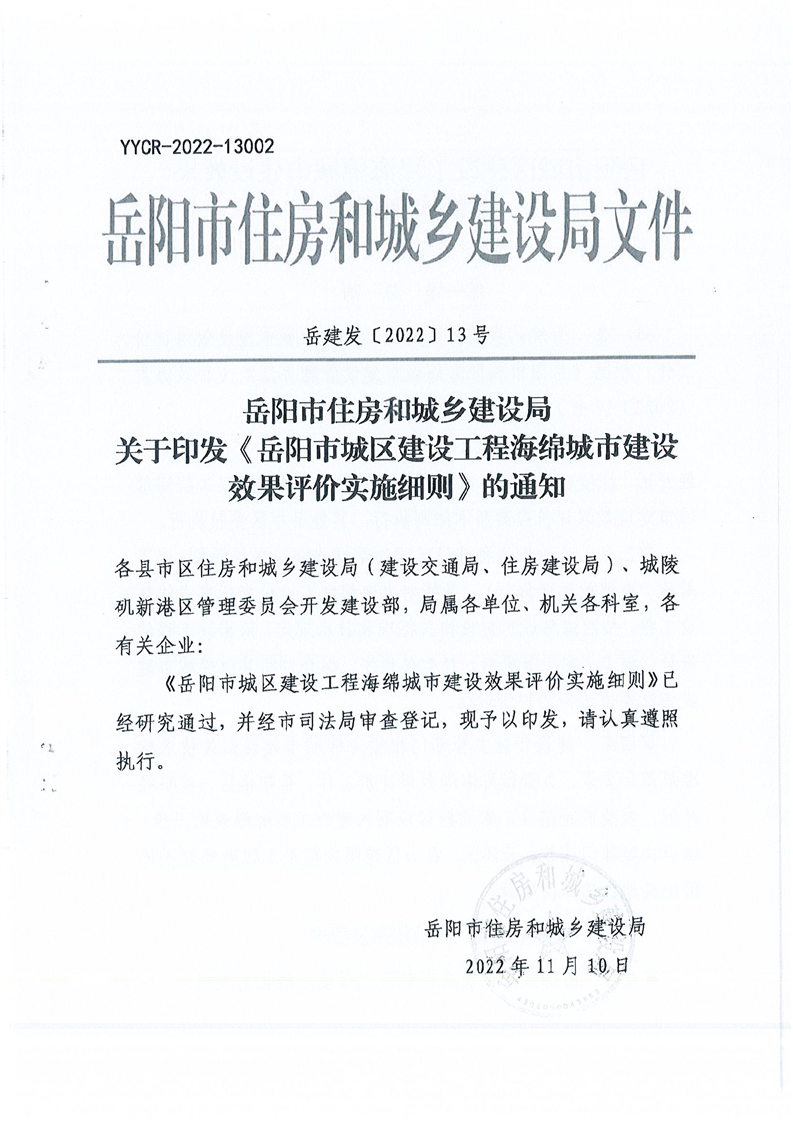 岳陽市住房和城鄉建設局關于印發《岳陽市城區建設工程海綿城市建設效果評價實施細則》的通知