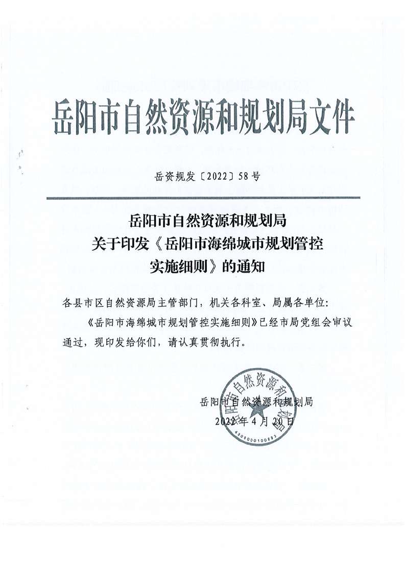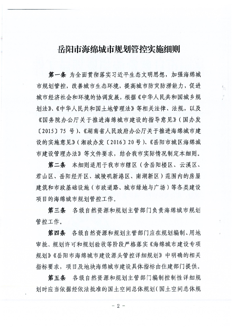 岳陽市自然資源和規(guī)劃局關(guān)于印發(fā)《岳陽市海綿城市規(guī)劃管控實施細則》的通知
