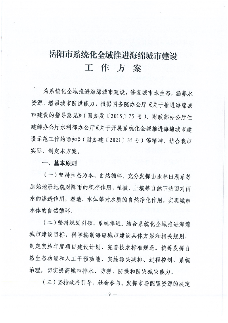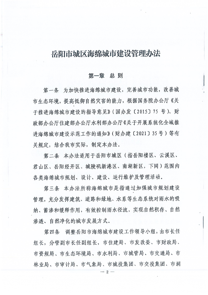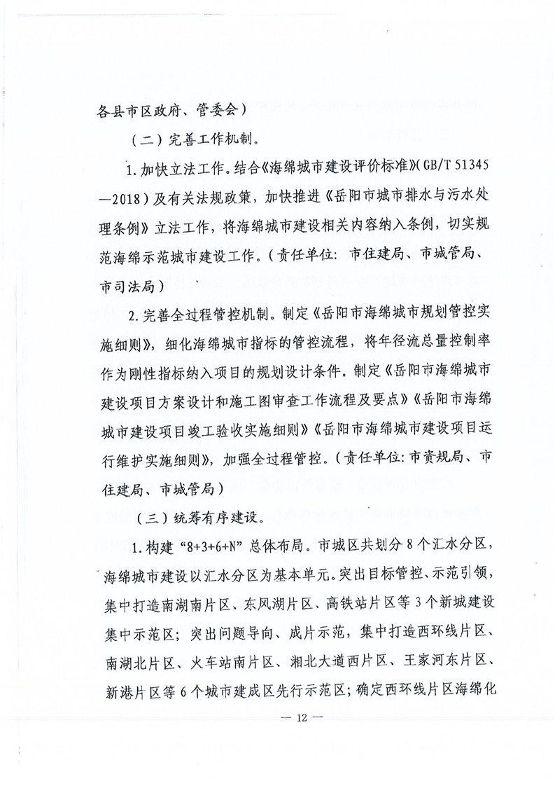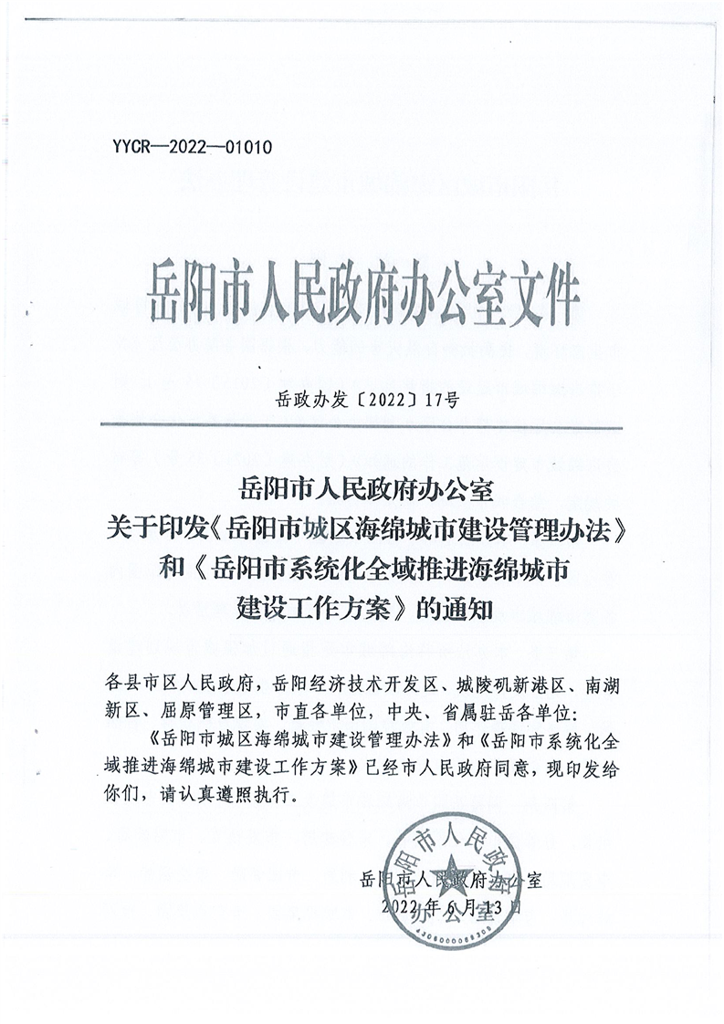 岳陽市人民政府辦公室關(guān)于印發(fā)《岳陽市城區(qū)海綿城市建設(shè)管理辦法》和《岳陽市系統(tǒng)化全域推進海綿城市建設(shè)工作方案》的通知