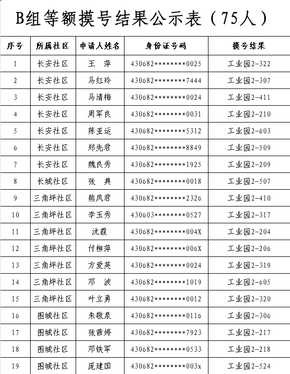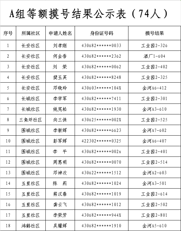 根據(jù)上級相關(guān)文件精神和市政府工作安排,我市已于2025年7月10日上午在住建局組織公共租賃住房實(shí)物配租等額摸號活動。本次實(shí)物配租等額摸號對象共計149戶,按A組(74人)、B組(75人)分別進(jìn)行摸號選房。現(xiàn)將本次實(shí)物配租等額摸號結(jié)果公示如下: