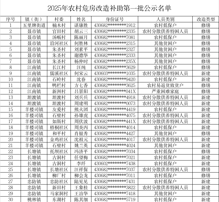 2025年農村危房改造補助第一批公示名單