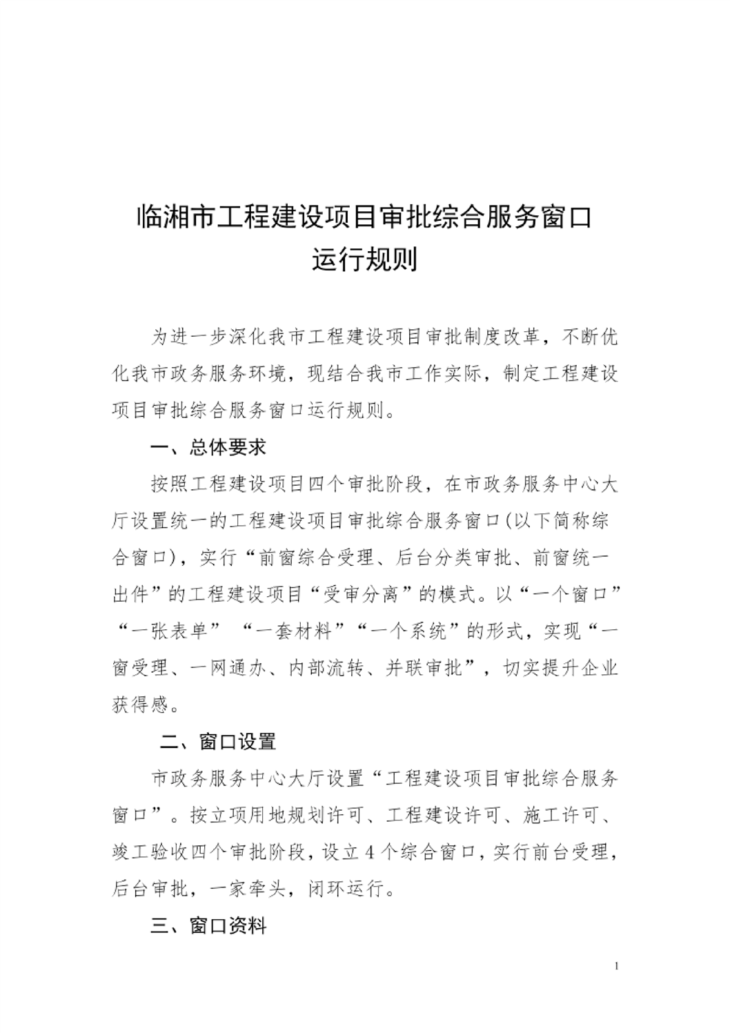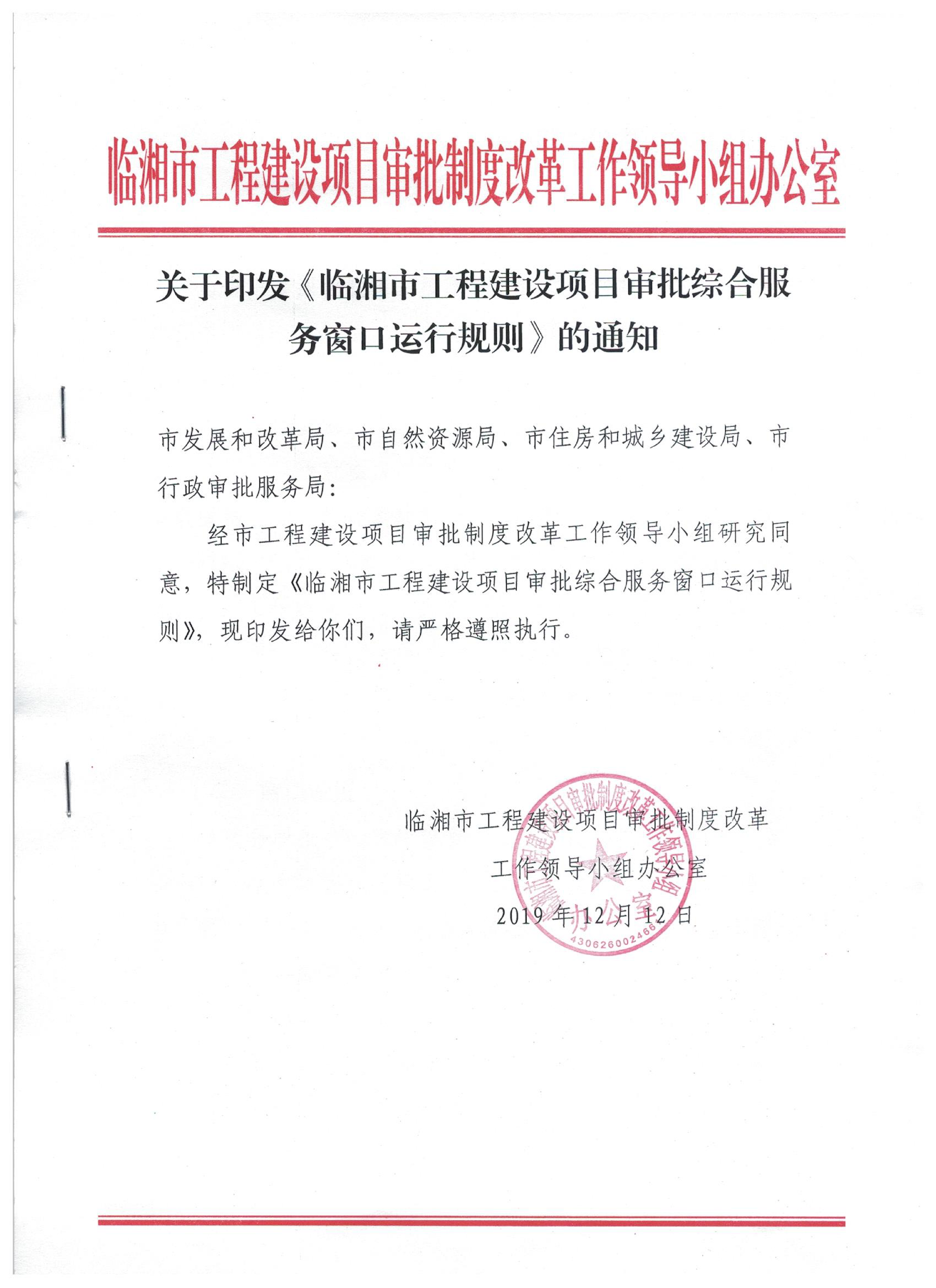 關于印發《臨湘市工程建設項目審批綜合服務窗口運行規則》的通知
