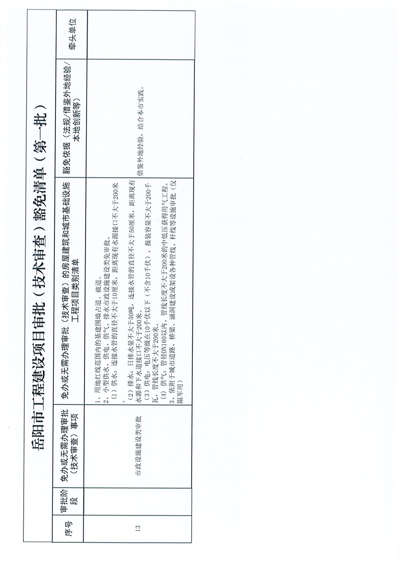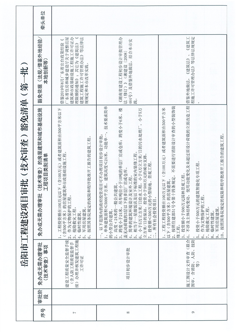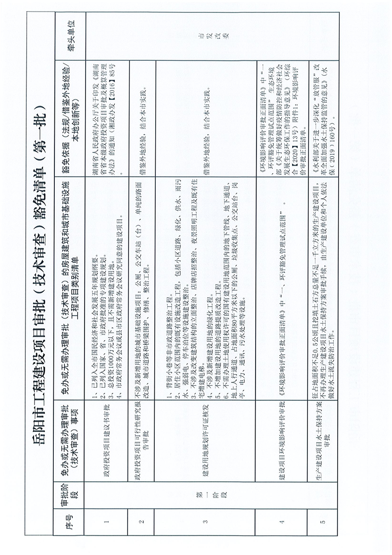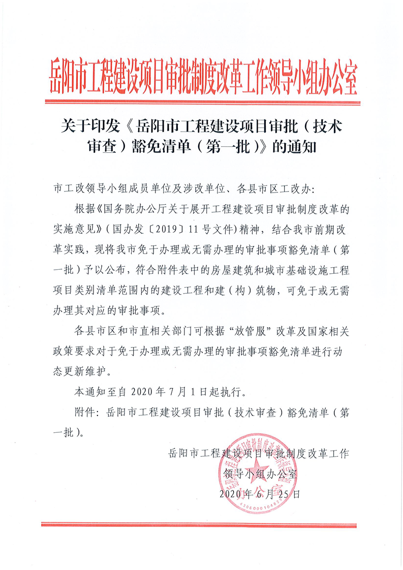 關于轉發《岳陽市工程建設項目審批(技術審查)豁免清單(第一批)》的通知