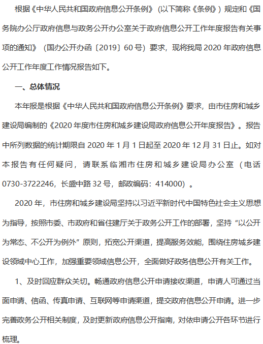 臨湘市住建局2020年政府信息公開工作年度報告