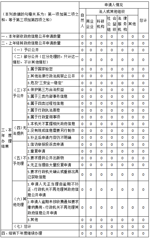 (二)依申請公開情況。本單位認真貫徹執行政府信息公開條例,不斷建立完善依申請公開辦理答復制度,依法保障人民群眾對政府信息的知情權。2022年本單位共收到依申請公開件0件,上年度結轉辦理件0件,共辦理完成0件,結轉到2023年辦理0件。