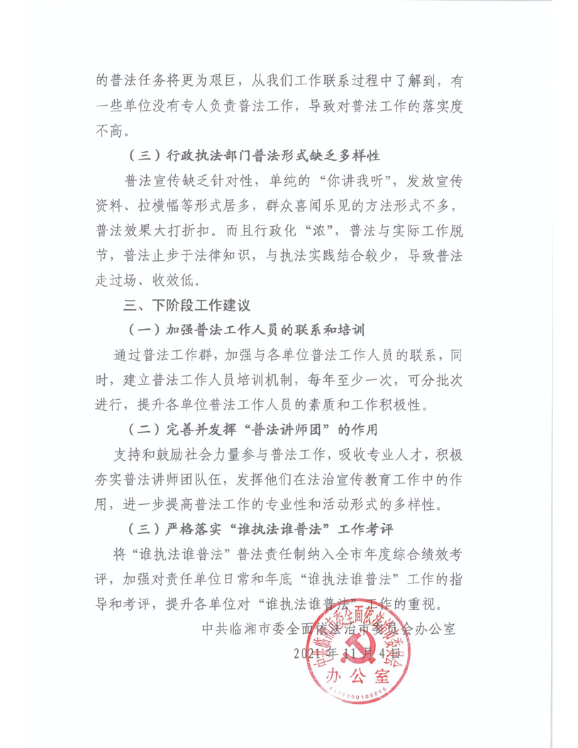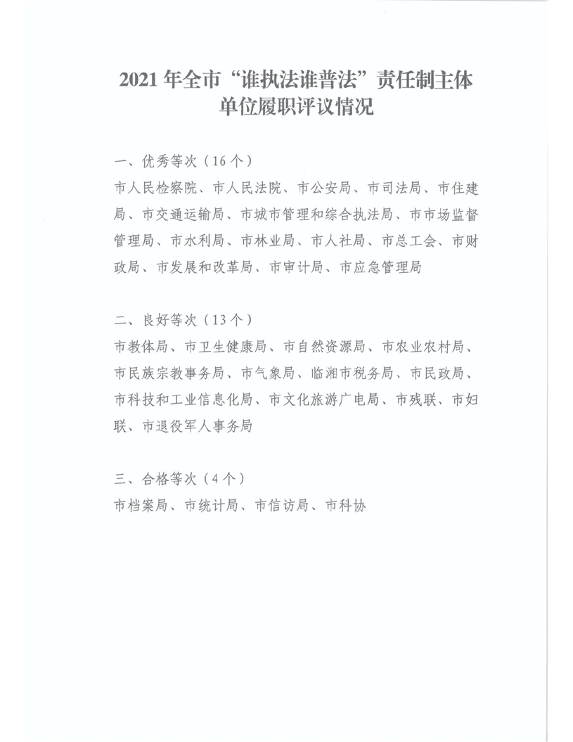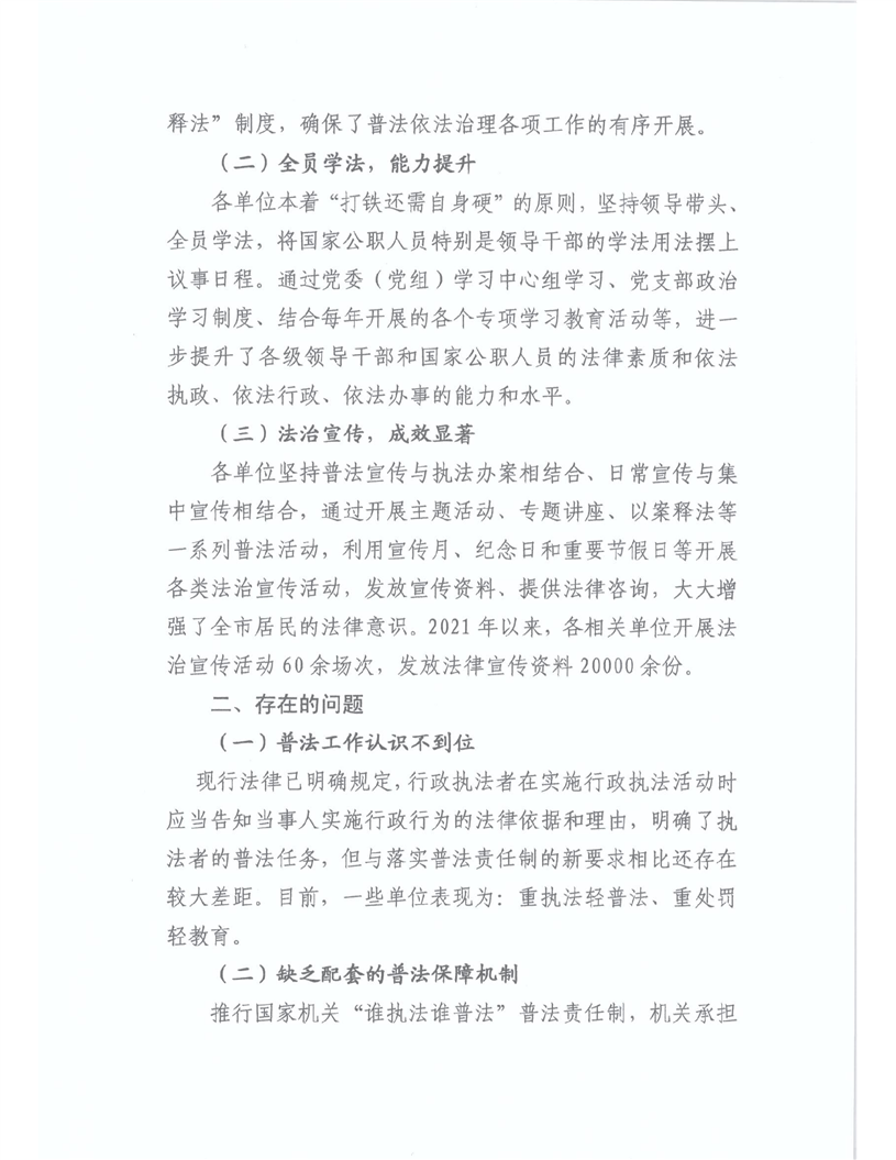 全市“誰執法誰普法”責任制落實情況的督查通報