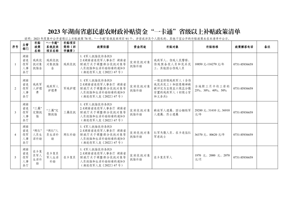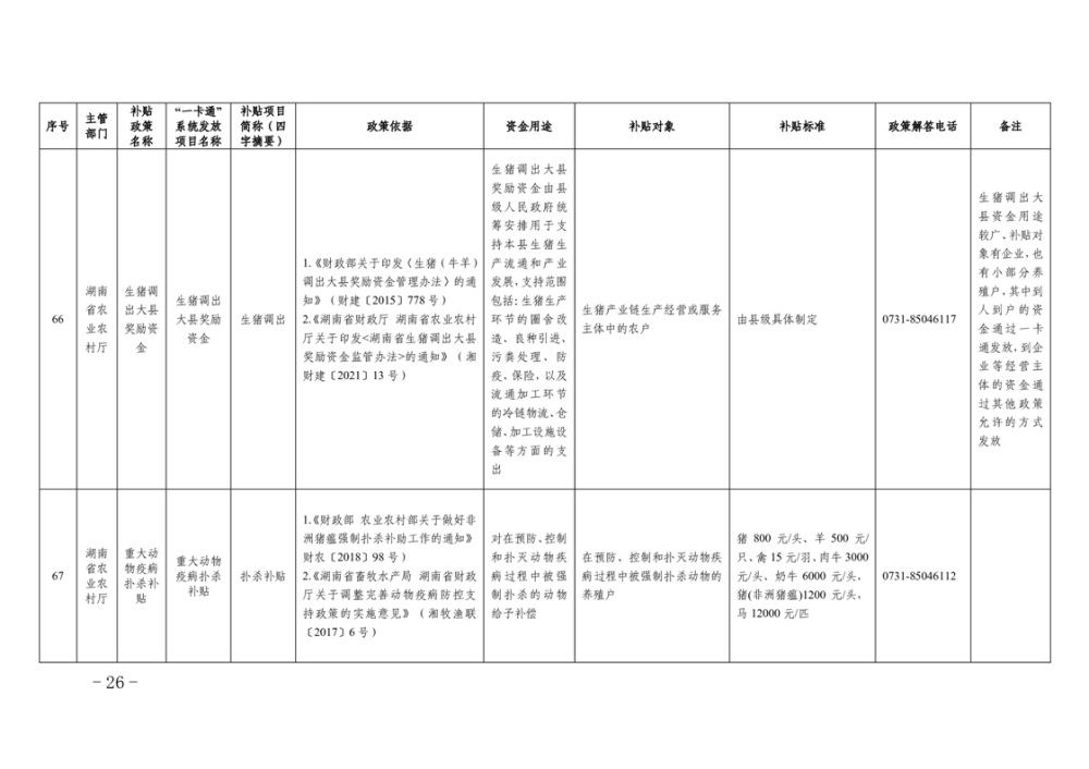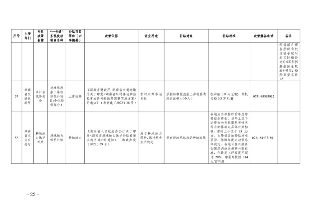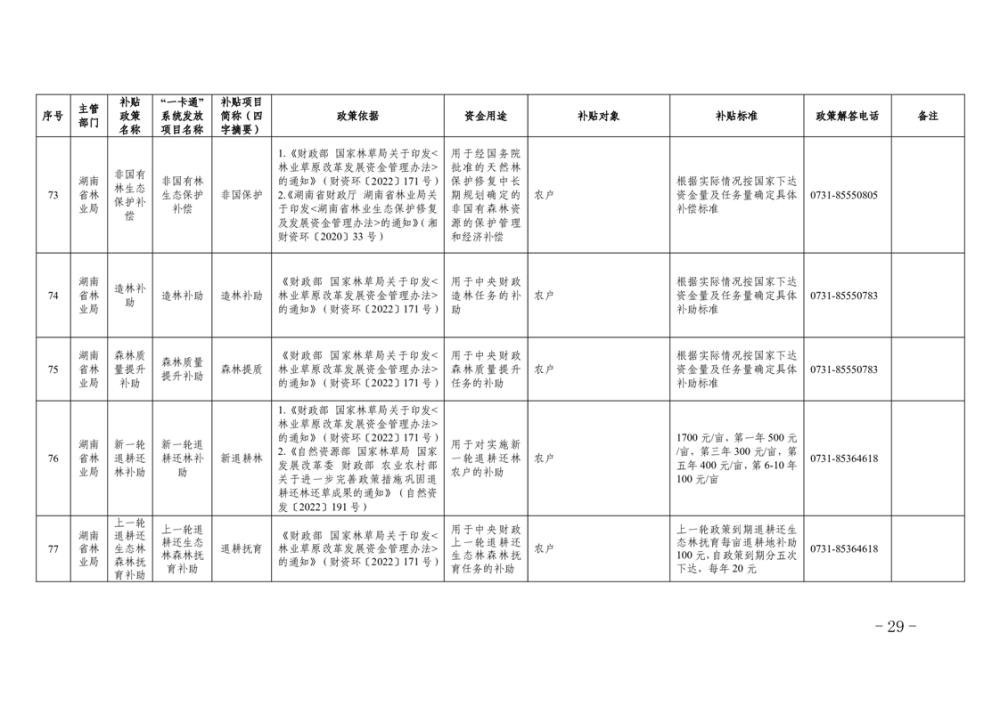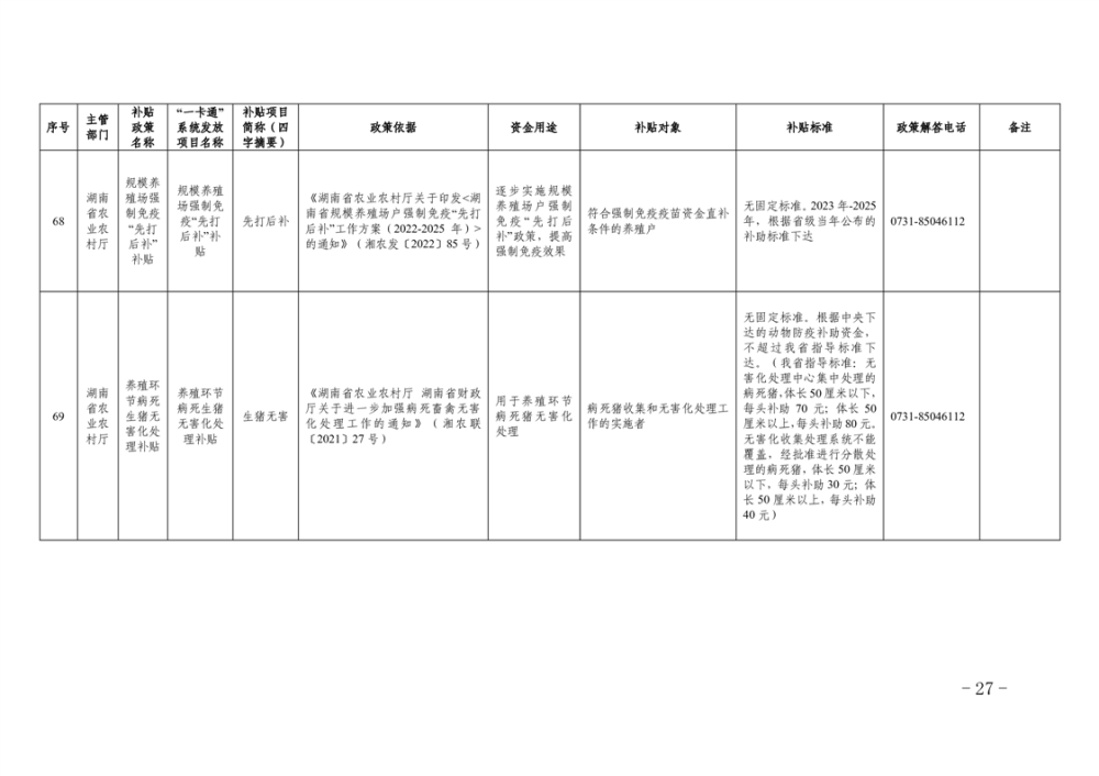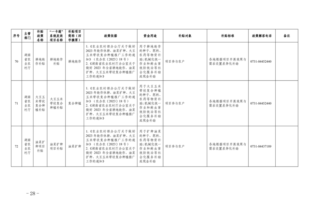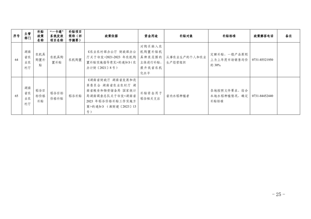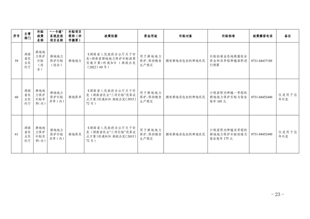 2023年湖南省惠民惠農財政補貼資金“一卡通”省級以上補貼政策清單