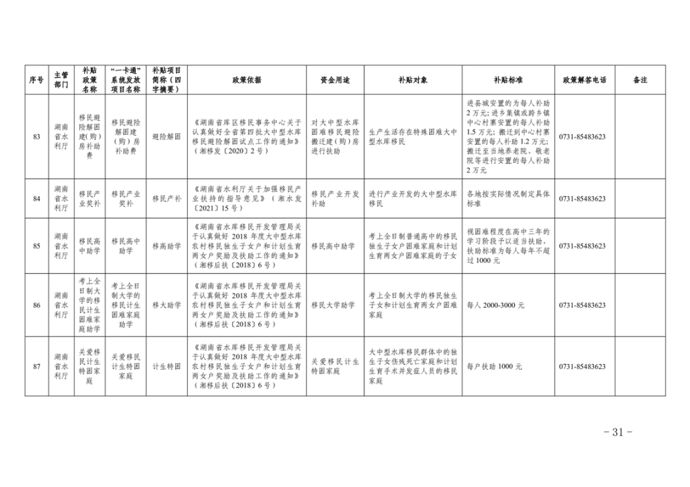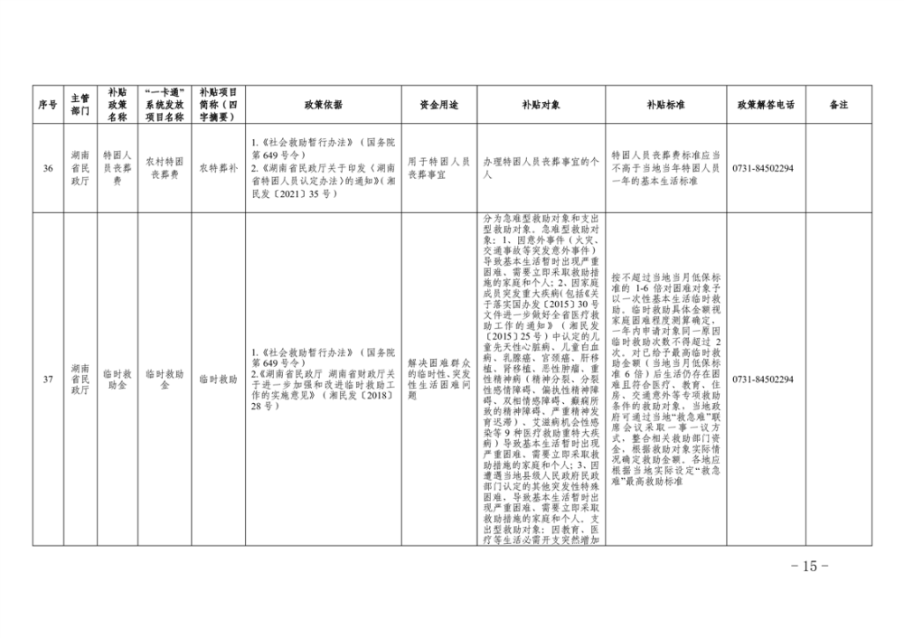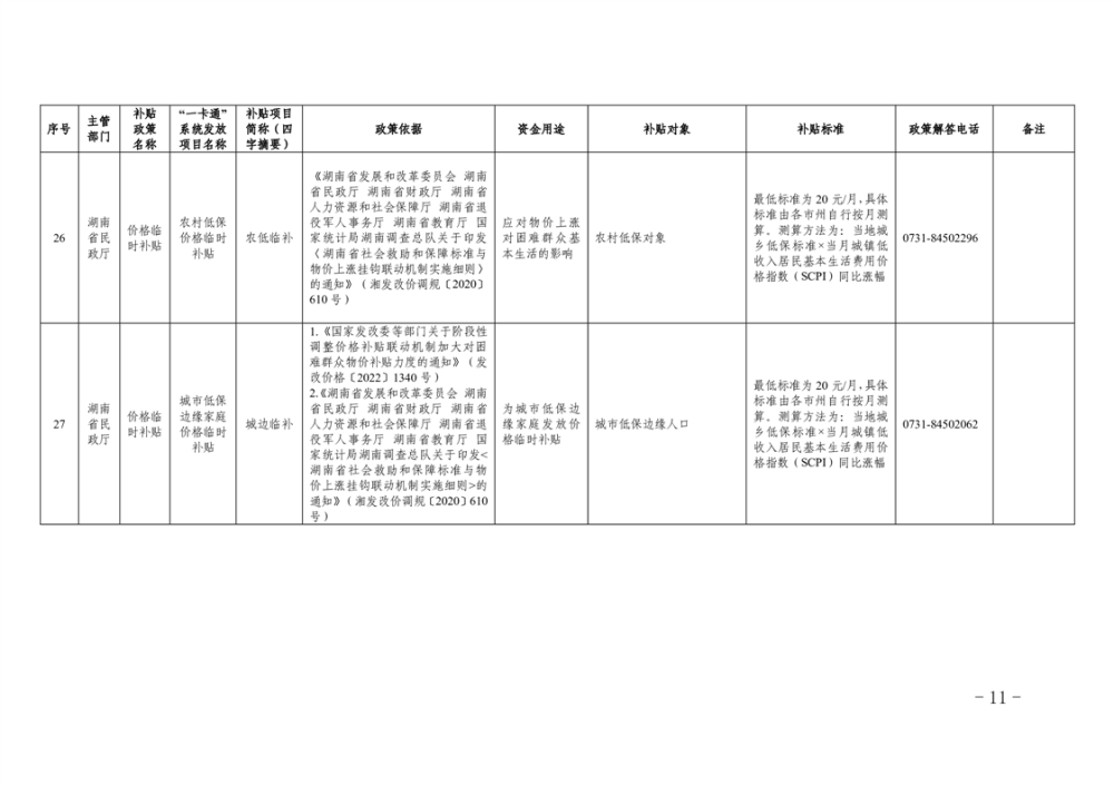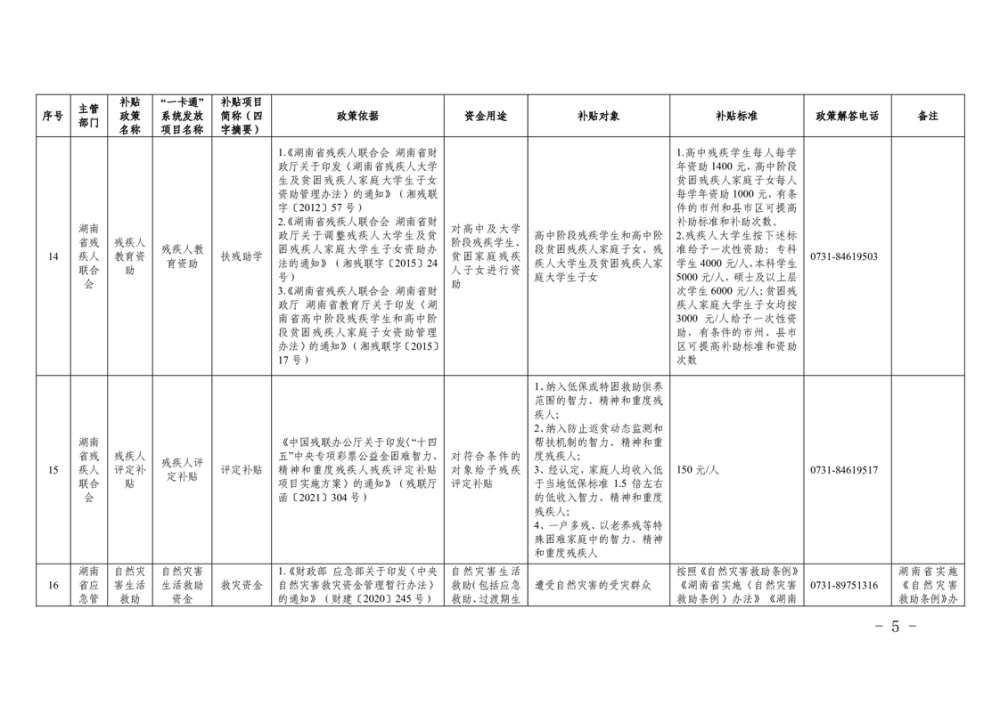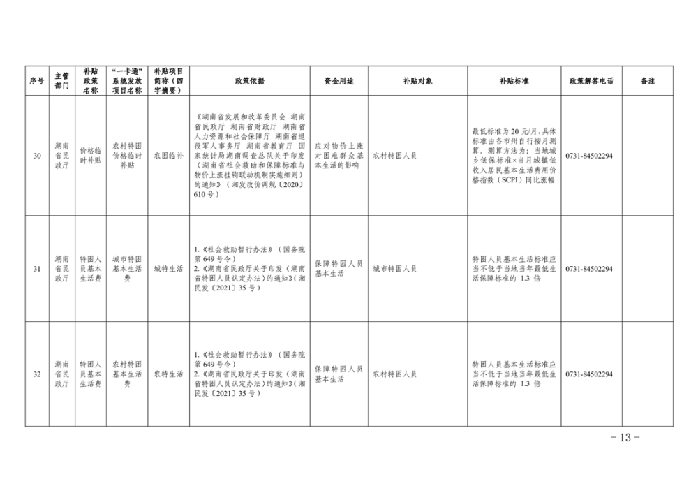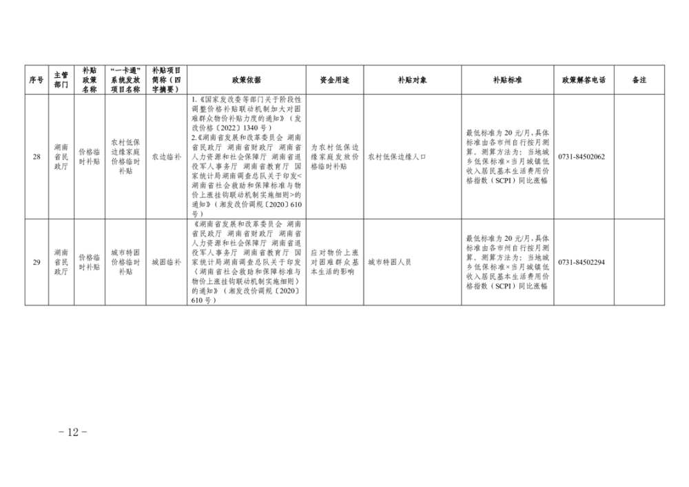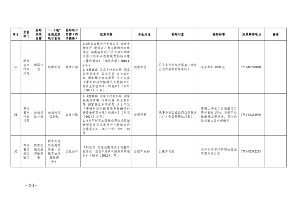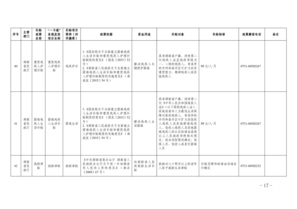 2023年湖南省惠民惠農財政補貼資金“一卡通”省級以上補貼政策清單