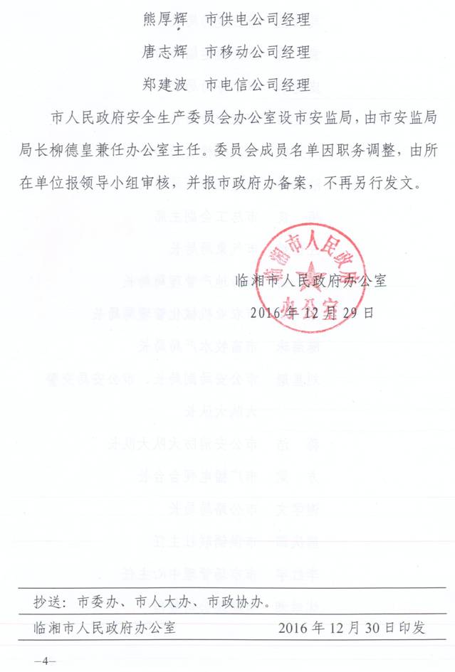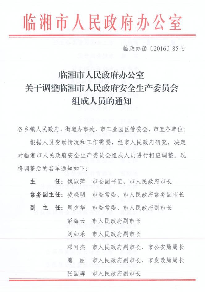 關(guān)于調(diào)整臨湘市人民政府安全生產(chǎn)委員會(huì)組成人員的通知