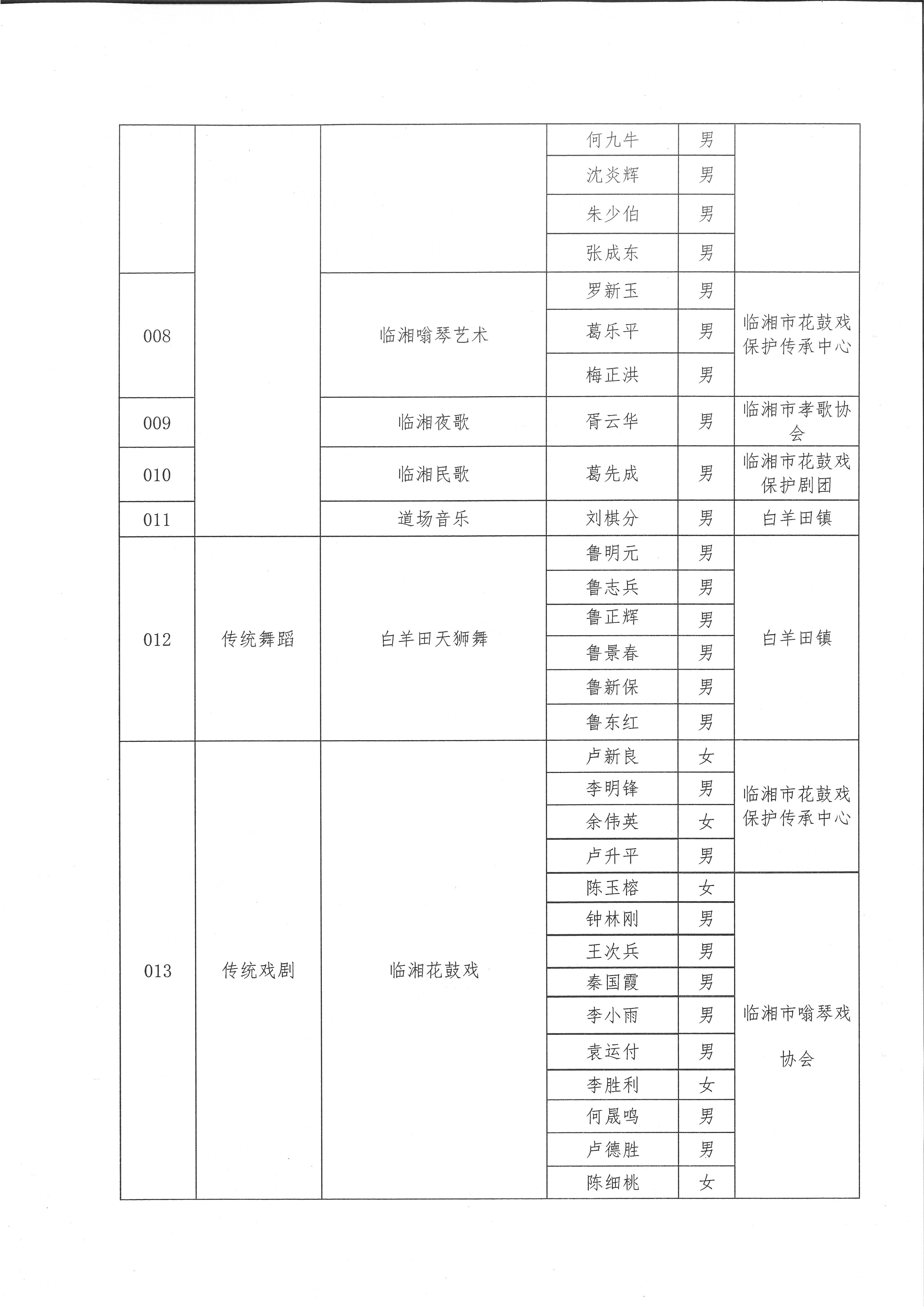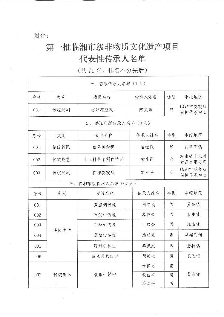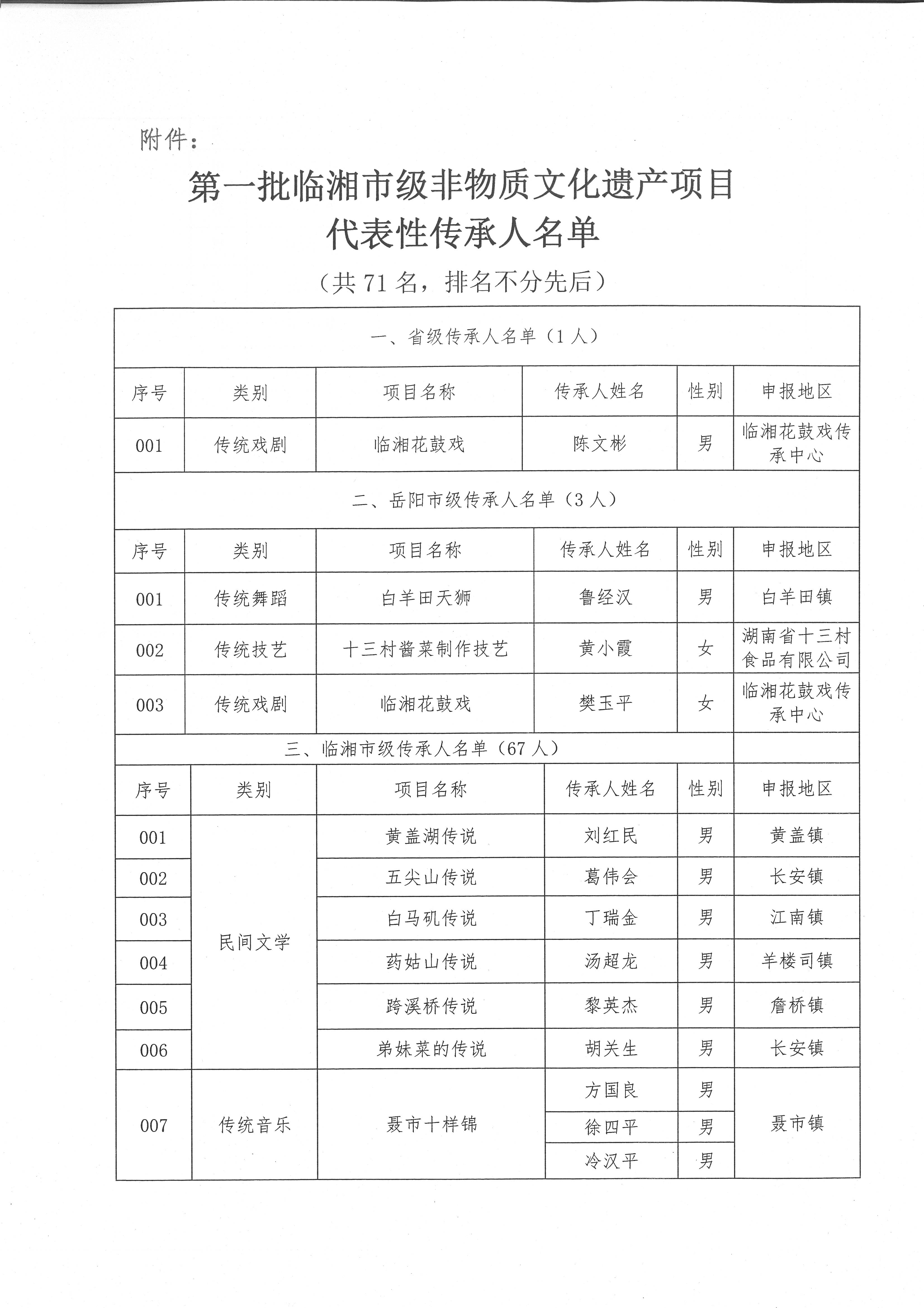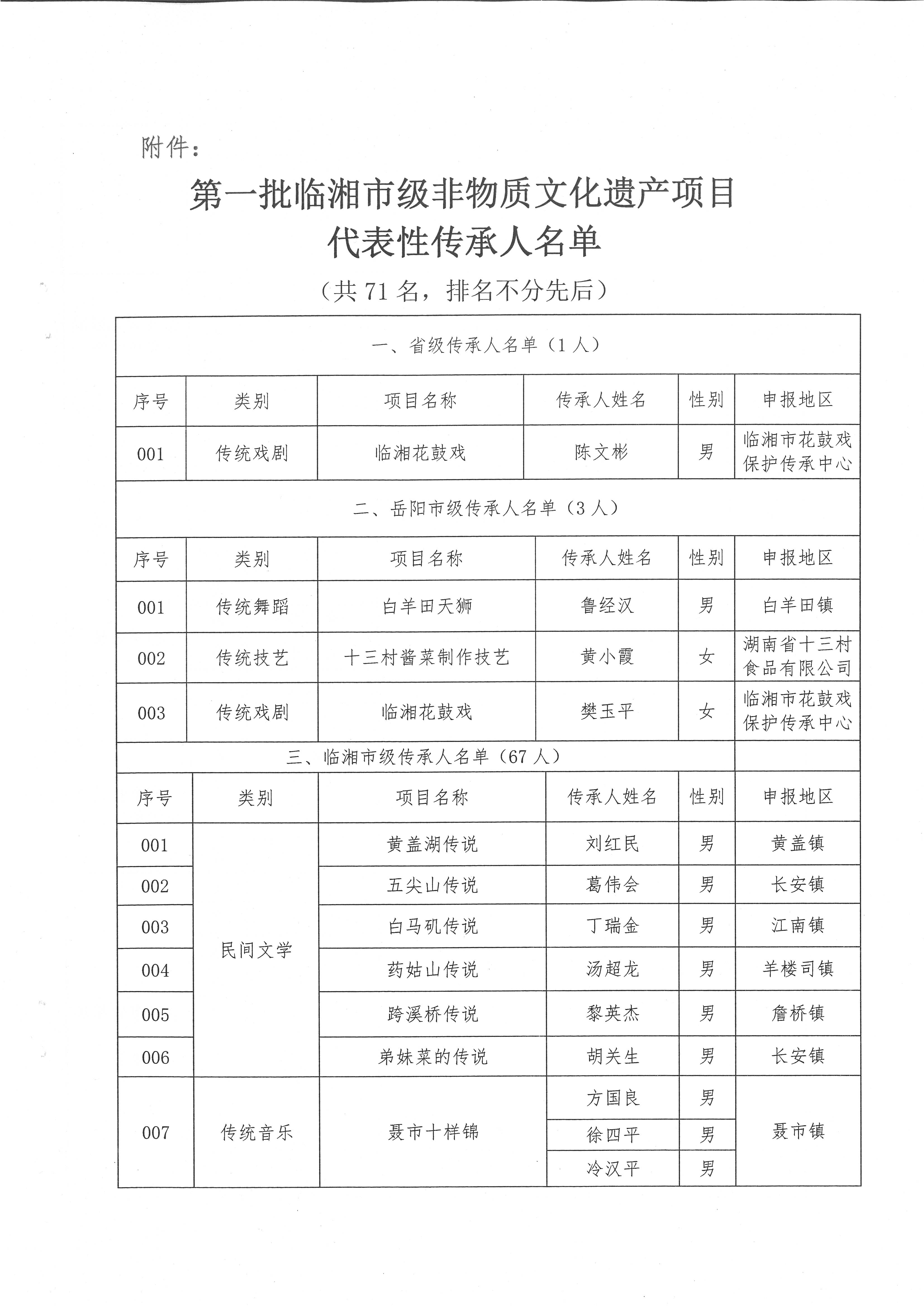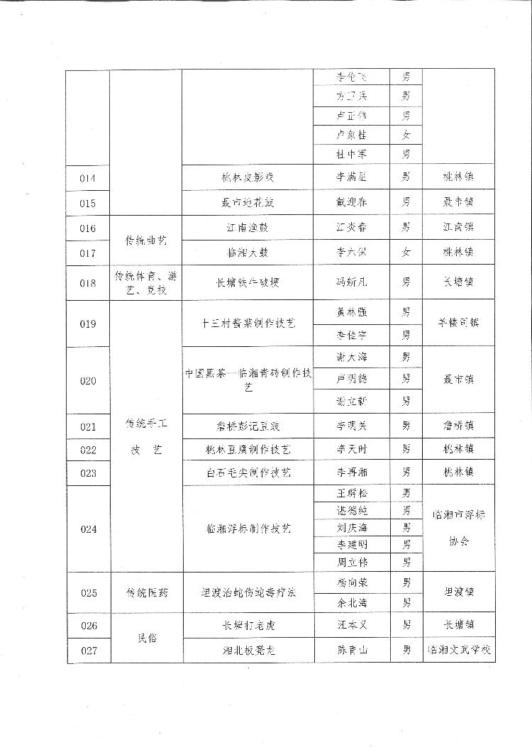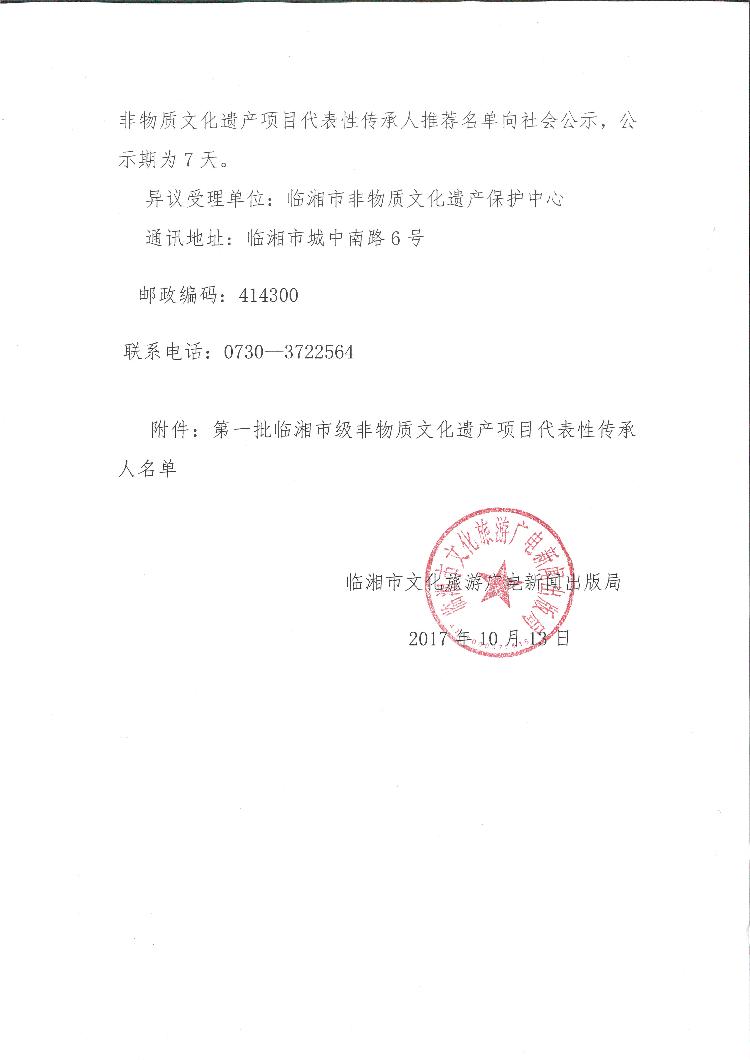 關于公示第一批臨湘市級非物質文化遺產項目代表性傳承人推薦名單的公告
